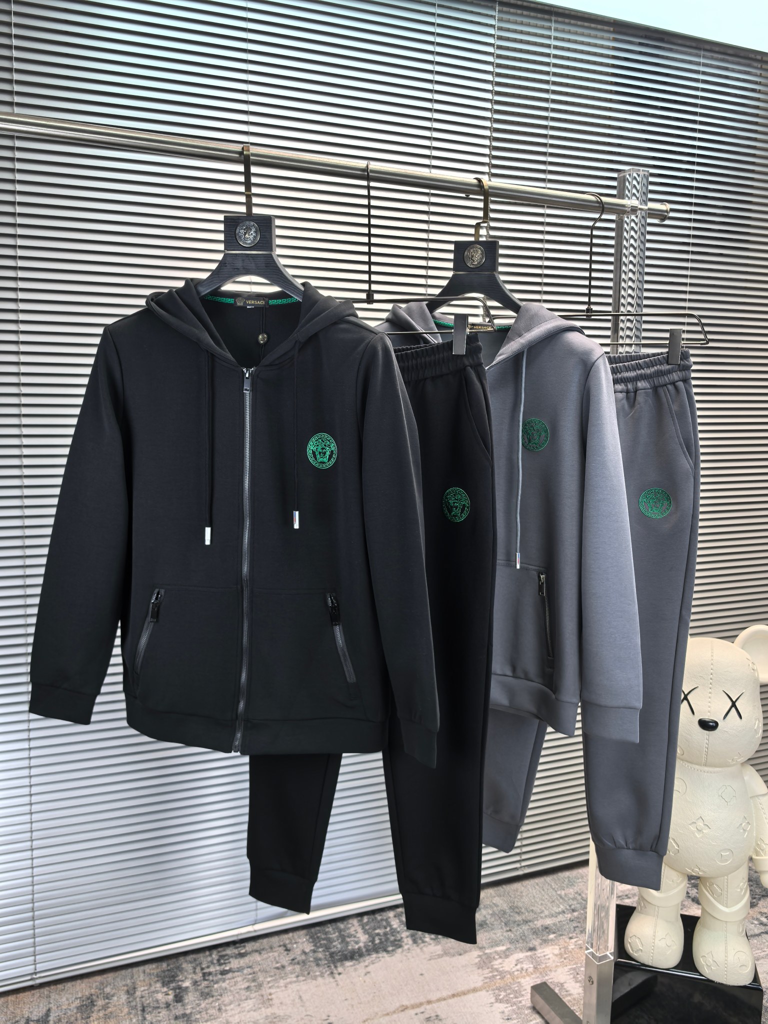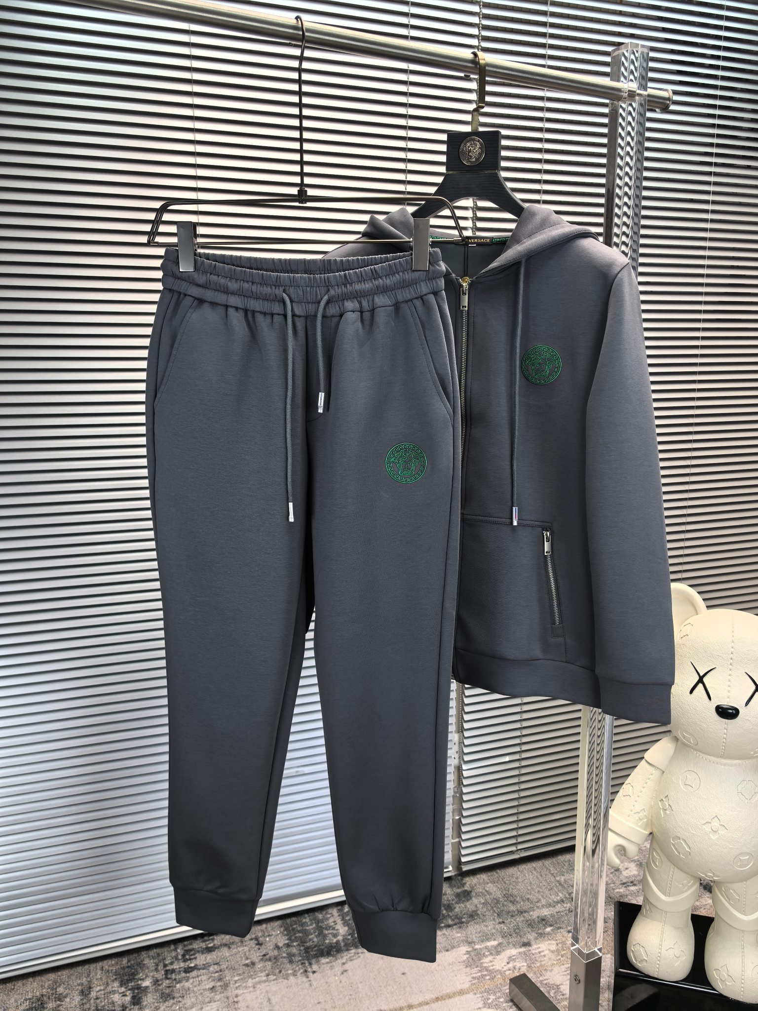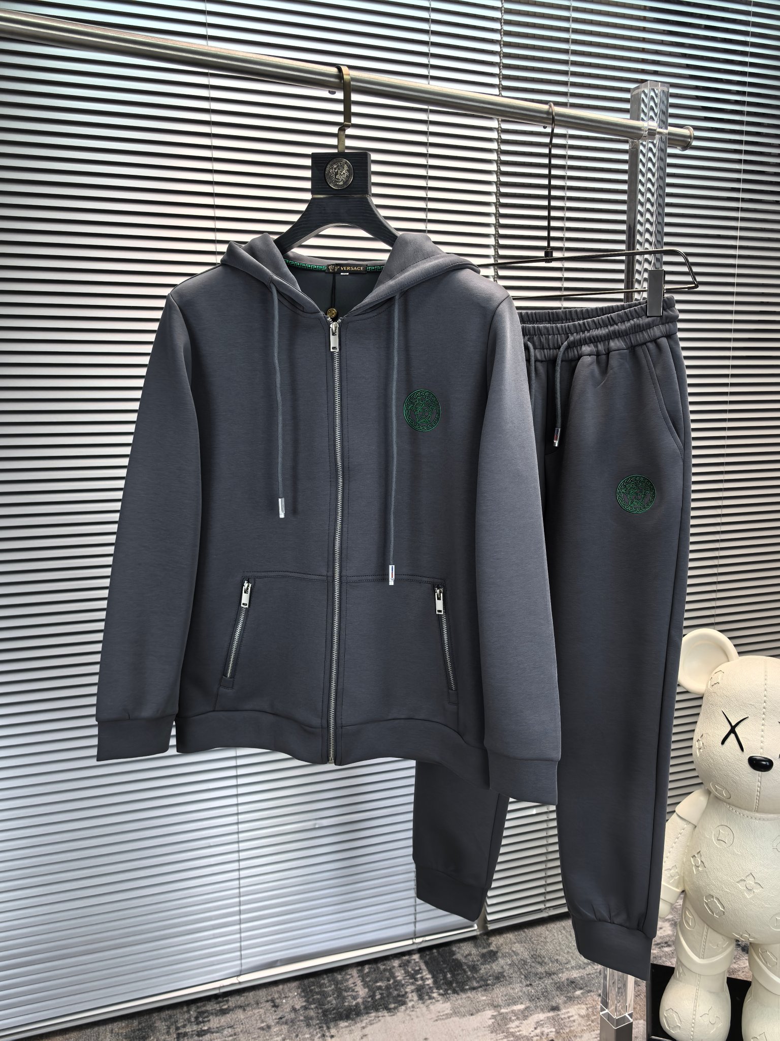 Home • Apparel • Suit • Versace 2025 autumn-winter casual set with embroidered chest. Imported custom fabric, comfortable and breathable. Easy-to-wear design, excellent fit. Available in sizes M to 4XL.