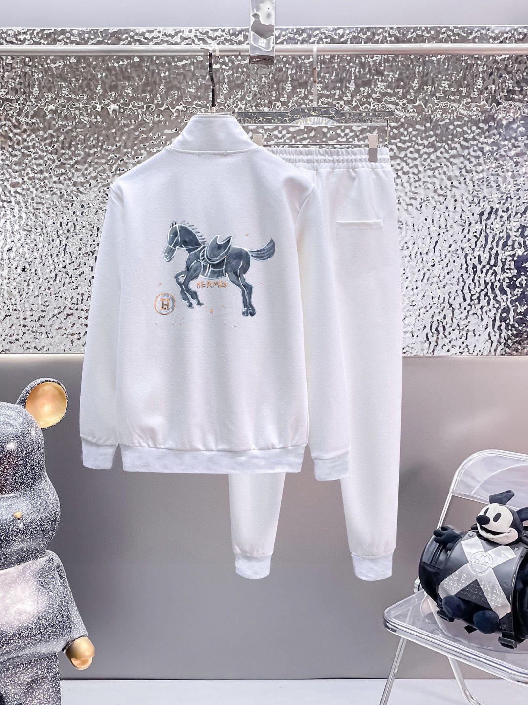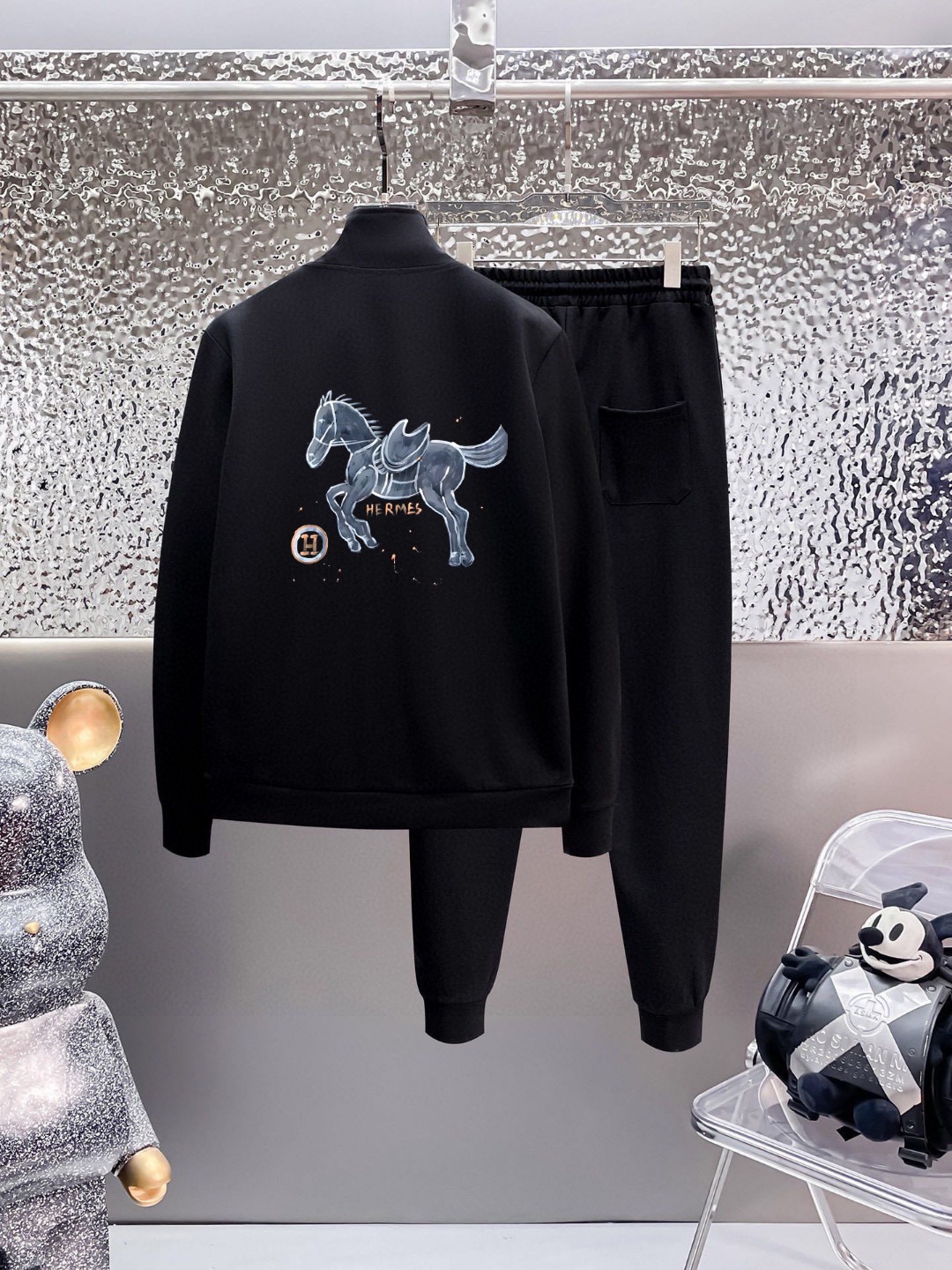 HERMES popular 2025 sweatshirt set, premium Roman cotton, elegant fit. Sizes M-5XL, up to 220斤.