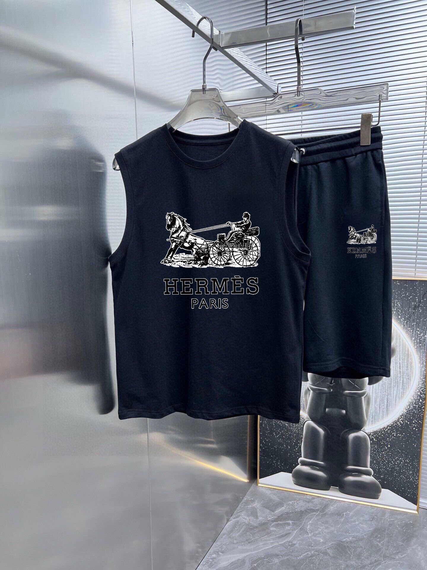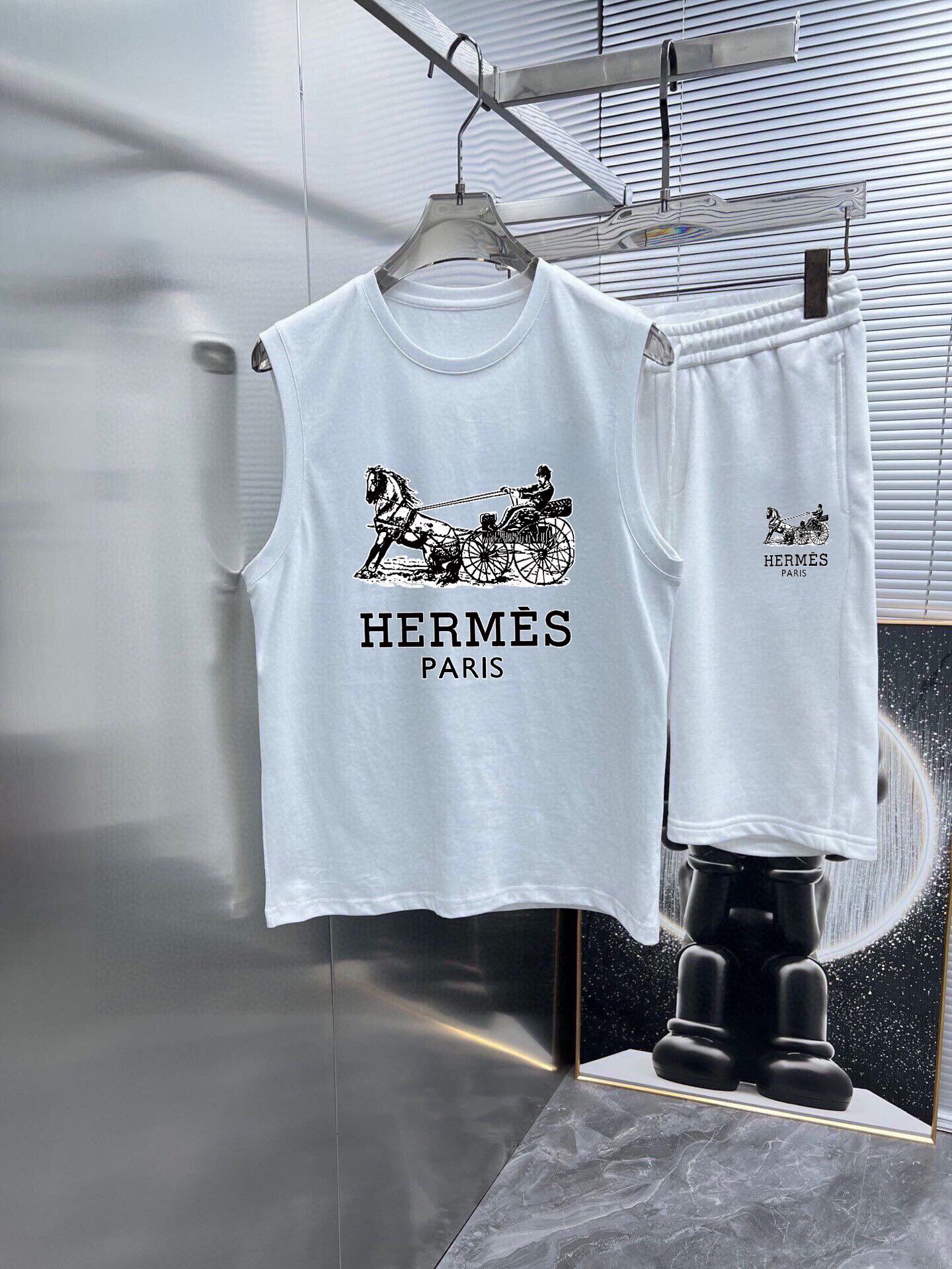 HERMES 2025 spring/summer vest set. Classic minimalist design, customizable mercerized cotton fabric, comfortable and breathable. Brand logo detail. Sizes M-3XL.
