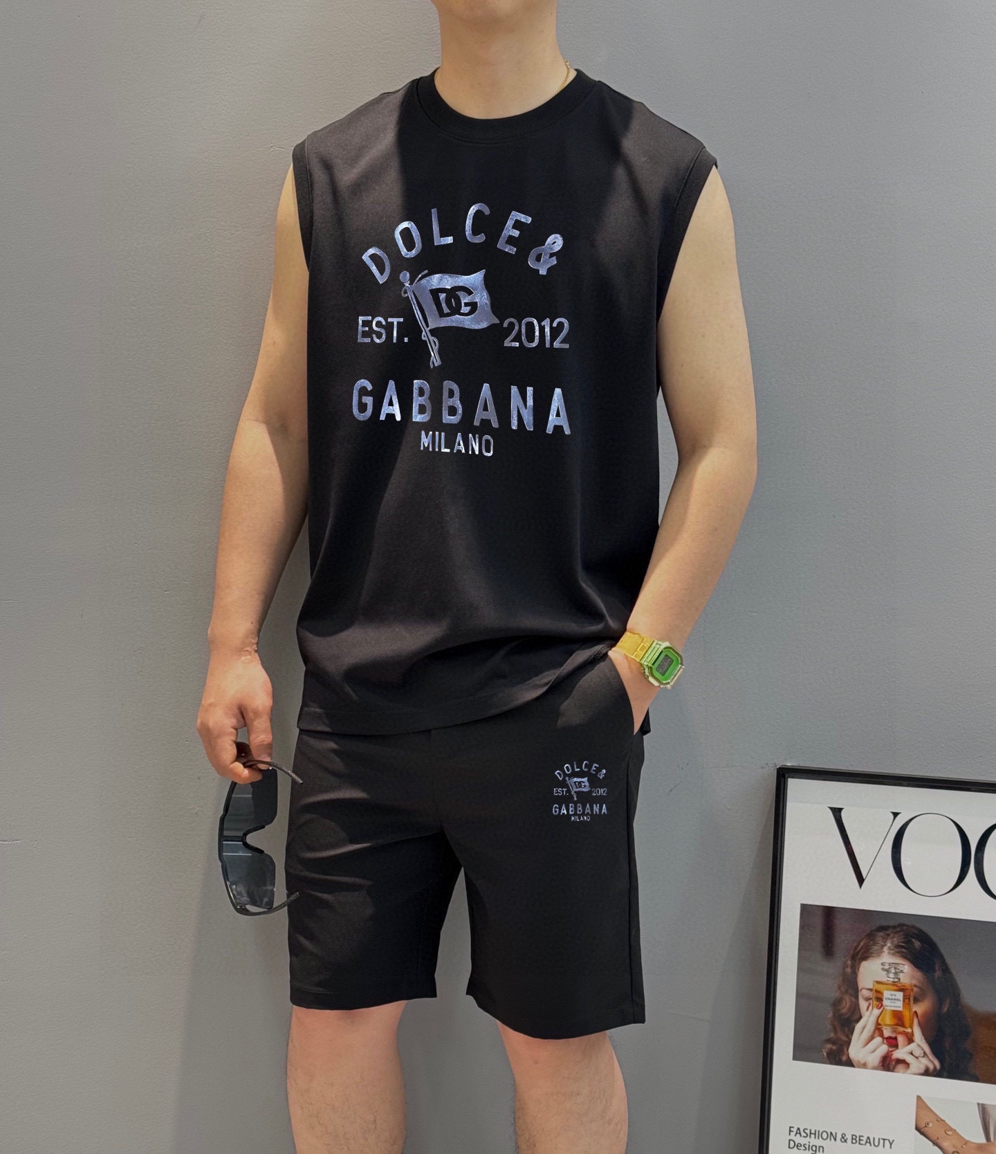D&G 2025 spring/summer vest set. Classic minimalist design. Custom imported cotton fabric, soft and breathable. Brand logo detail. Sizes M-3XL.