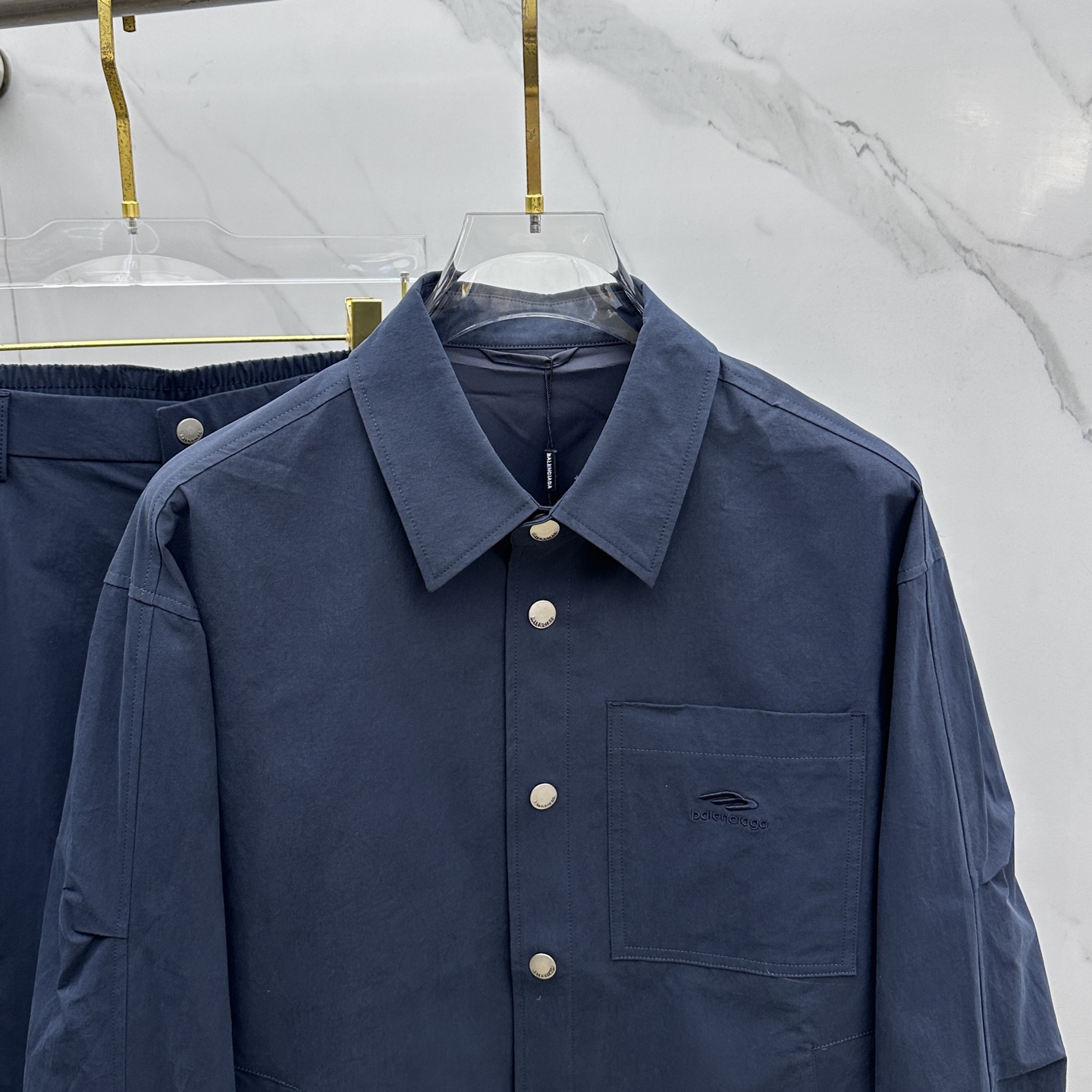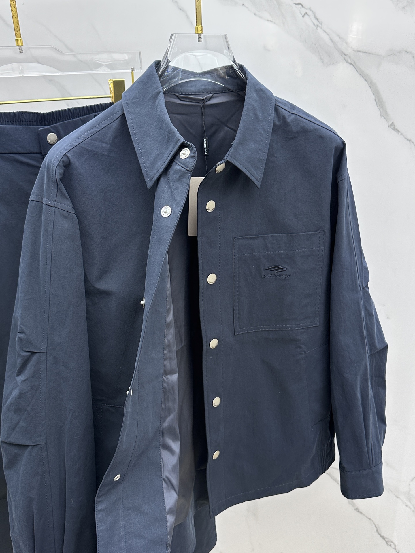 Balenciaga Fall/Winter 2025 runway set. Snap-button jacket, premium custom fabric, wrinkle-resistant. Sizes M-3XL. Stylish and versatile.