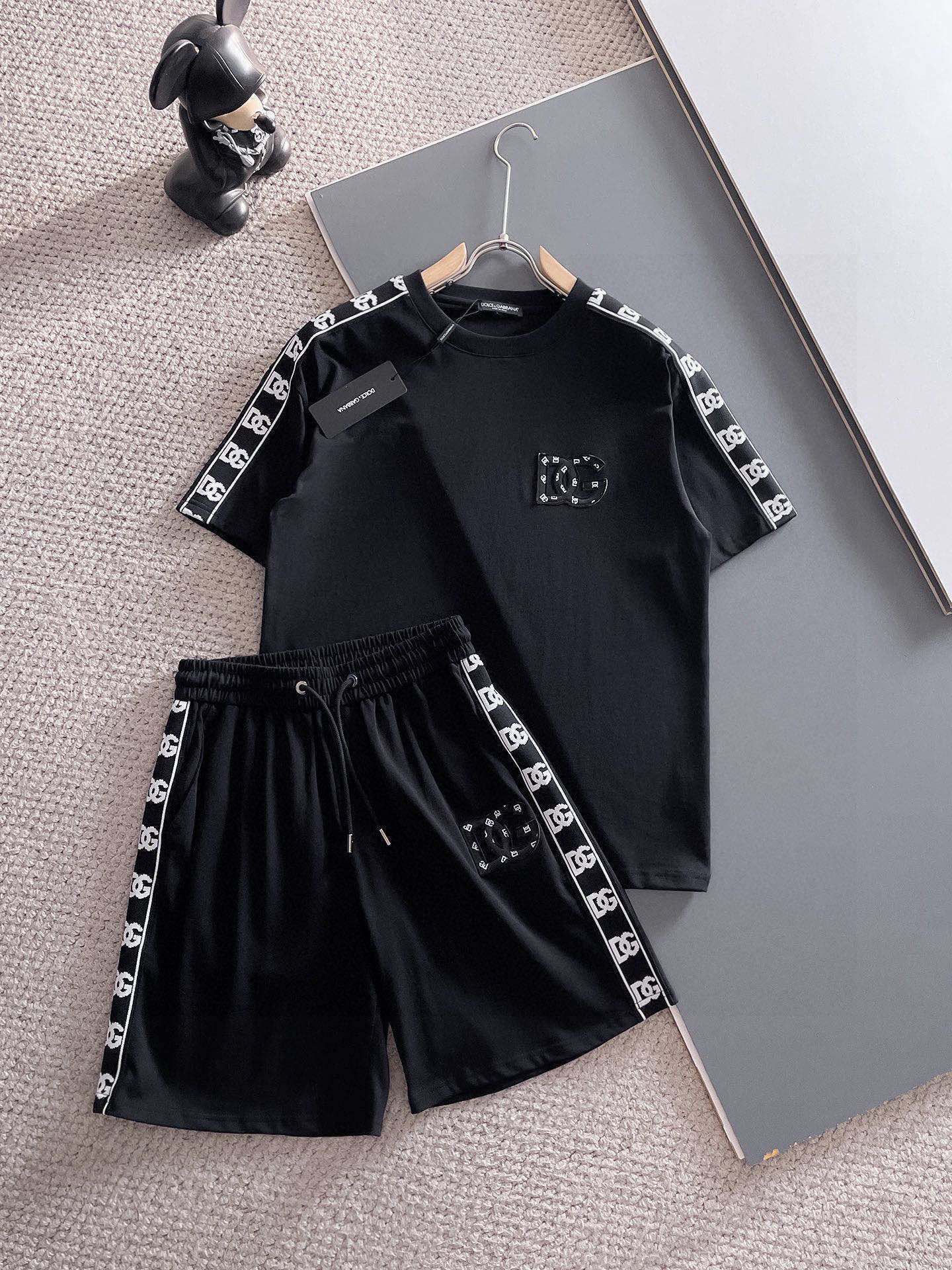 Direct wholesale D&G brand 2025 short sleeve and shorts set. Pure cotton, breathable and comfortable. Classic logo, stylish design. Sizes: M-3XL.