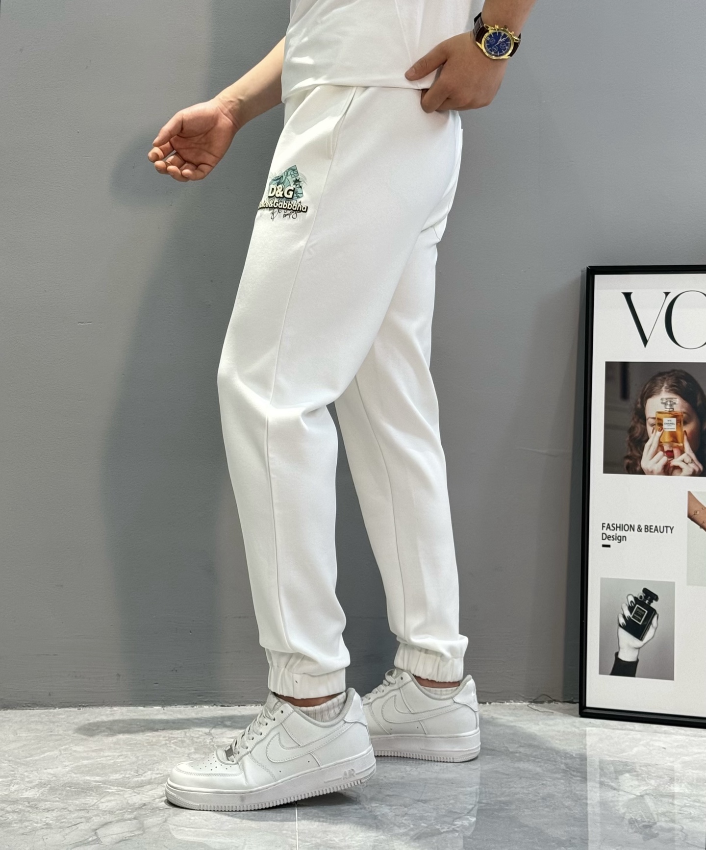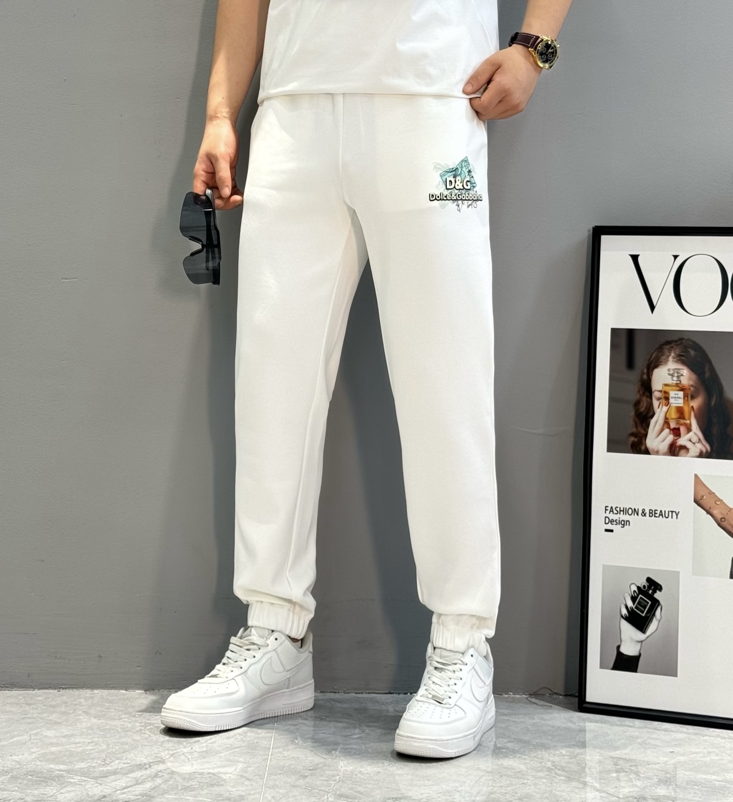 Dolce & Gabbana 25 FW new sport Tencel set. Jacket: zipper, chest print, back design, pockets. Pants: elastic waist, pockets, ankle cuffs. 380g Tencel. Colors: Black, White. Sizes: M-3XL.