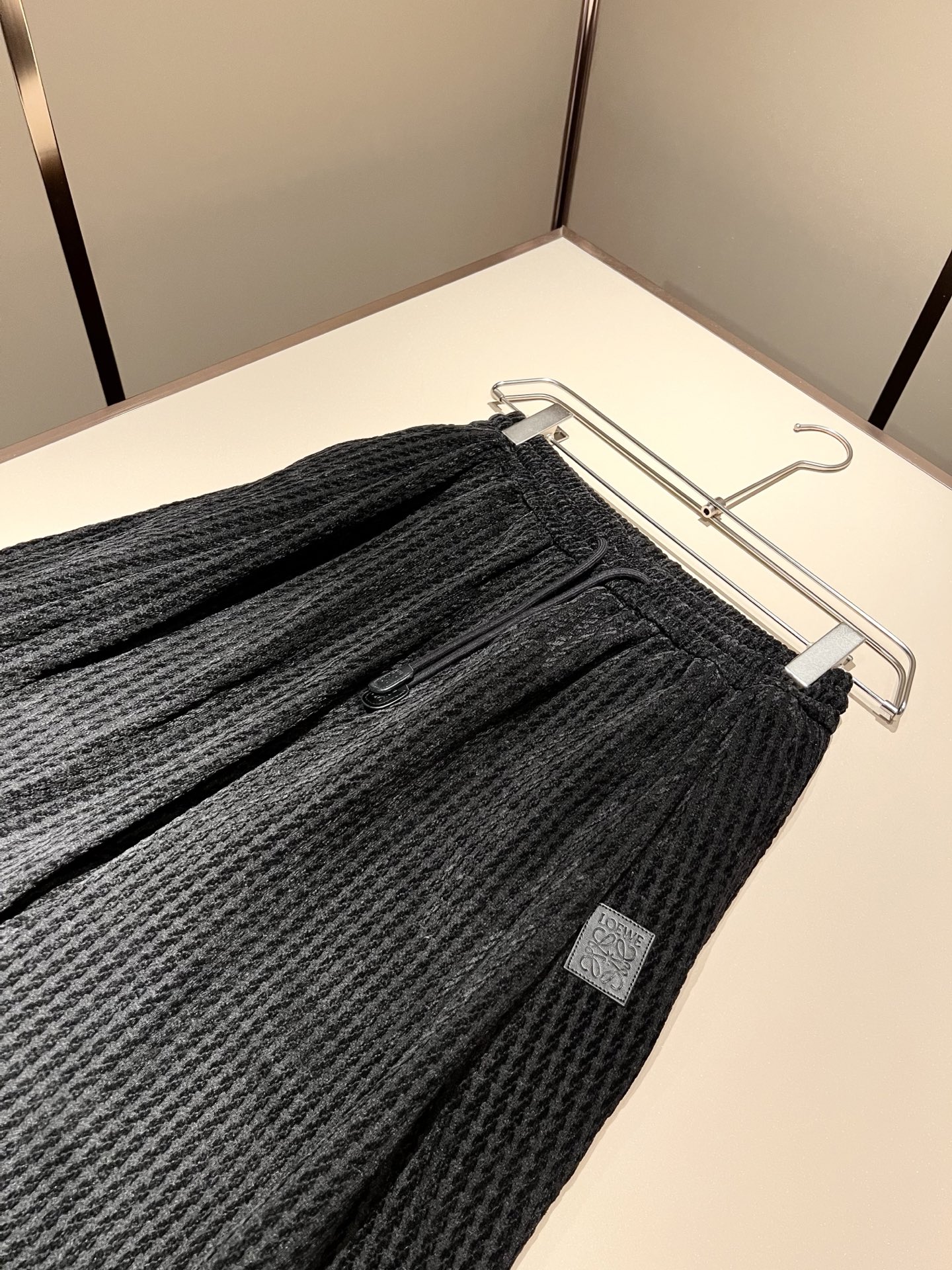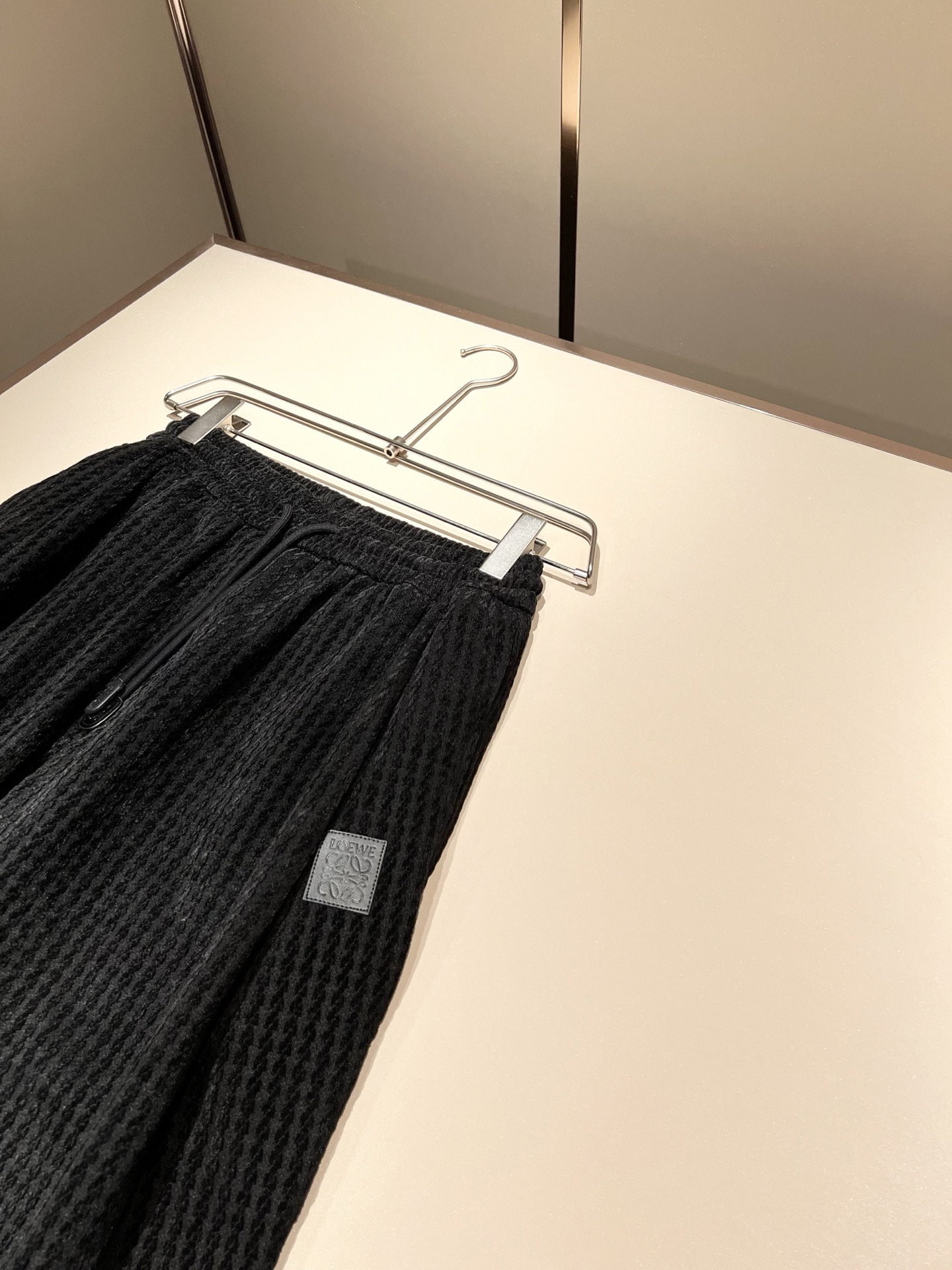 LOE*WE 2025 Fall/Winter unisex set. Italian factory order, personalized high-end style, logo leather design. Custom original cotton fabric. Trendy essential item. Sizes: M-3XL.