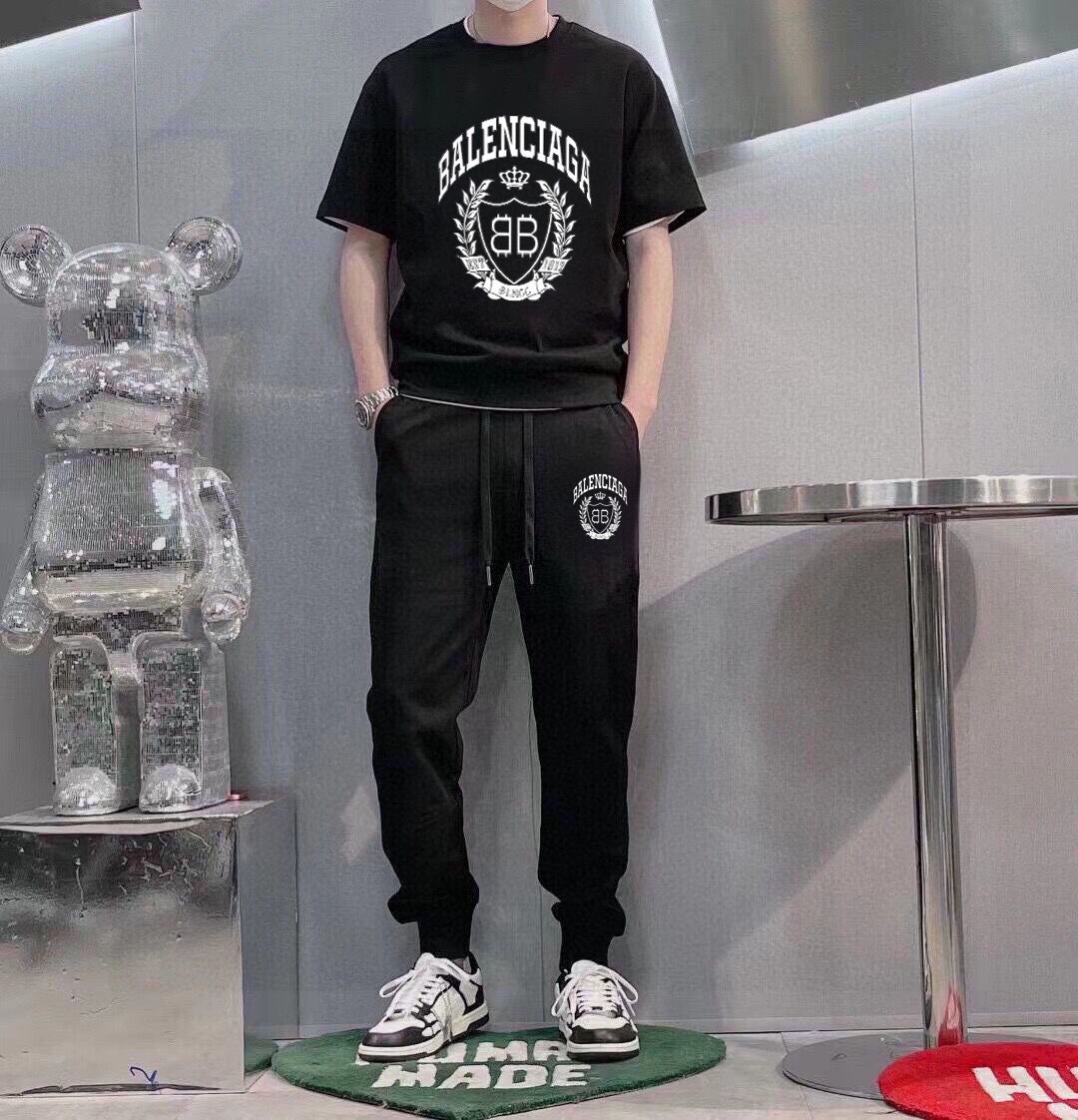 BALENCIAGA men's summer high-quality set, imported fabric, fashionable design, sizes M-5XL.