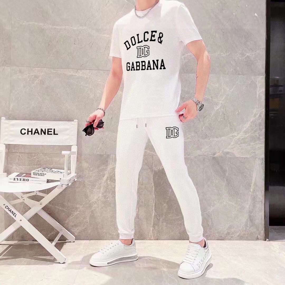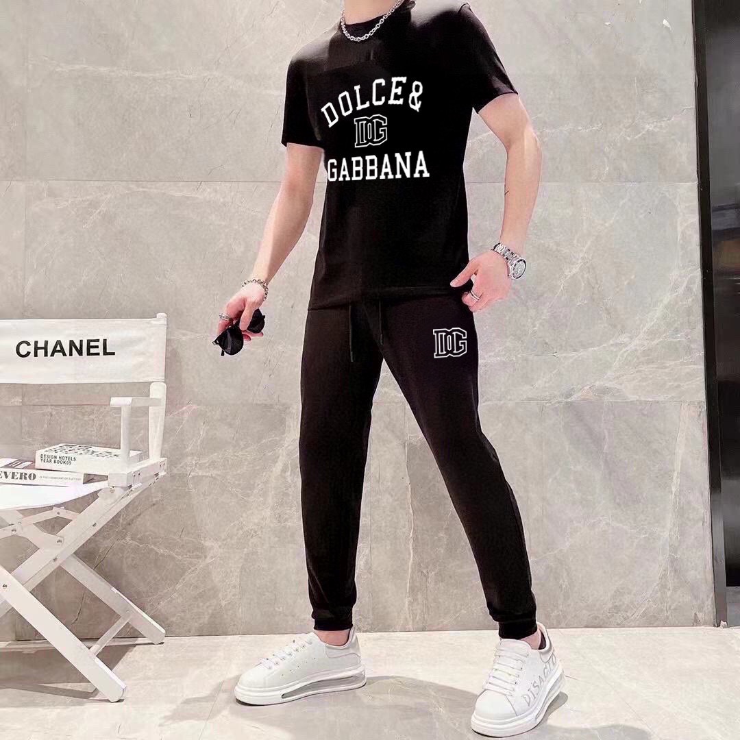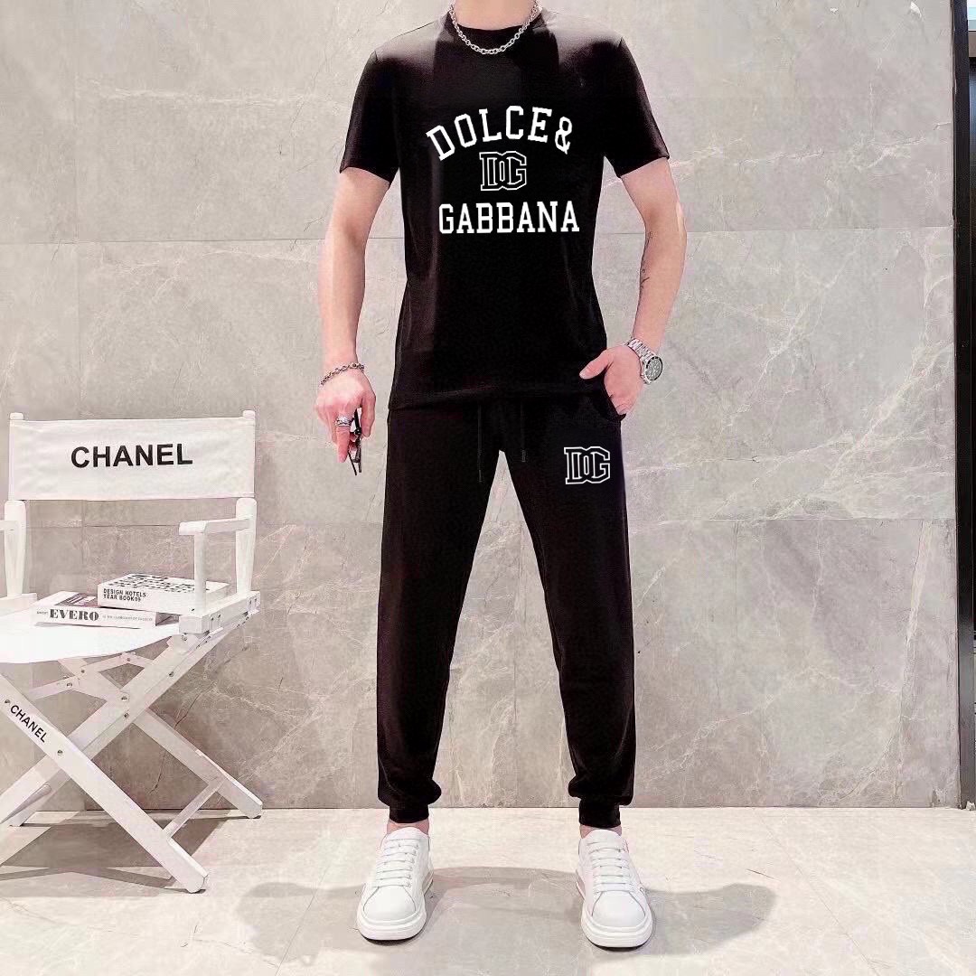 Dolce & Gabbana summer men's dual-gloss high-quality set. Imported fabric, trendy, versatile. Sizes M-5XL (up to 220斤).