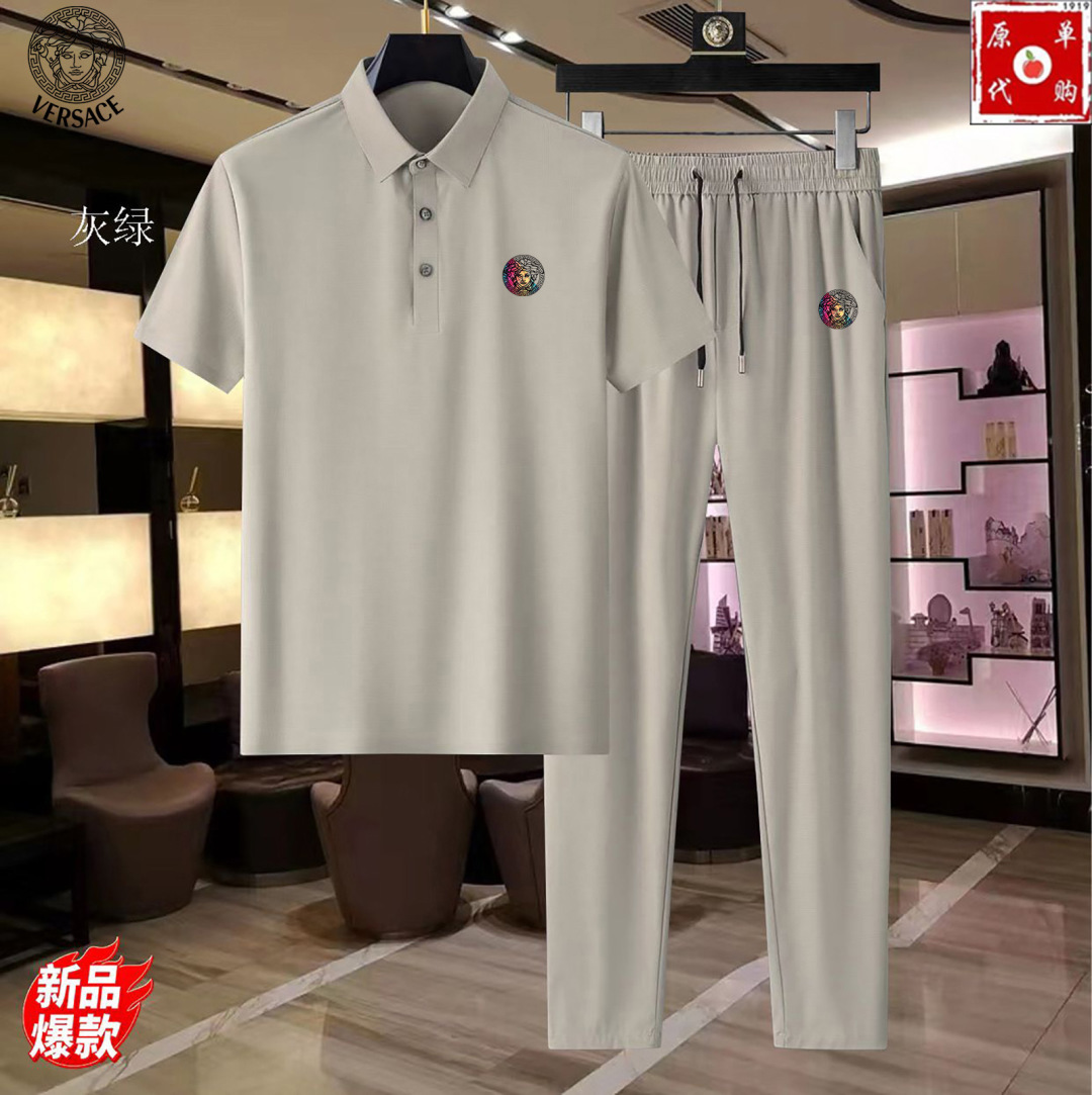 VERSACE summer set. Silk fabric, Milan fashion week 2025 SS. Real photos, premium quality. Sizes M-4XL. Italian custom texture, versatile design.