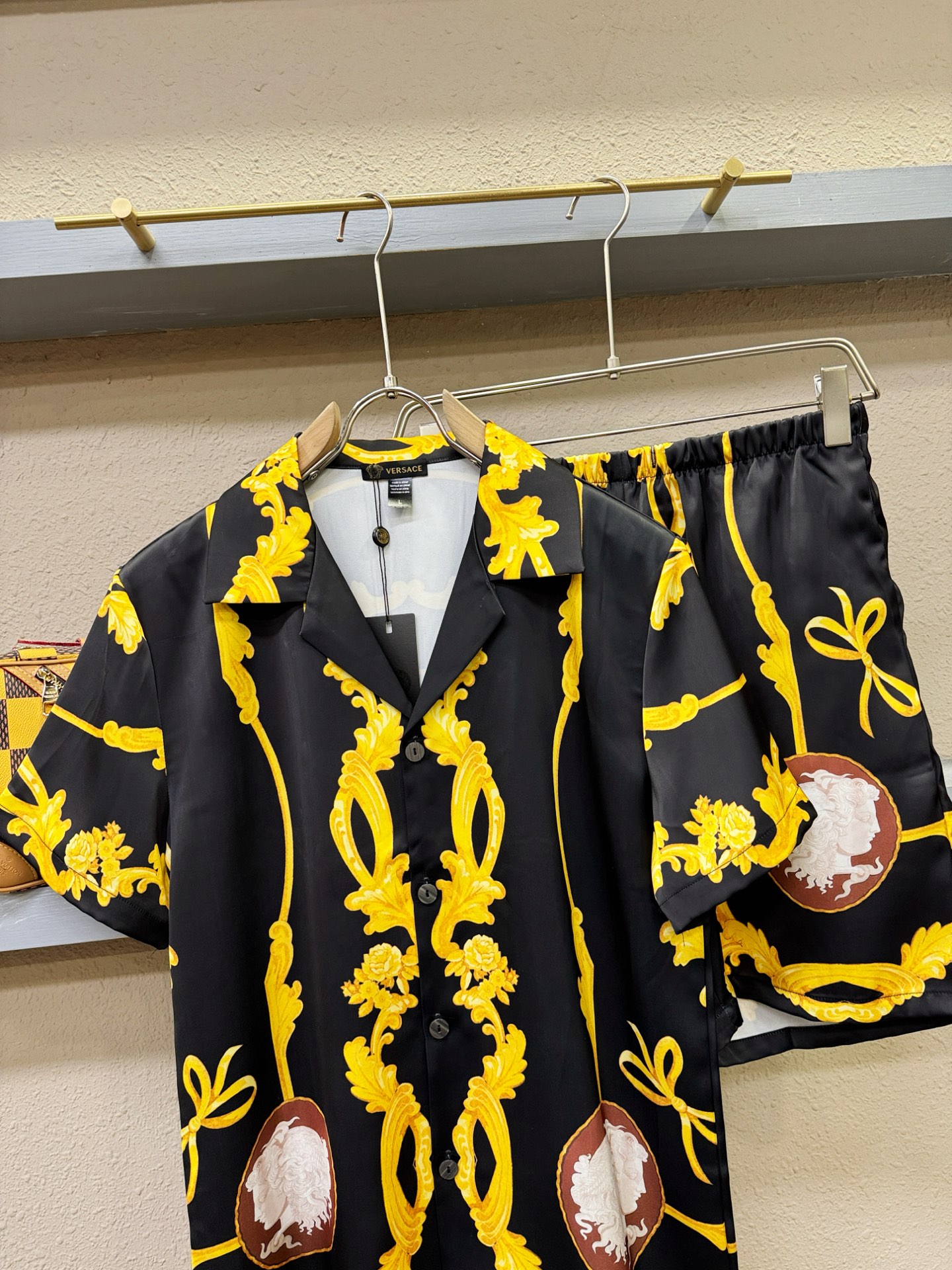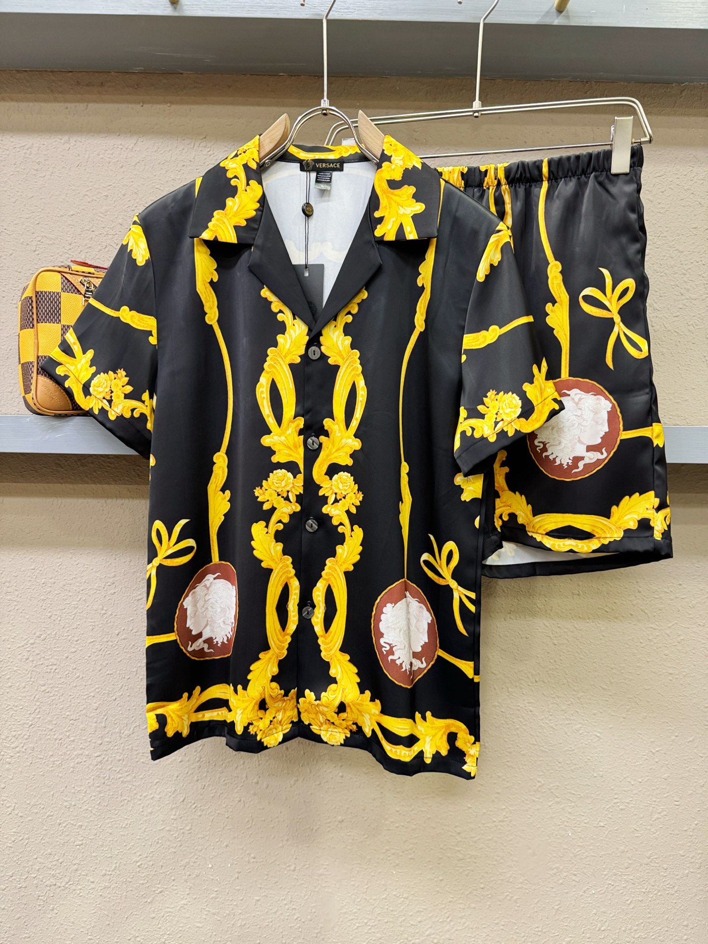 Versace 2025 silk set, unisex loungewear/pajamas. Clean cut, urban style. Soft, smooth silk with structured fit. Premium hardware. Sizes M-3XL.