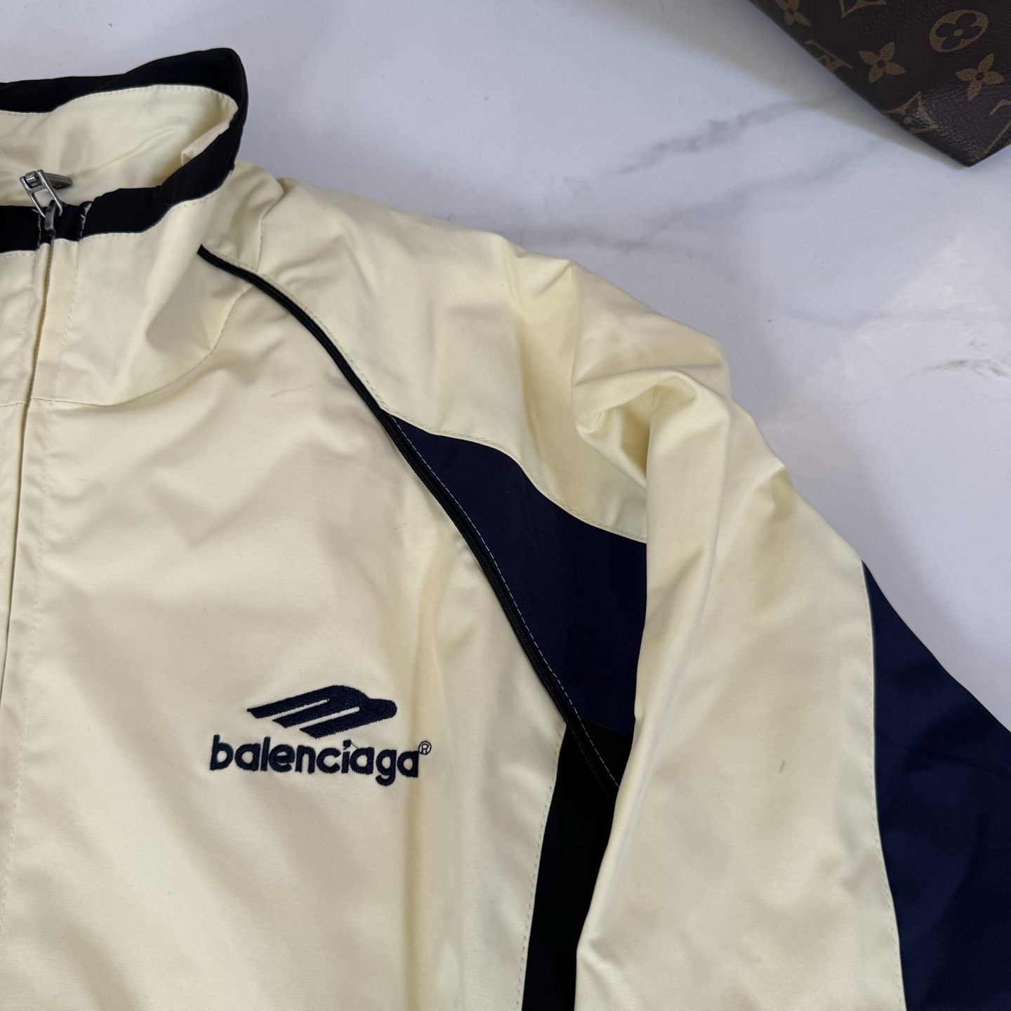 Balenciaga 23FW 3B tracksuit. Custom nylon, waterproof, OS fit. Black/cream. Sizes S-XL.