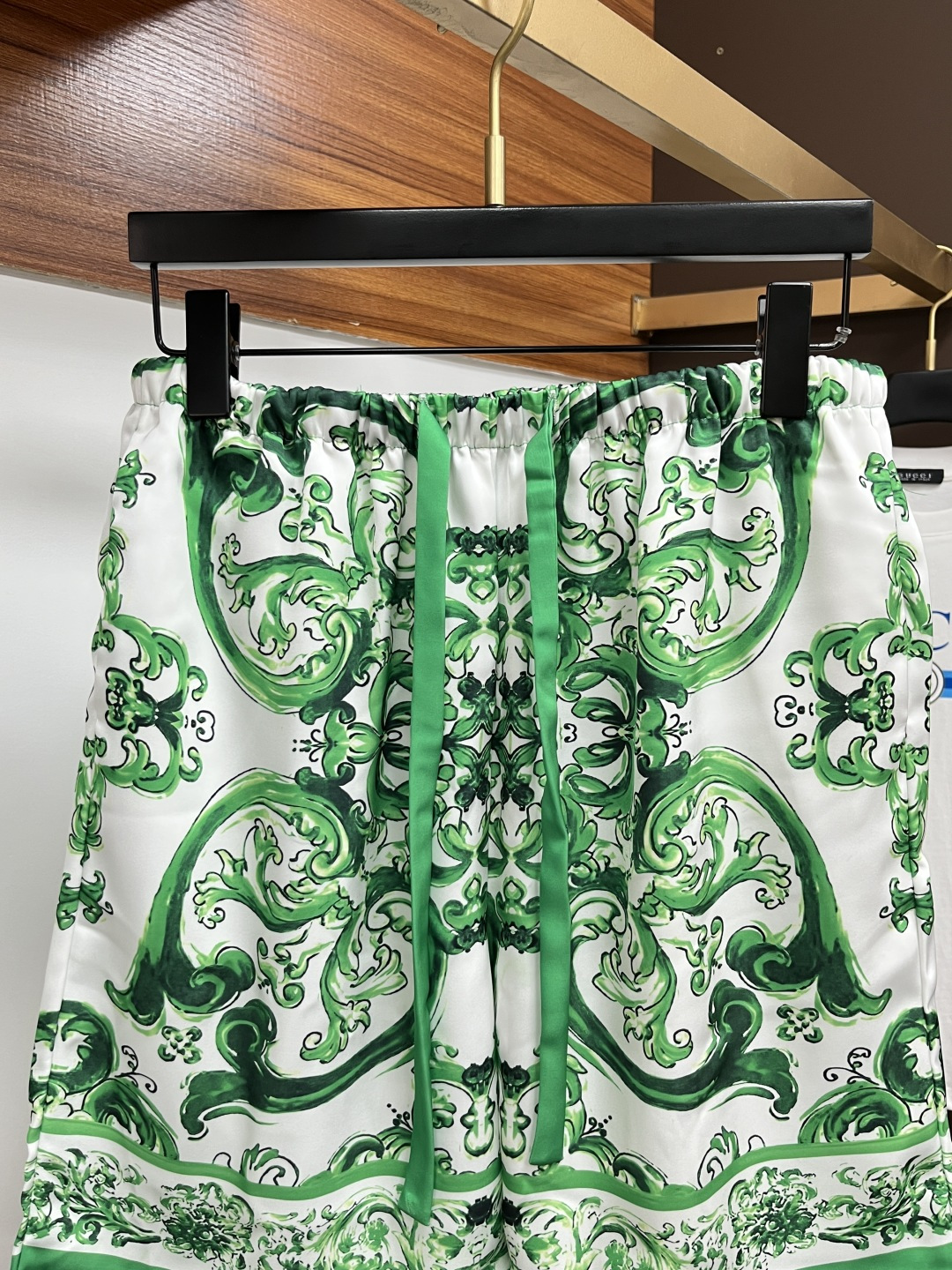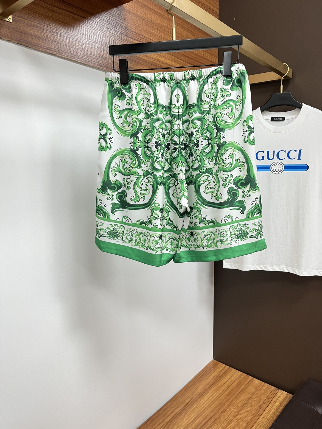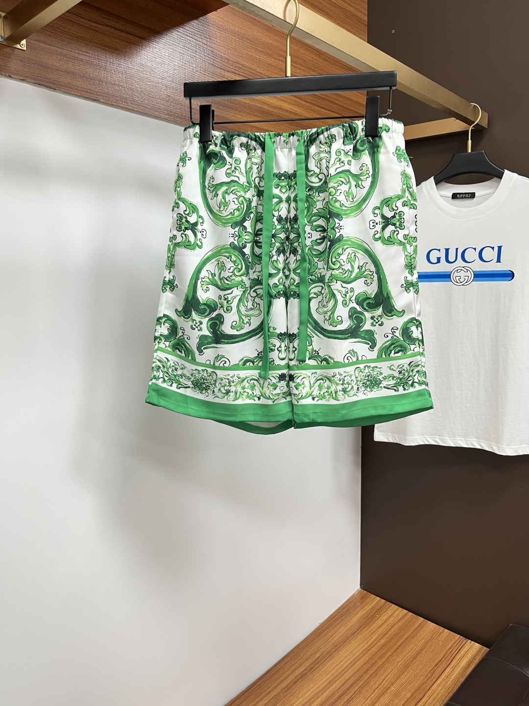 Versace couples' loungewear set, 2025 summer short sleeve & shorts. Korean custom silk-like fabric, breathable & comfortable. Brand details, quality craftsmanship. Sizes M-3XL.