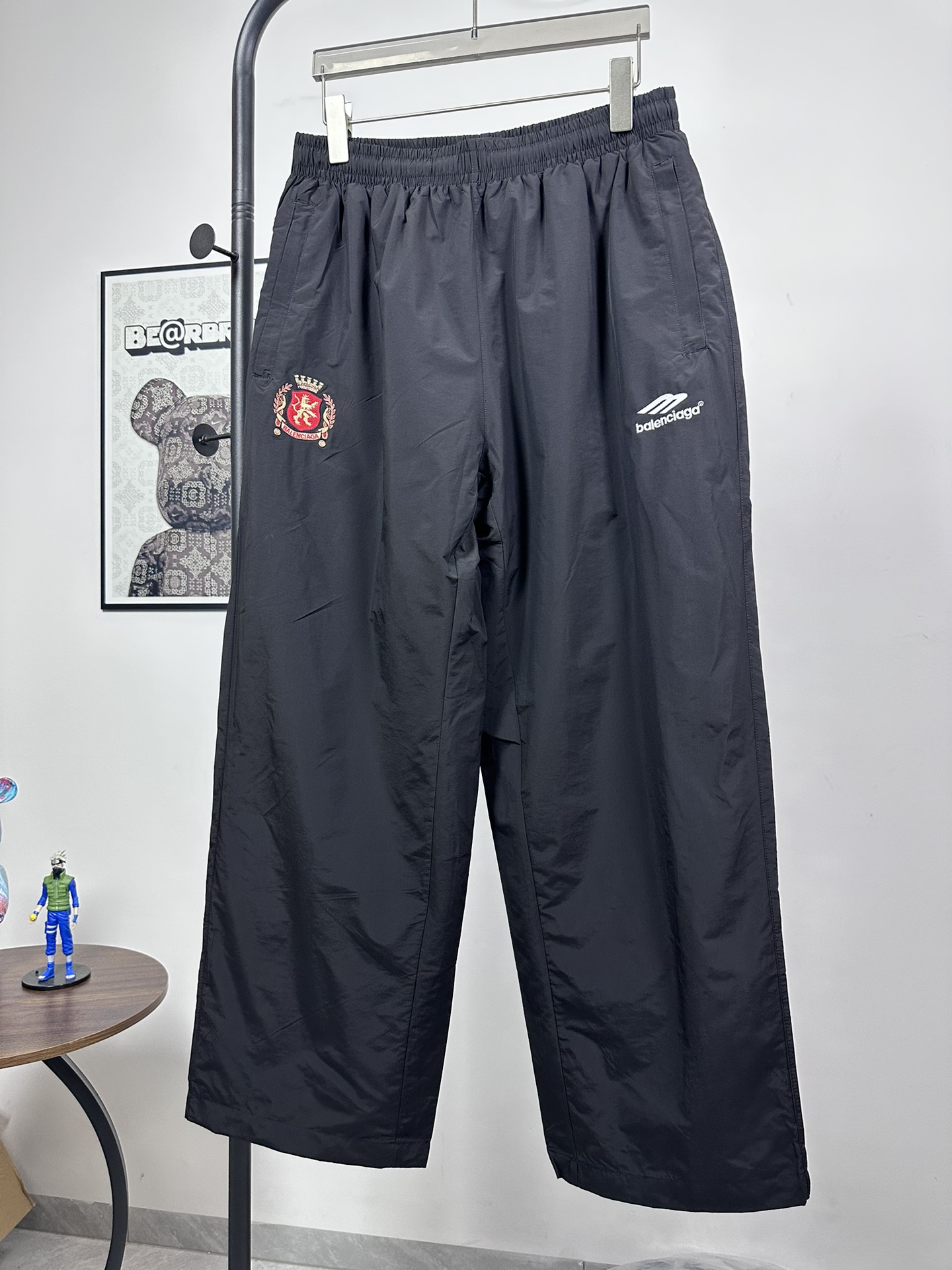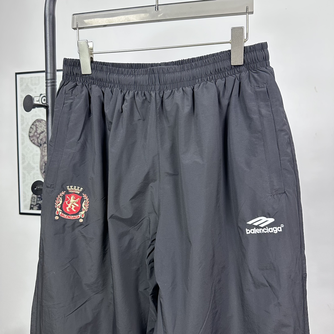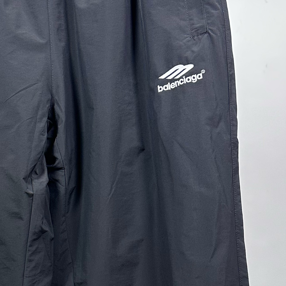 Balenciaga 24SS Manchester United embroidered tracksuit. Black. Sizes 46-52. Features custom nylon, waterproof coating, OS fit, zip pockets, high collar.