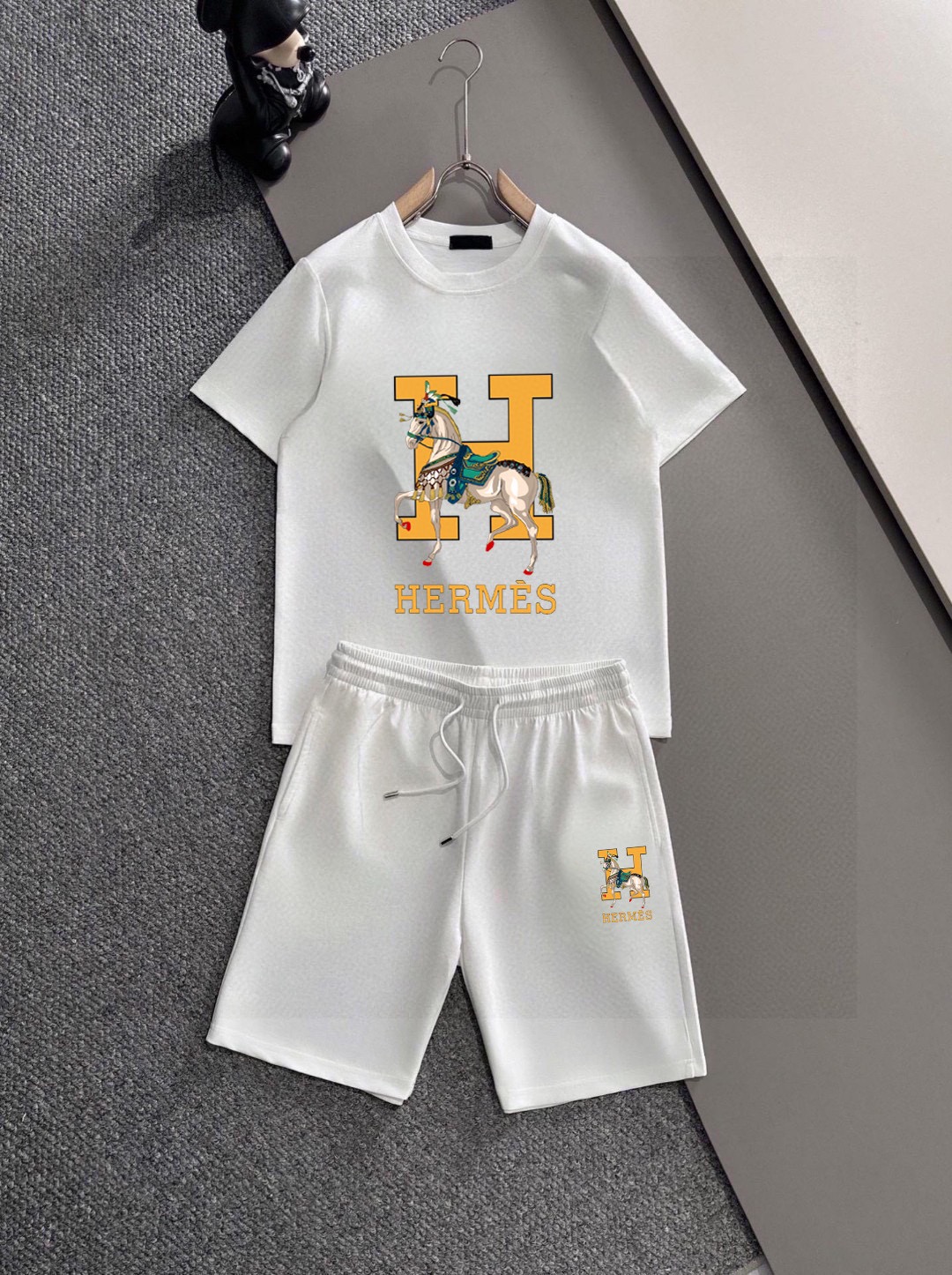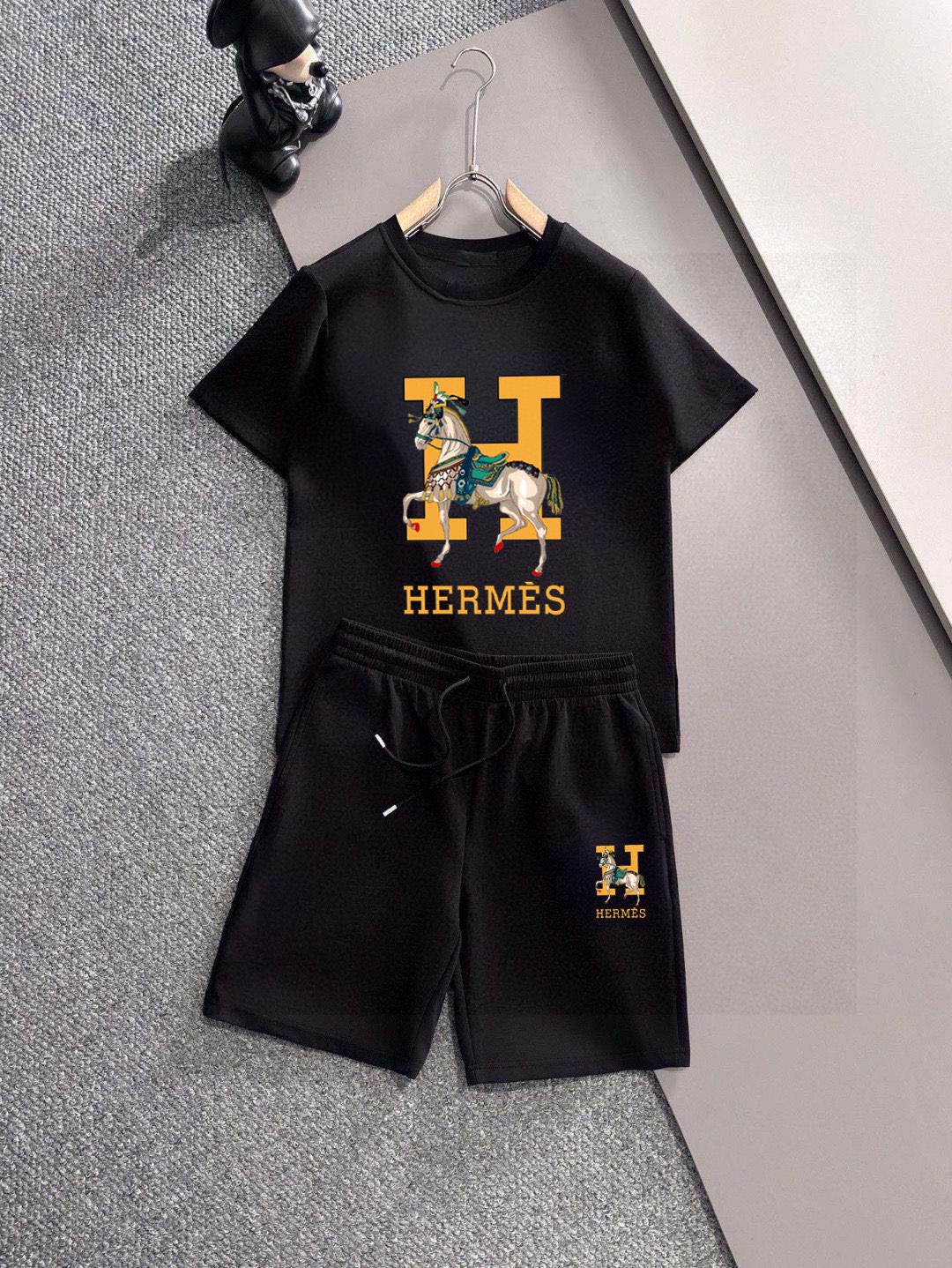Hermes men's 2025 short sleeve and shorts set. High-end version, soft fabric, comfortable fit, 3D cut. Sizes: M-5XL.