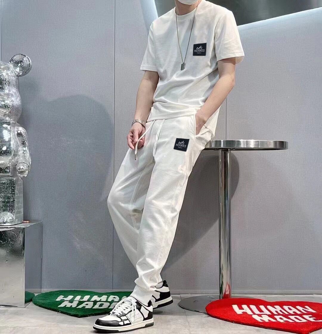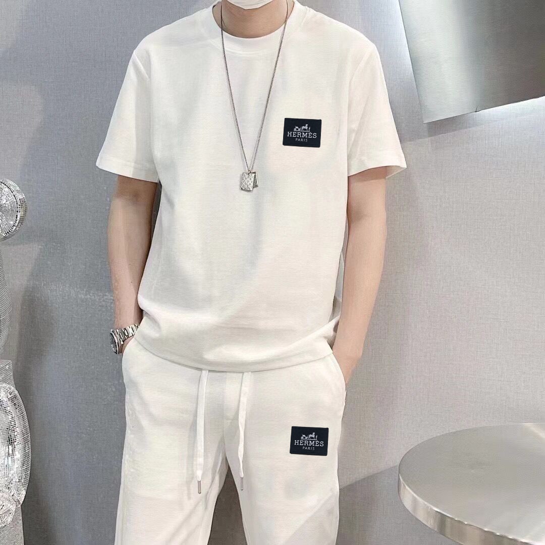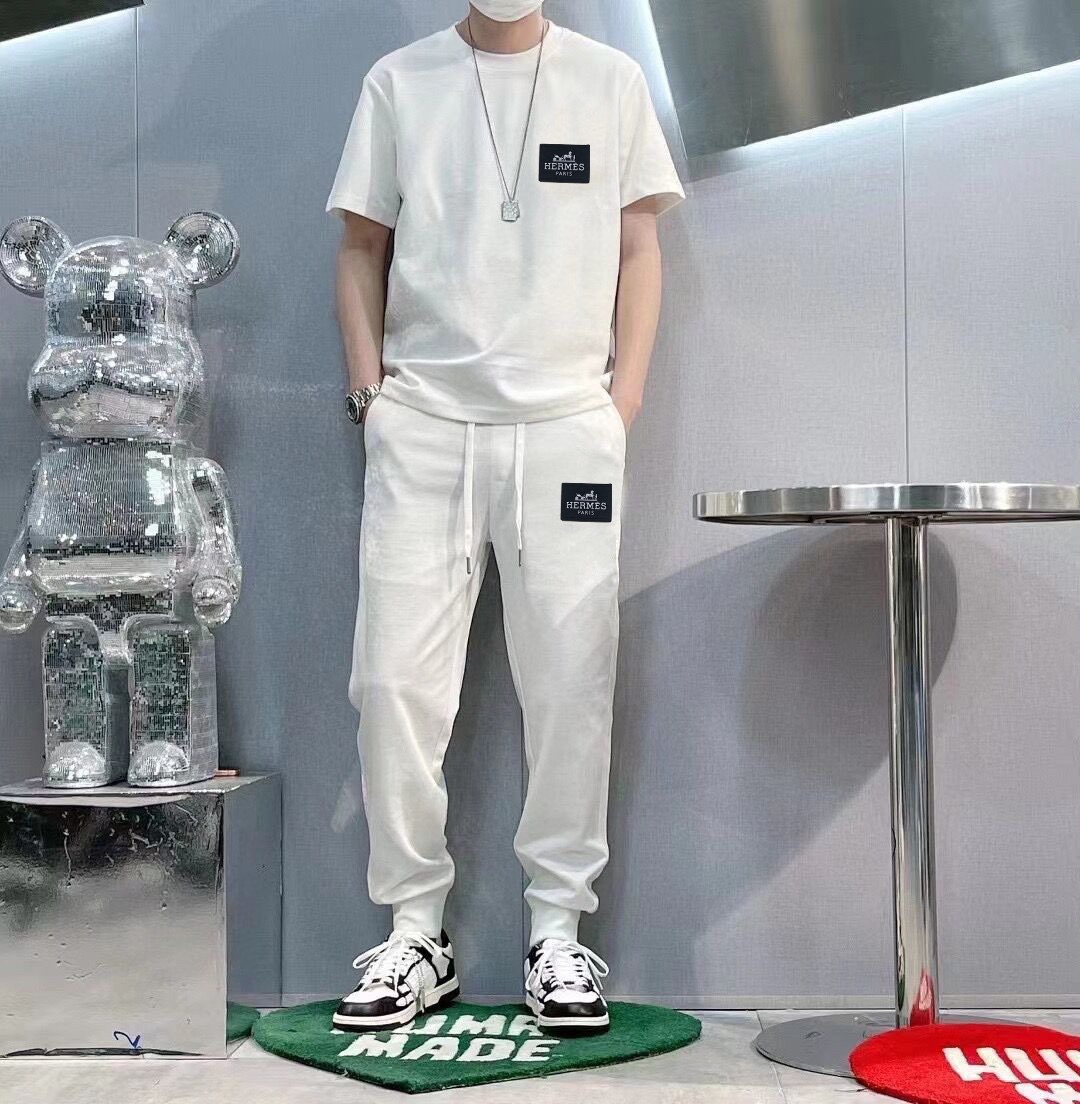 Hermes men's summer dual-gloss luxury set. Imported fabric, trendy & versatile. Sizes M-5XL (up to 220kg).