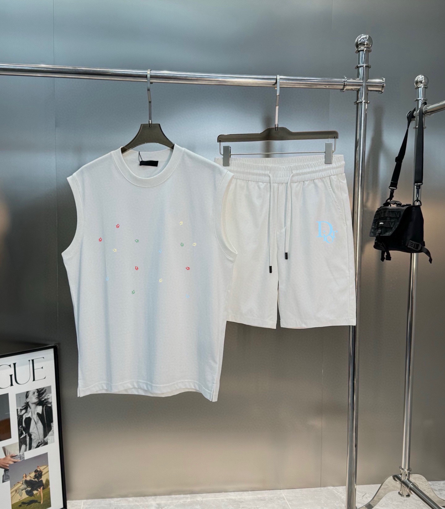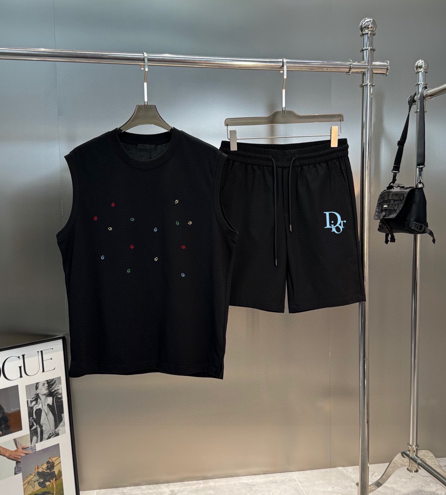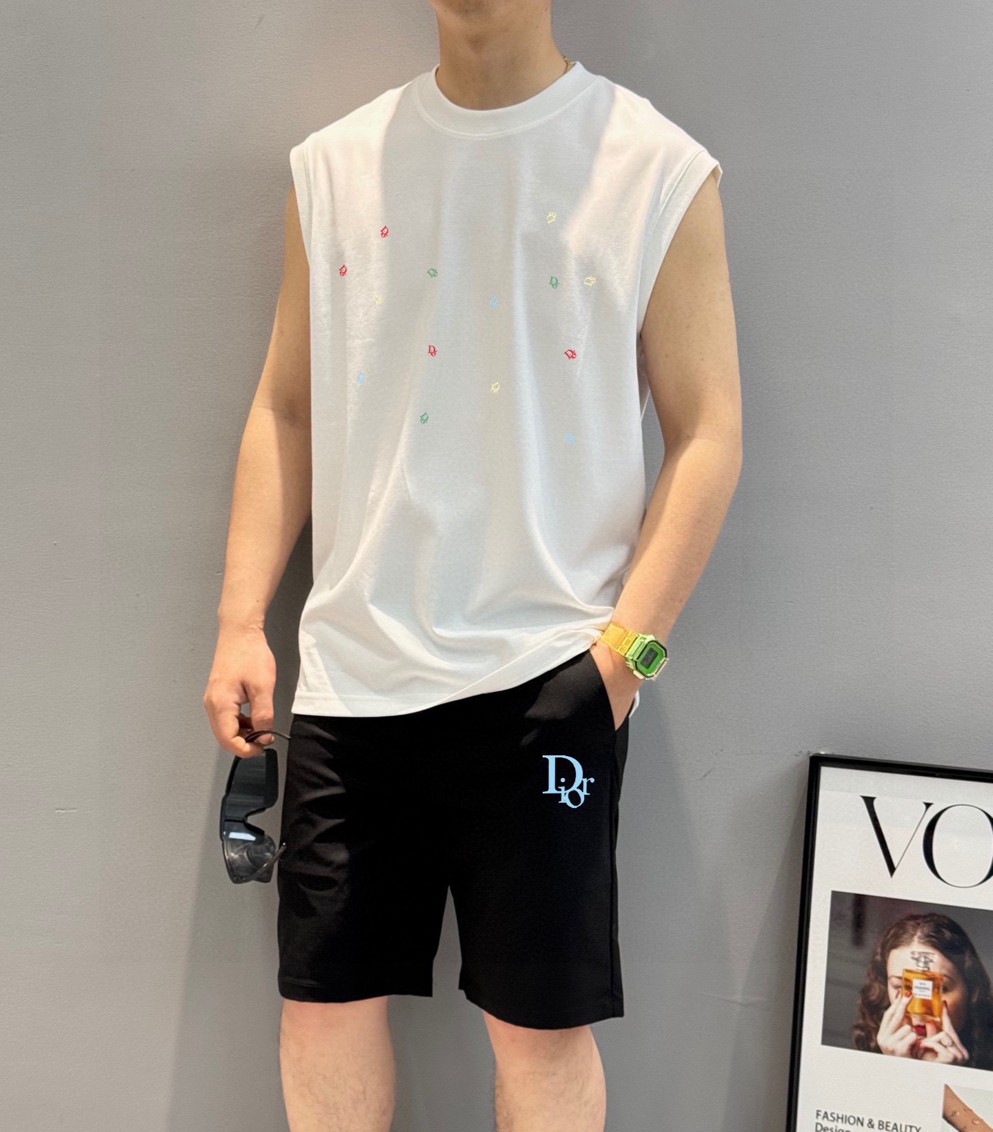 Dior 2025 spring/summer vest set. Classic minimalist design, comfortable mercerized cotton fabric, breathable. Features brand logo. Sizes M-3XL.