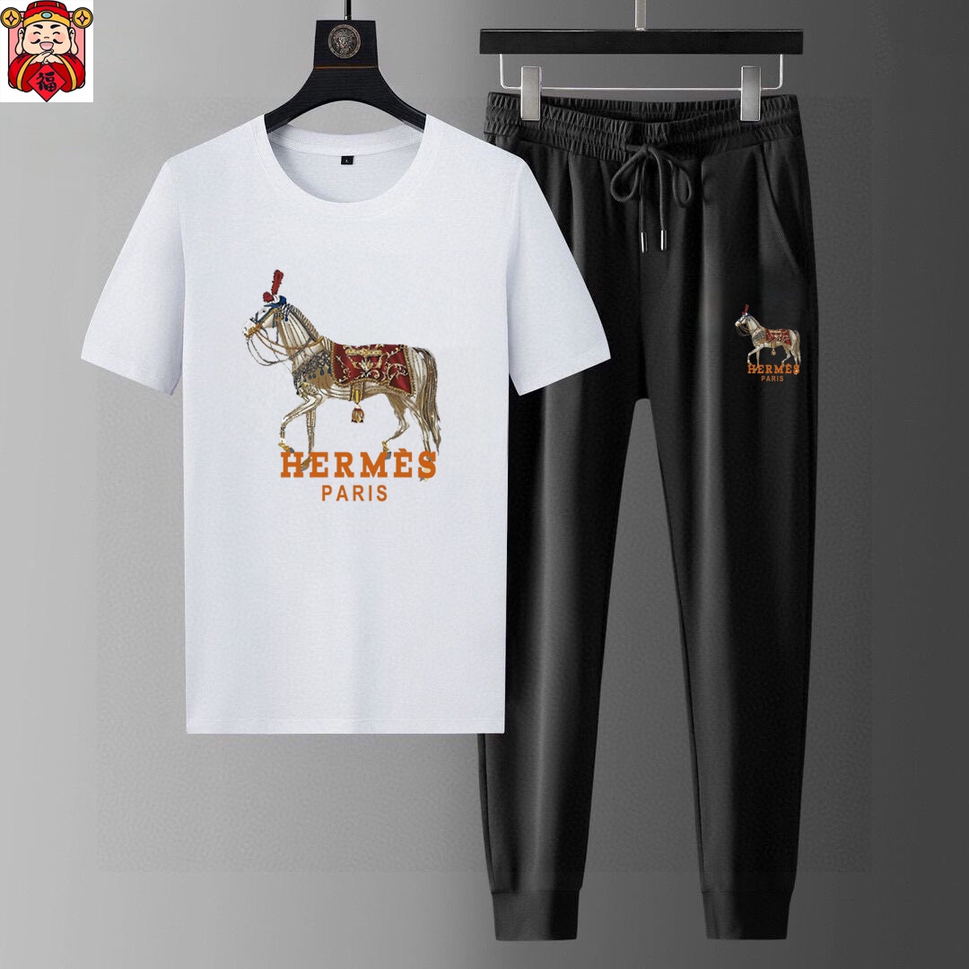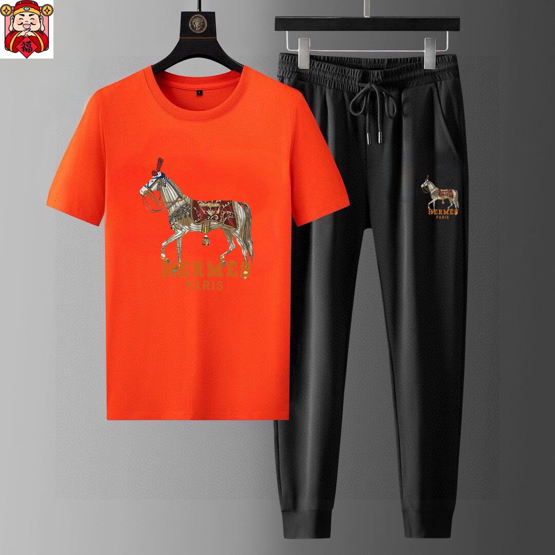 Hermes men's summer dual-gloss high-quality set. Imported fabric, trendy, versatile. Sizes M-5XL (up to 220斤).