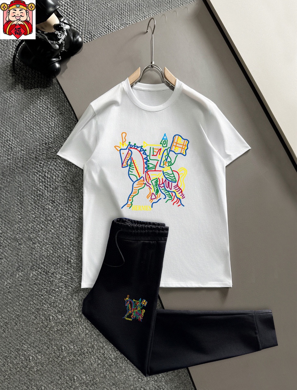 Hermes men's summer dual-gloss high-quality set. Imported fabric, trendy, versatile. Sizes M-5XL (up to 220斤).