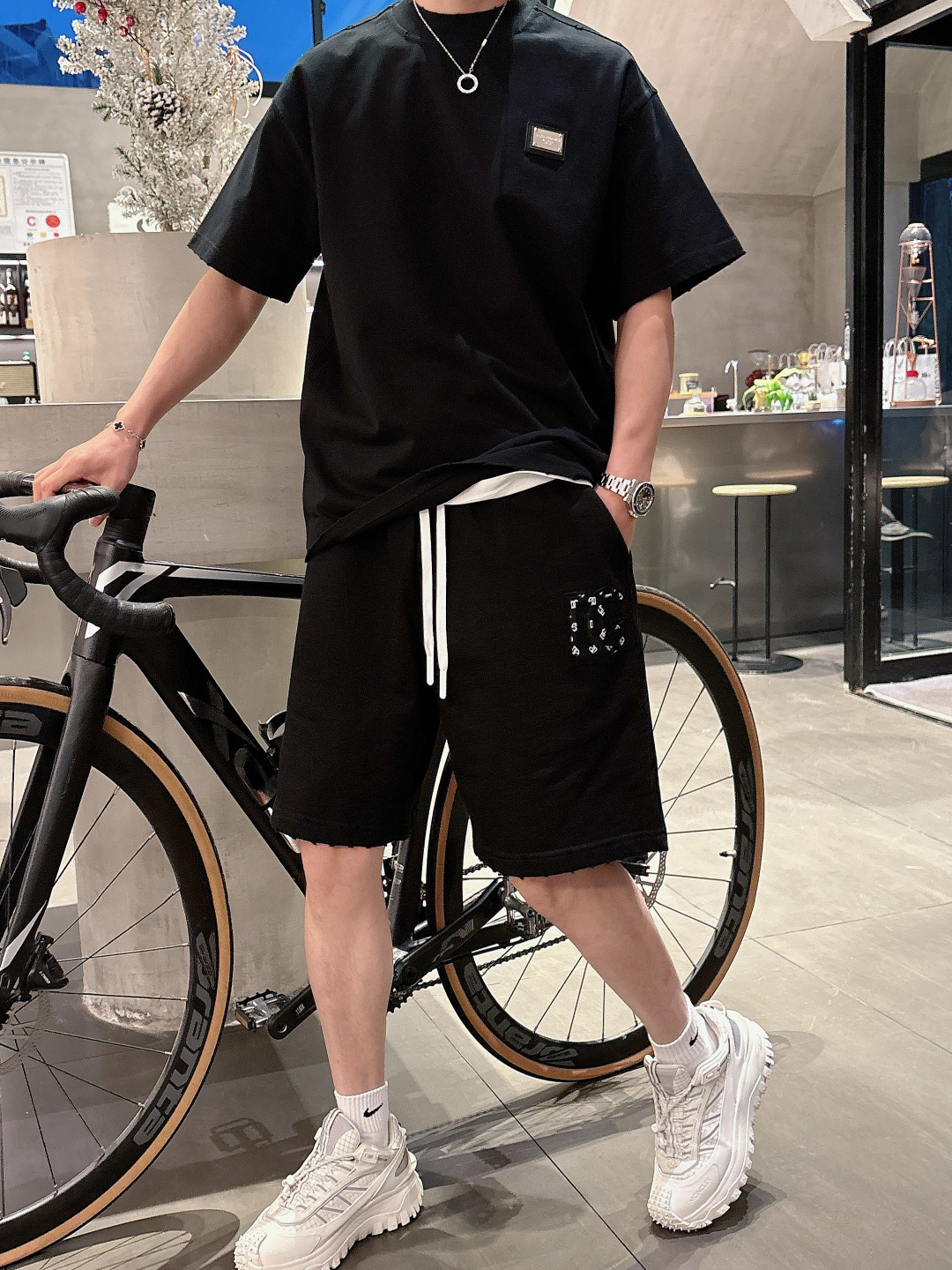 Home • Apparel • Suit • Dolce & Gabbana 2025 set, new distressed wash. T-shirt & shorts. Colors: Paris Grey, Beige, Black, Green. Sizes M-3XL, waist 29-38. Soft, comfortable, stylish.