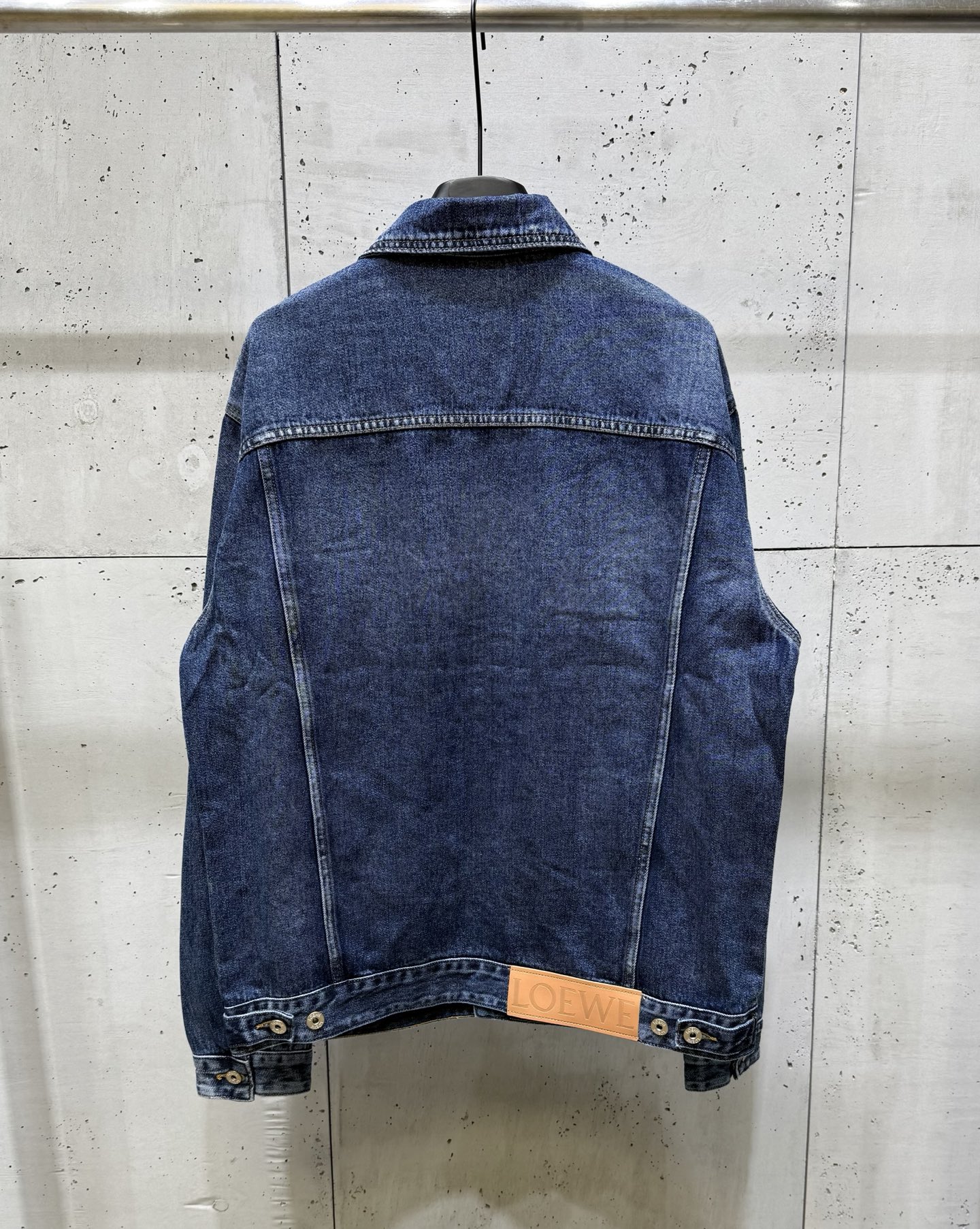 Loewe 25FW high-quality washed denim set. Classic logo embroidery on sleeves, leather label, custom metal buttons. Unisex sizes S-XL.