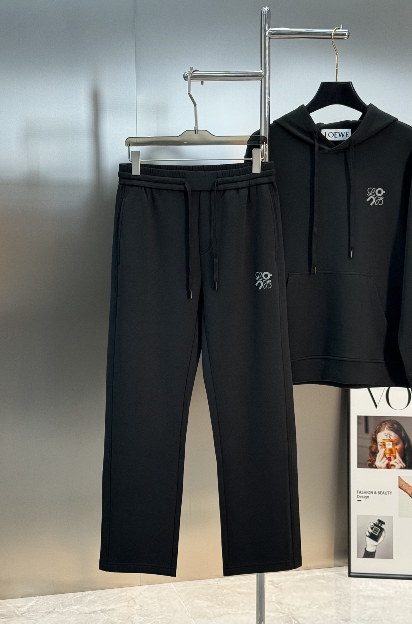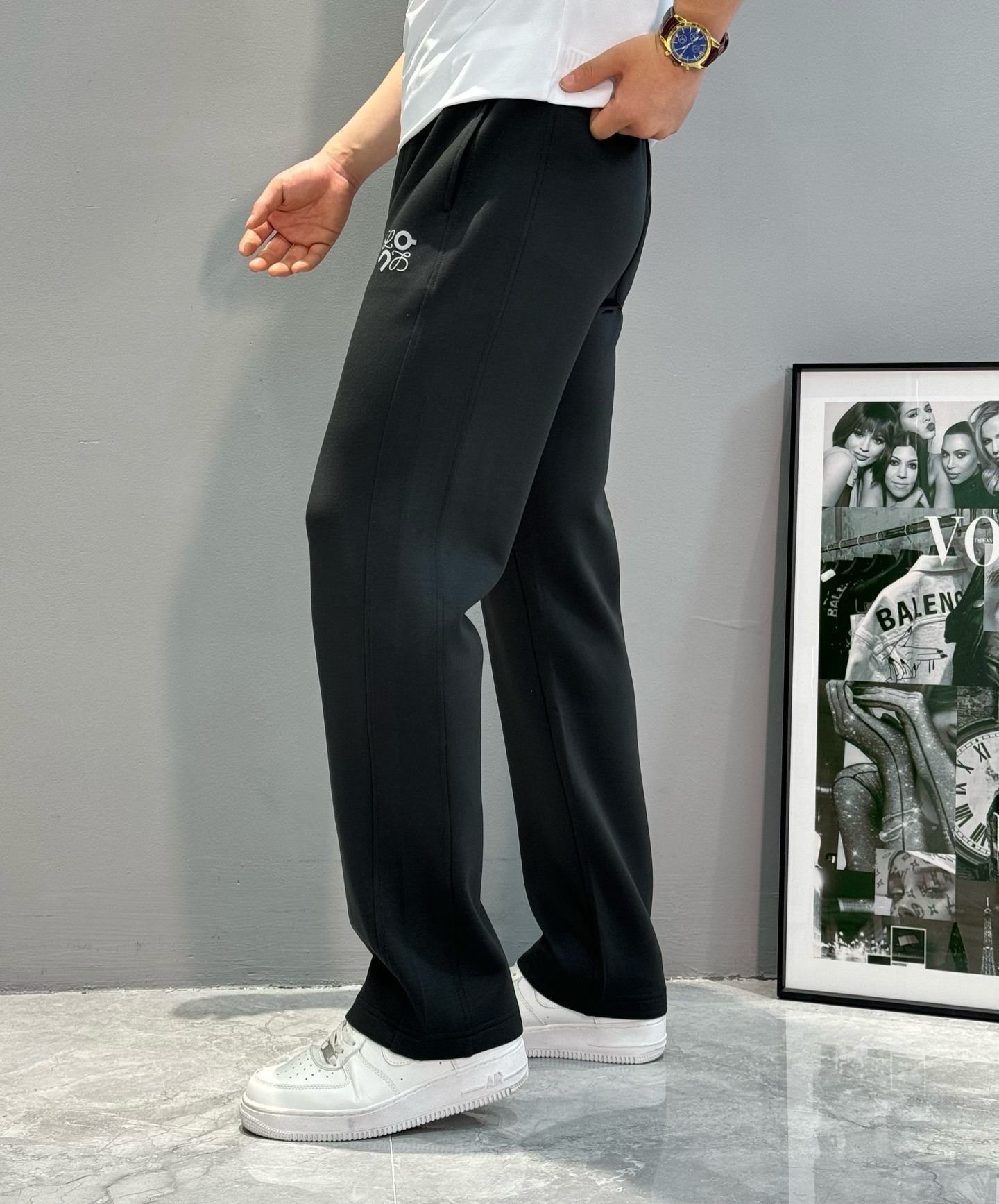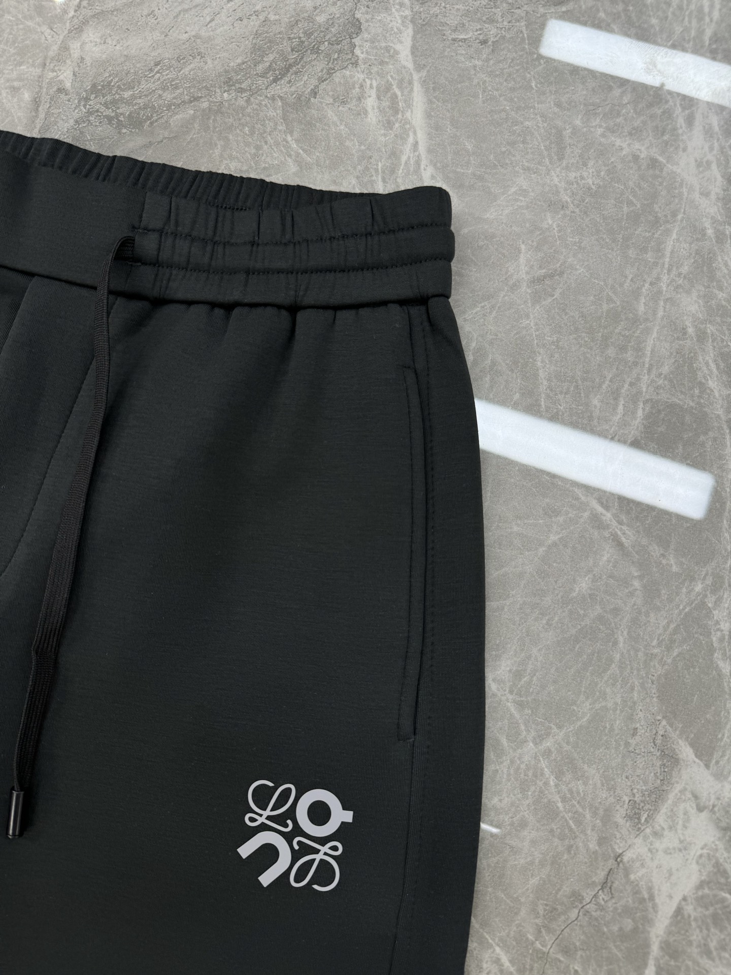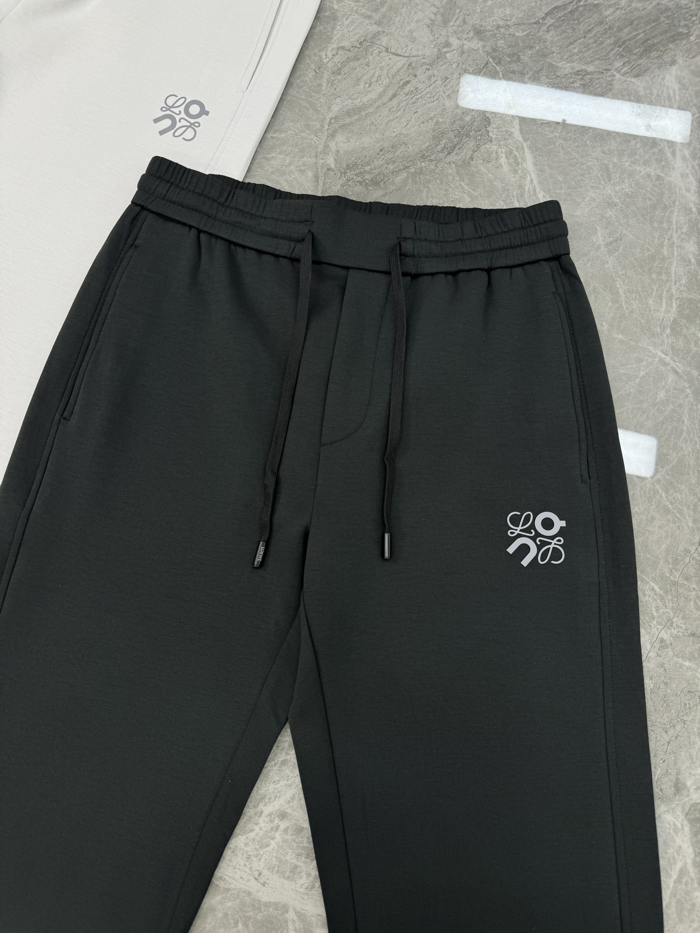LOEWE 2025 straight-leg pants. Custom cotton fabric, skin-friendly & breathable. Elastic waistband, versatile for various occasions. Colors: black, light gray, dark gray. Sizes: M-3XL.
