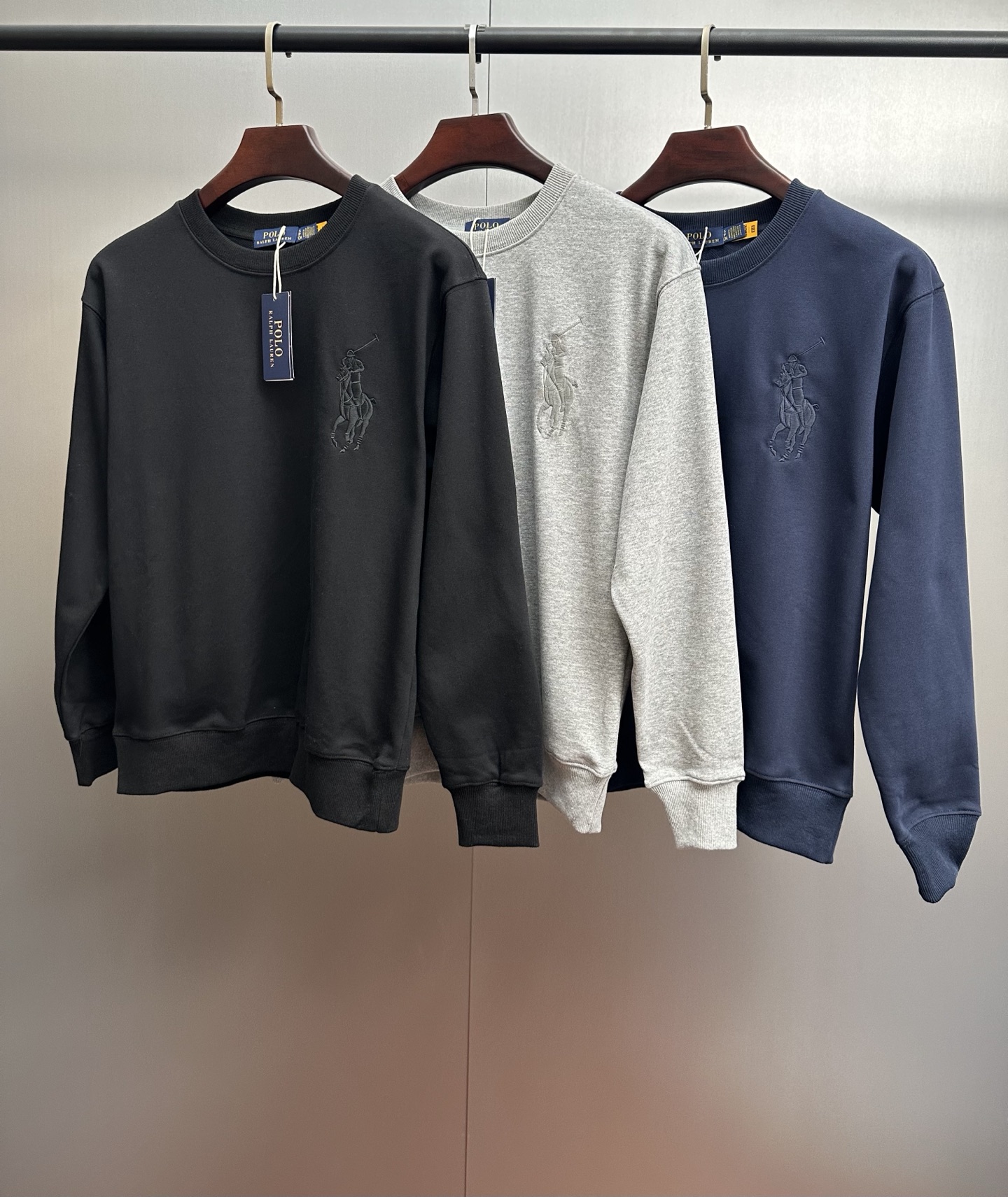 Ralph Lauren 25ss embroidered polo long sleeve. High-density embroidery, 100% cotton. Unisex style in black, navy, gray. Sizes S-XL.