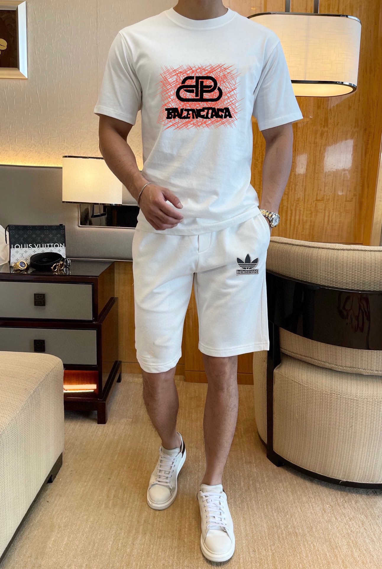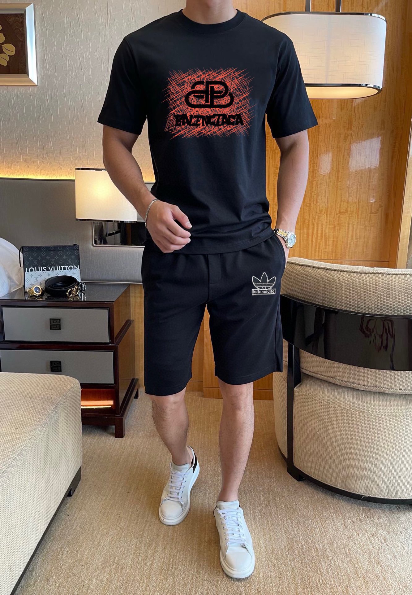 BALENCIAGA 2025 men's short sleeve and shorts set. High-end version, soft fabric, comfortable fit, 3D cut. Sizes: M-5XL.