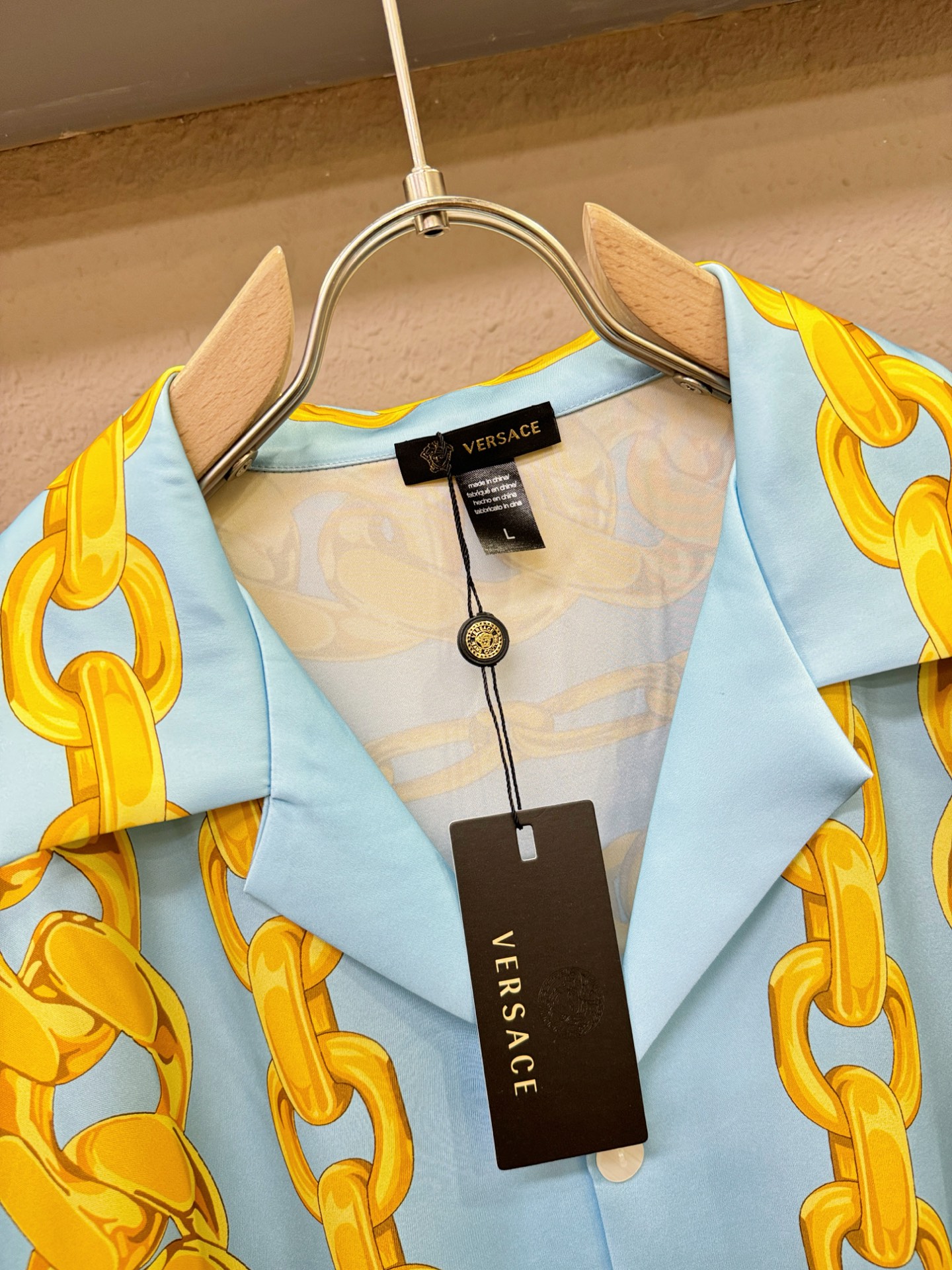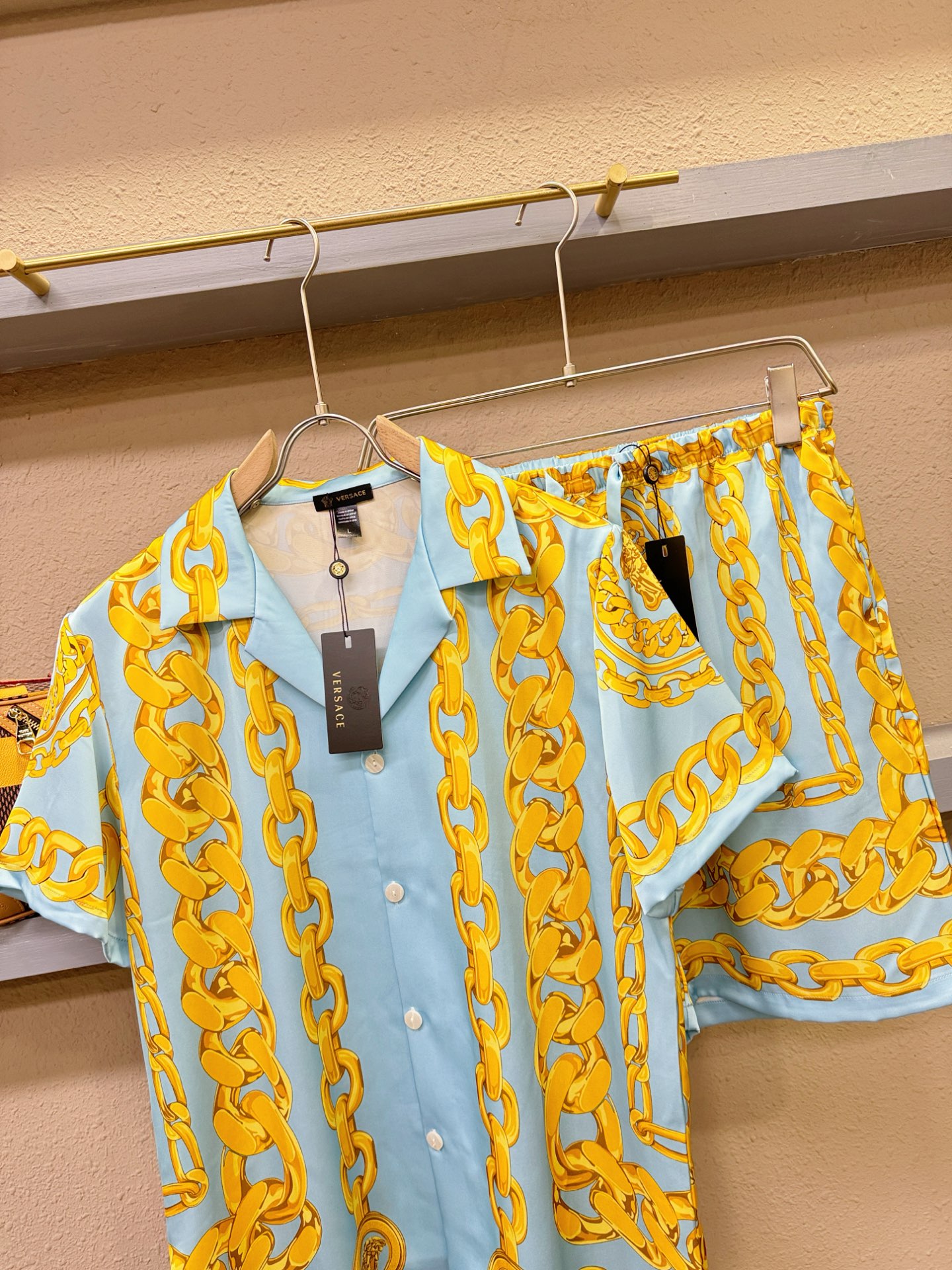 Versace 2025 silk loungewear set. Unisex pajamas with sleek tailoring and urban style. Soft, smooth silk with structured fit. High-end materials for fashion-forward individuals. Sizes M-3XL.