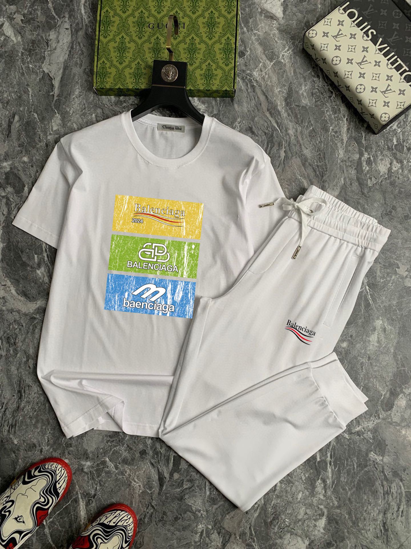 BALENCIAGA men's summer dual-gloss luxury set. Imported fabric, trendy design. Sizes M-5XL (up to 220斤).