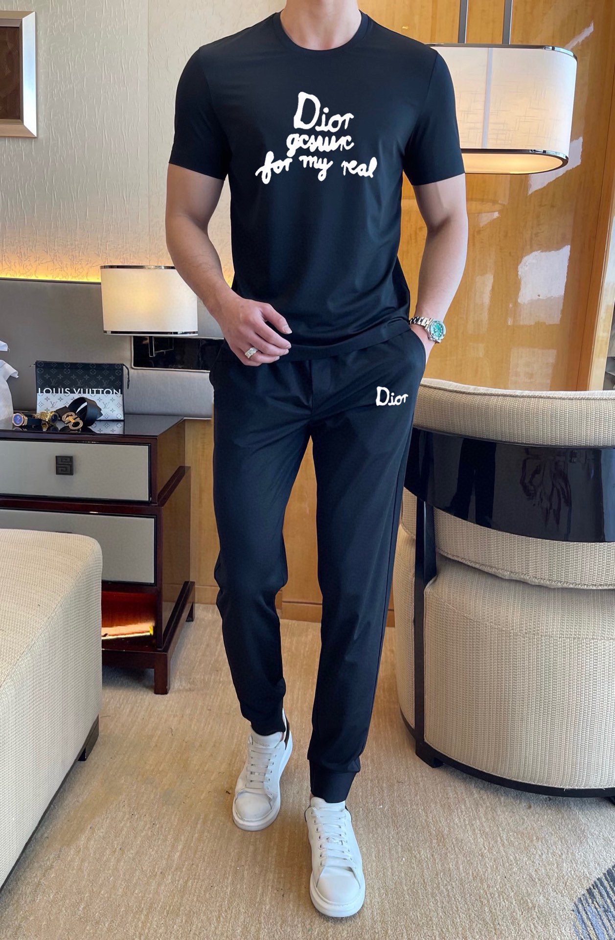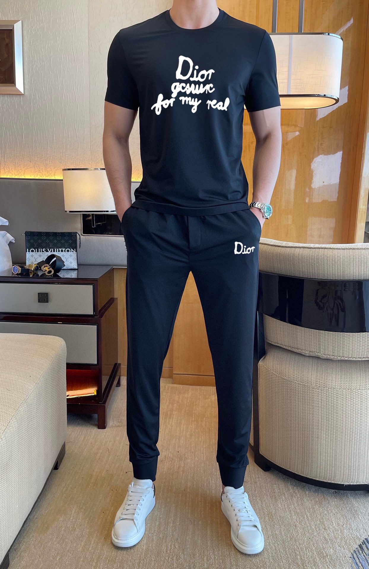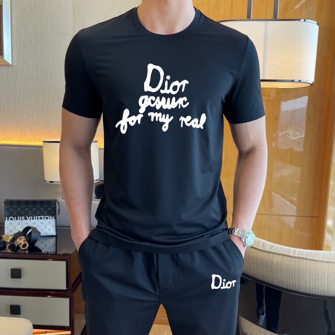 Dior men's summer double mercerized high-quality set. Imported fabric, trendy style. Sizes M-5XL (up to 220斤).