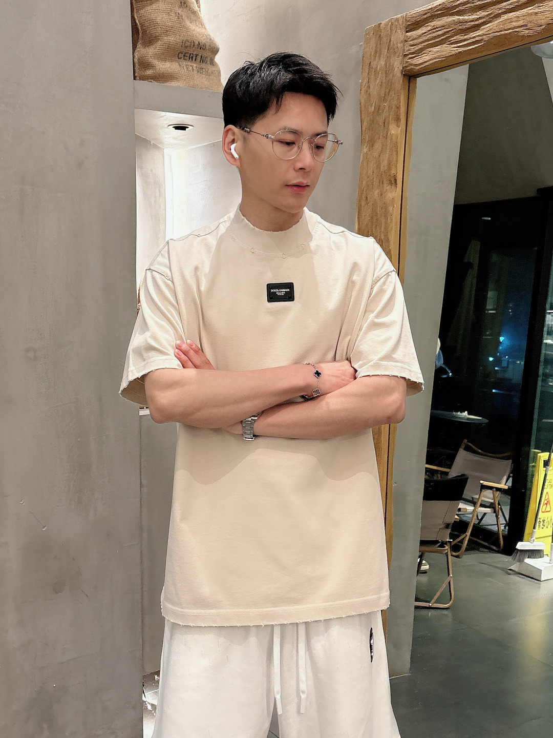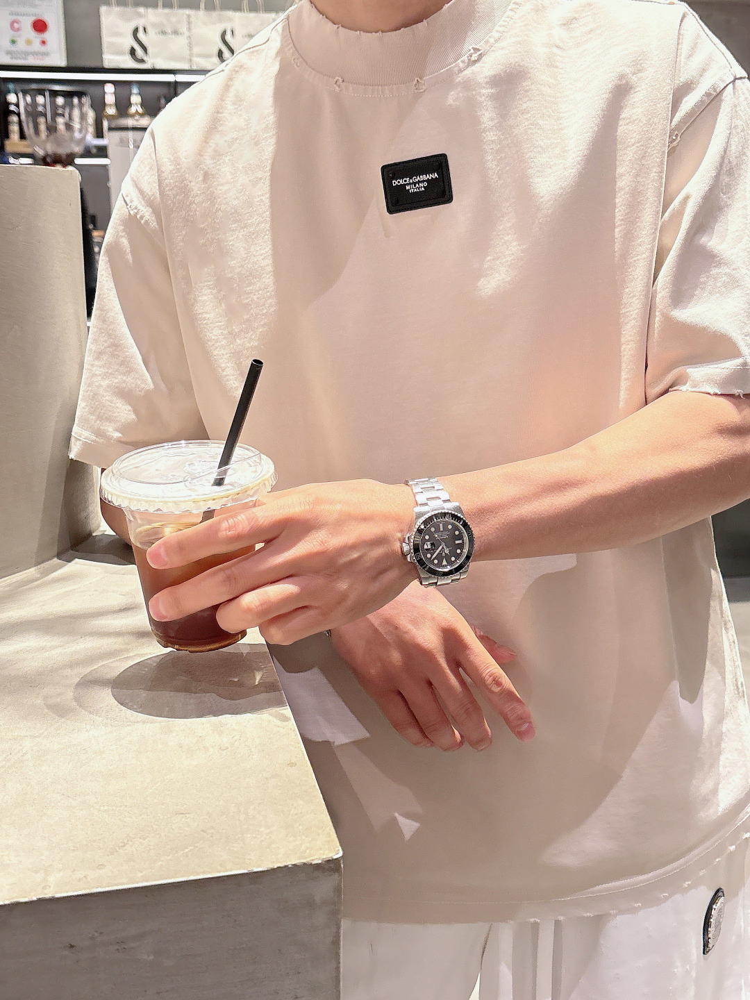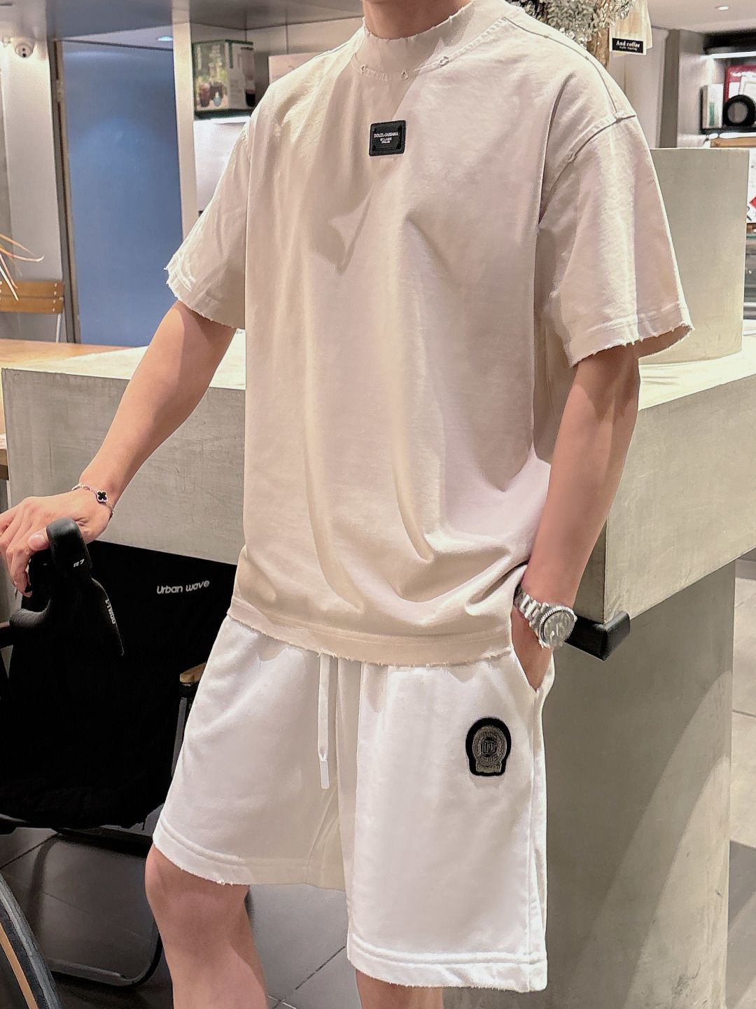 Dolce & Gabbana 2025 set new wash distressed. Short sleeve T-shirt & shorts. Colors: Paris Grey, Beige, Black, Green. Sizes: M-3XL (top), 29-38 (shorts).