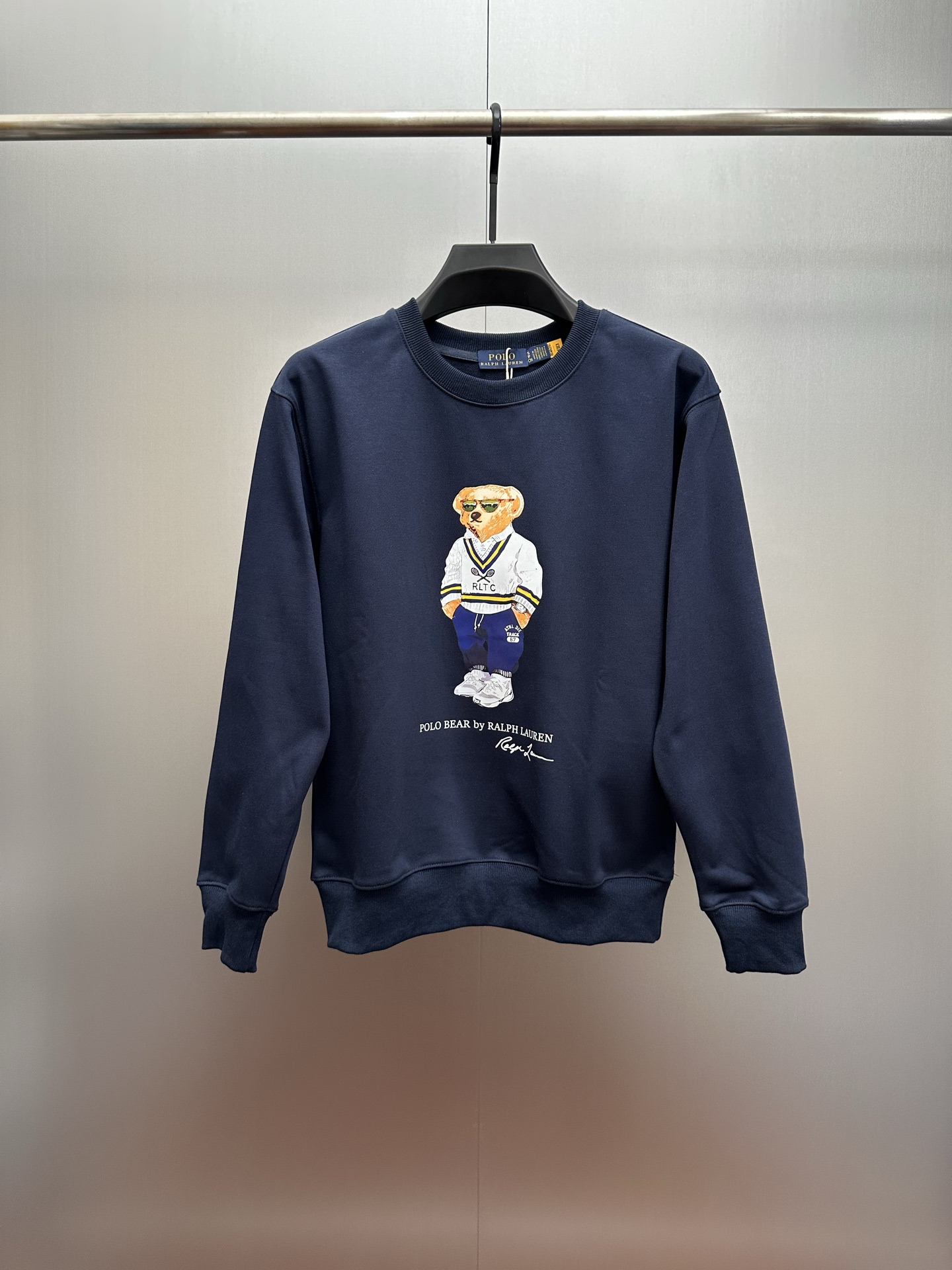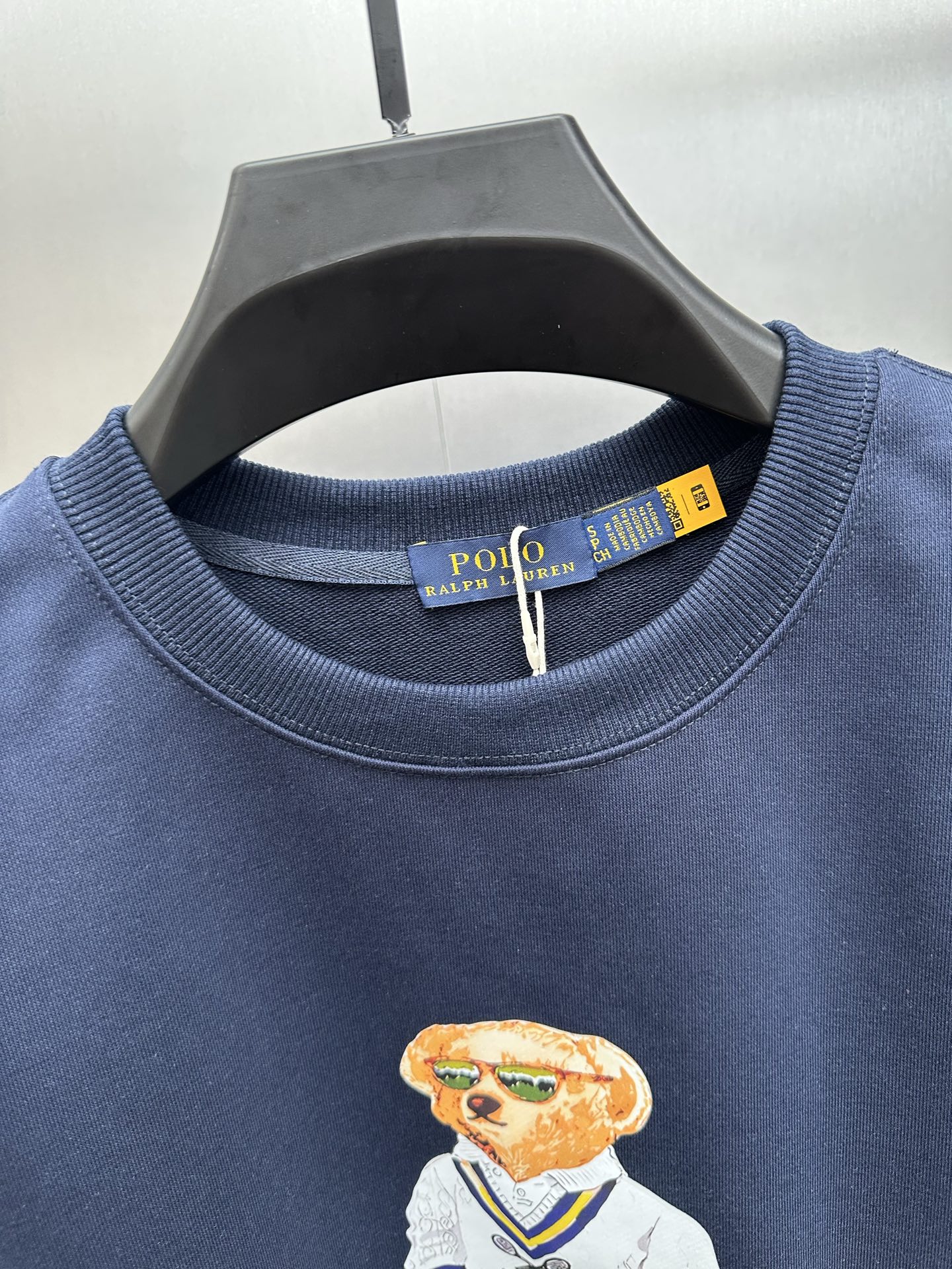 Ralph Lauren 2025 Fall/Winter Bear Print Sweatshirt. 60% cotton, 40% polyester. Soft, breathable, wrinkle-resistant. Unisex.