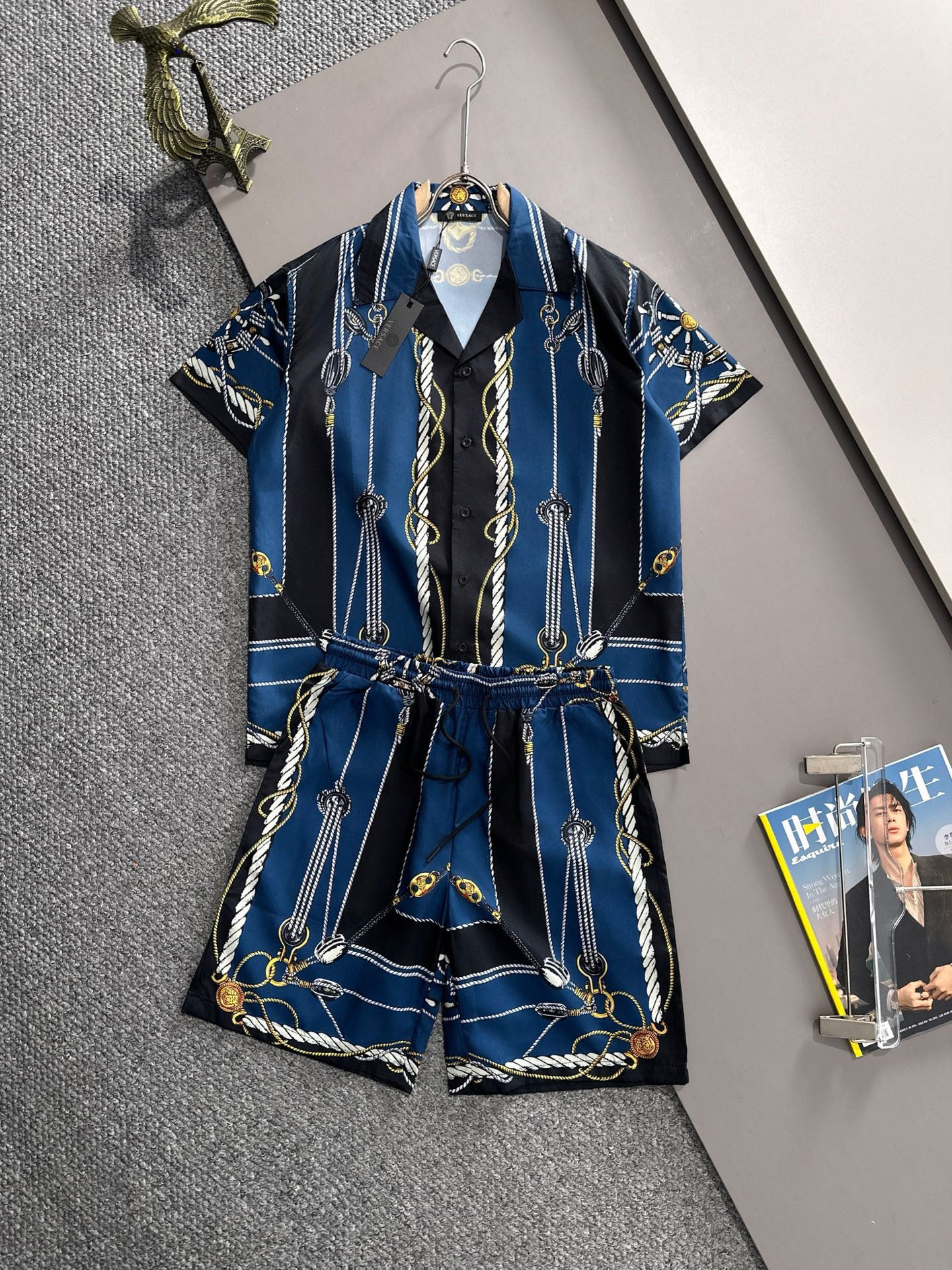 Home • Apparel • Suit • Versace 2025 summer classic logo print set. Lightweight cotton digital print, polyester fabric. Breathable mesh lining in pants, standard fit. Unisex sizes M-3XL.