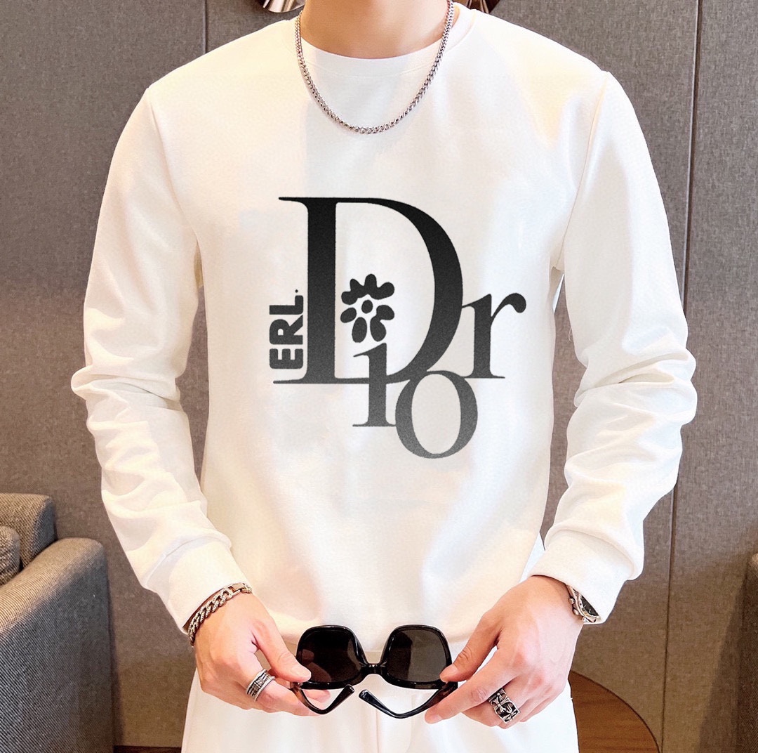 DIOR hoodie set with premium Roman cotton. M-5XL sizes, fits up to 220斤. Focus on perfect fit and elegant design.