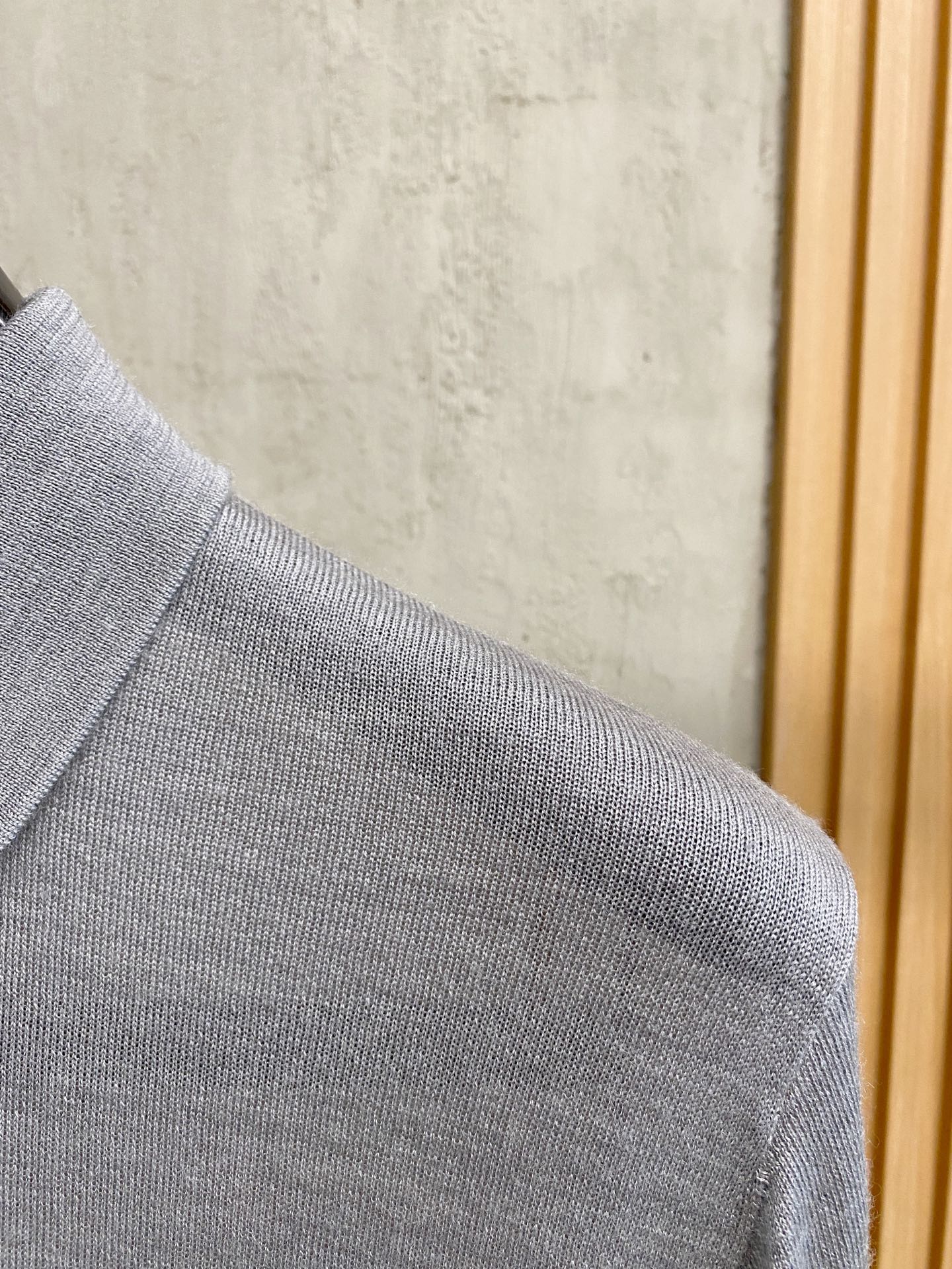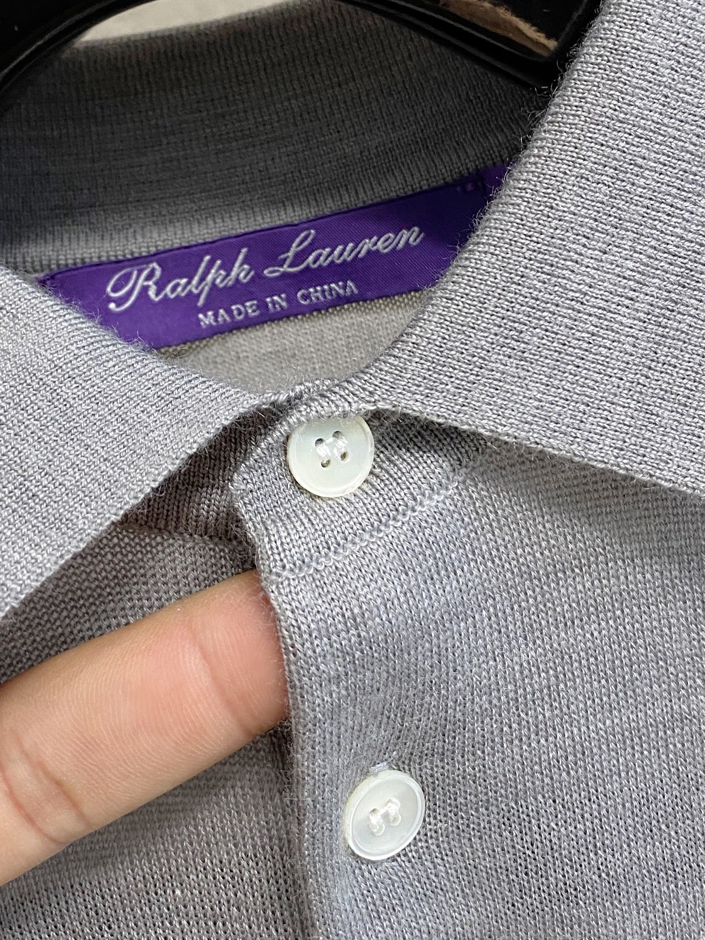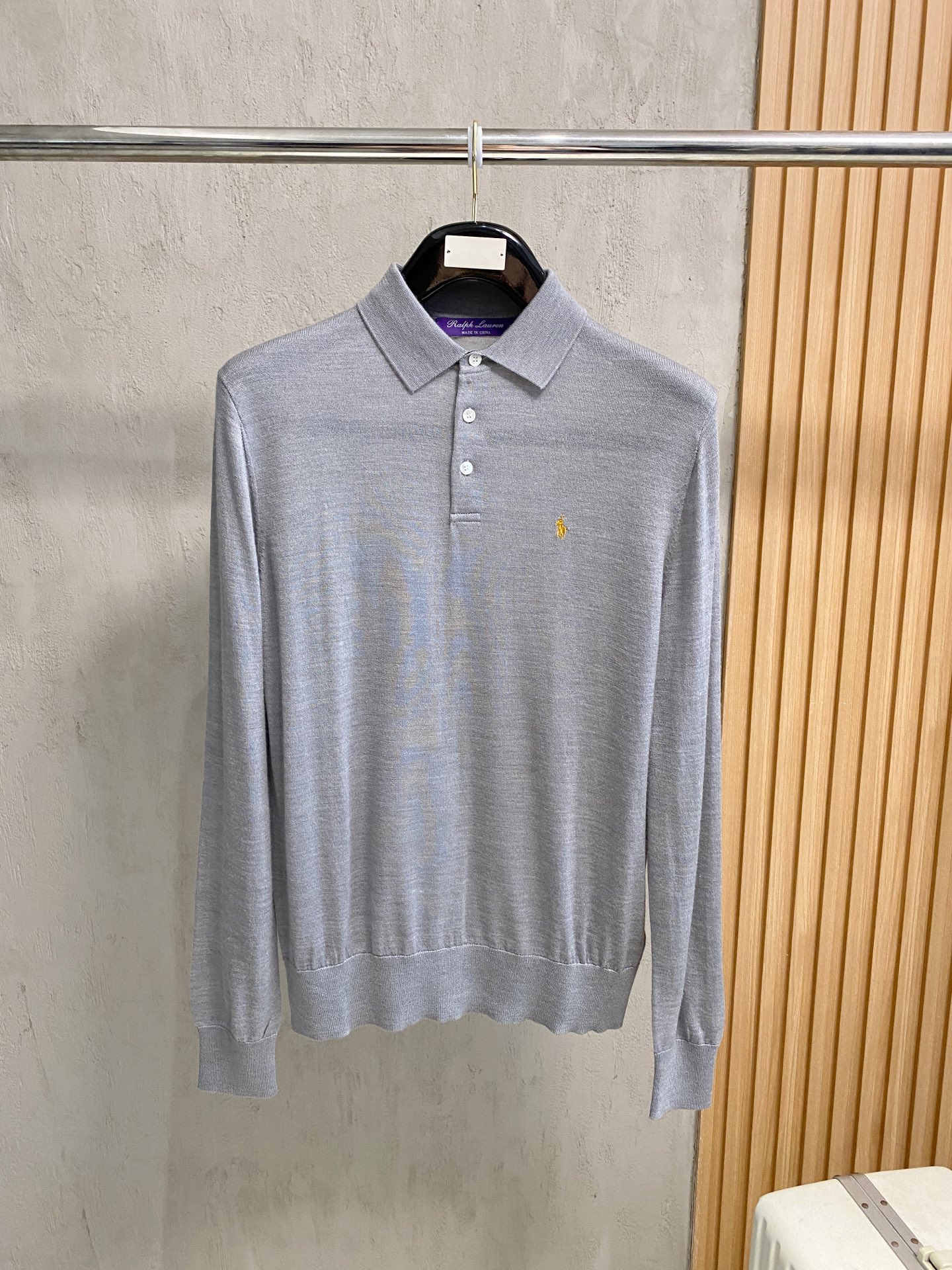 Ralph Lauren 25FW silk-wool blend knit sweater. Men's single-button turnip collar design. Lightweight, soft, warm. Sizes 48-56.