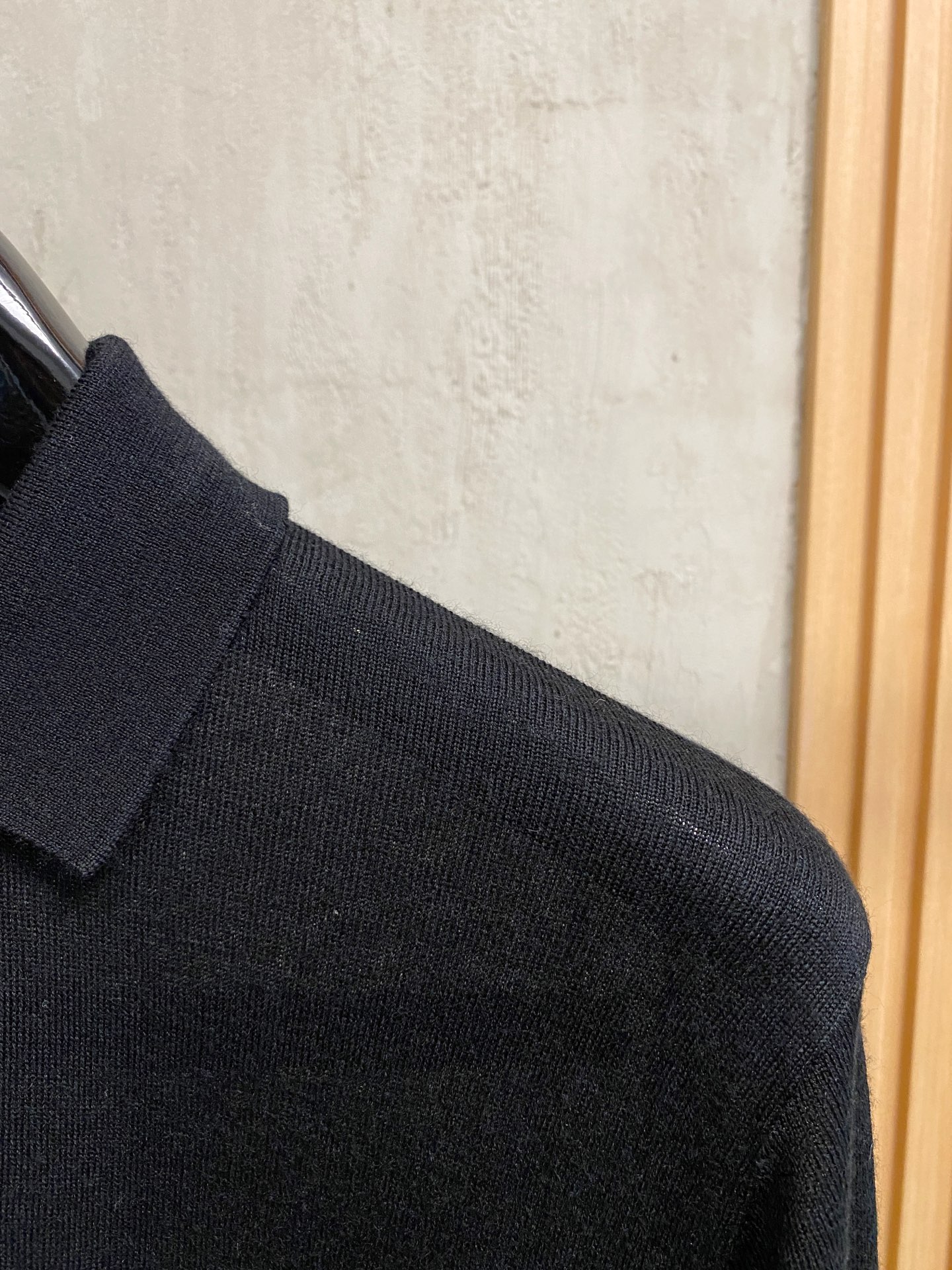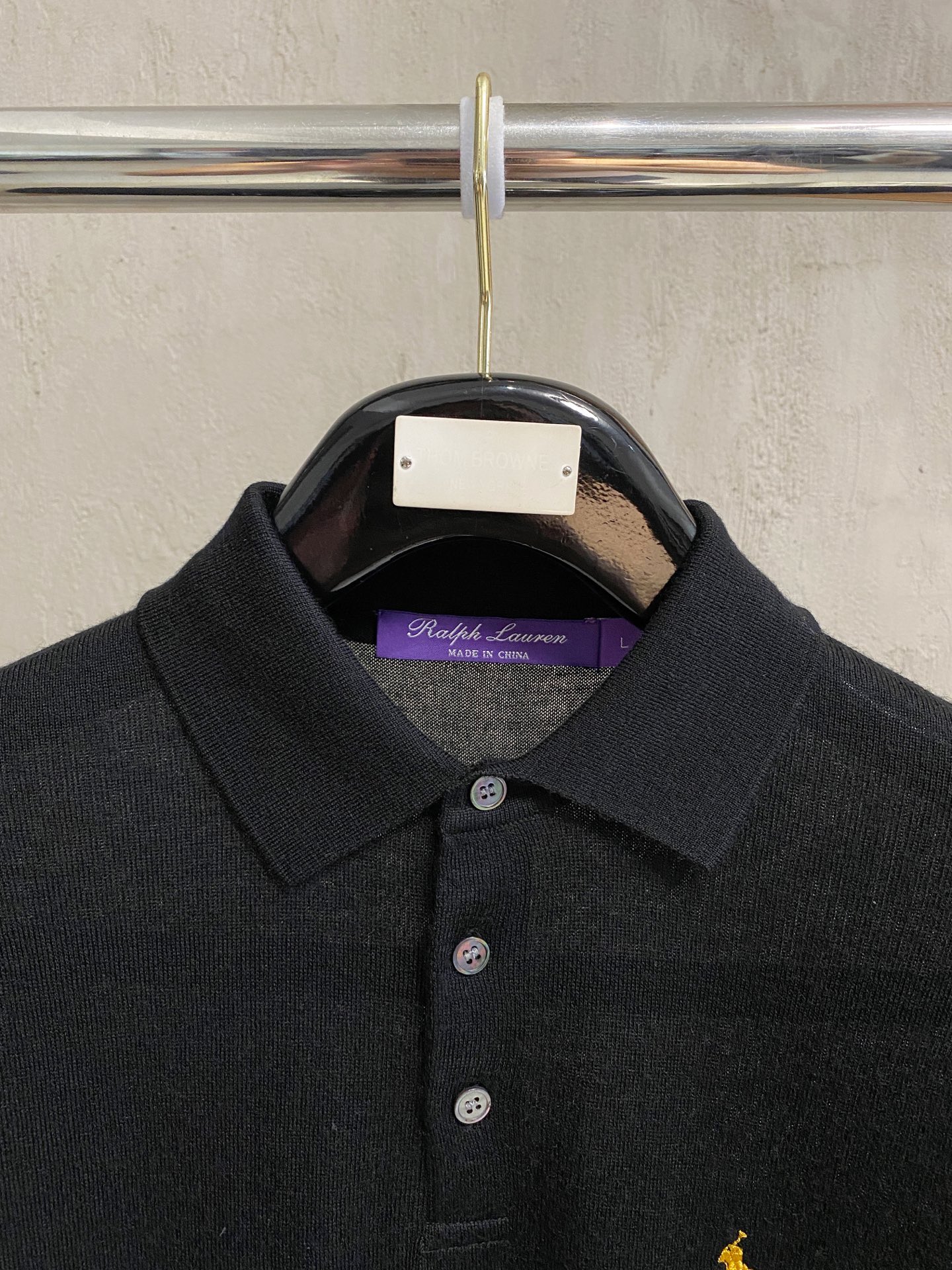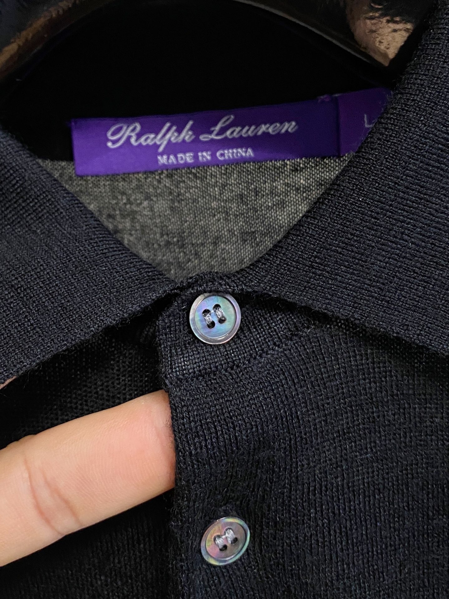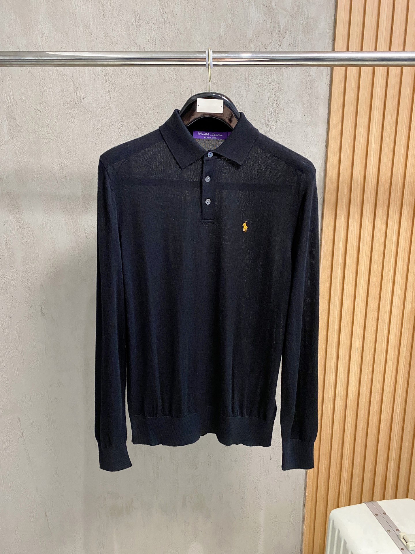 Ralph Lauren 25FW silk-wool blend knit sweater. Men's single-button turnip collar design. Lightweight, soft, warm. Sizes 48-56.