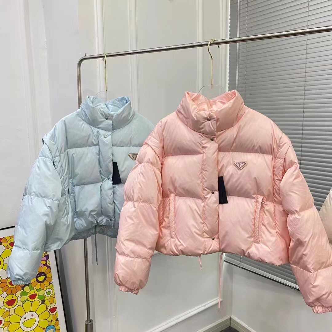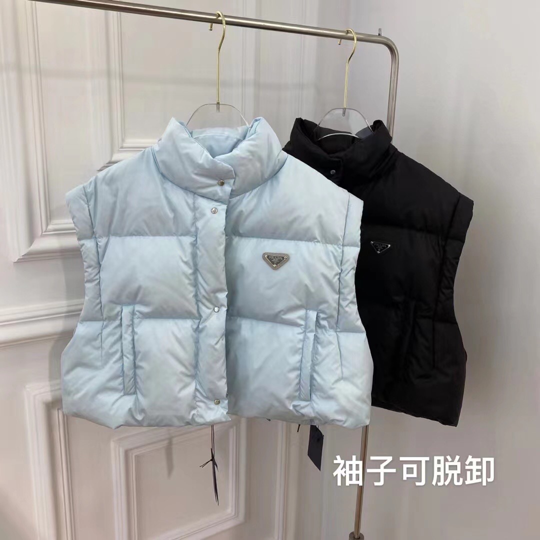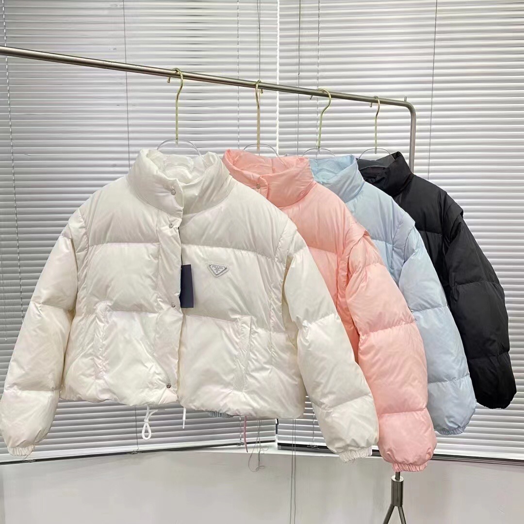 380 Top Foreign Trade Prada Detachable Sleeve Down Jacket Women's Winter Clothing