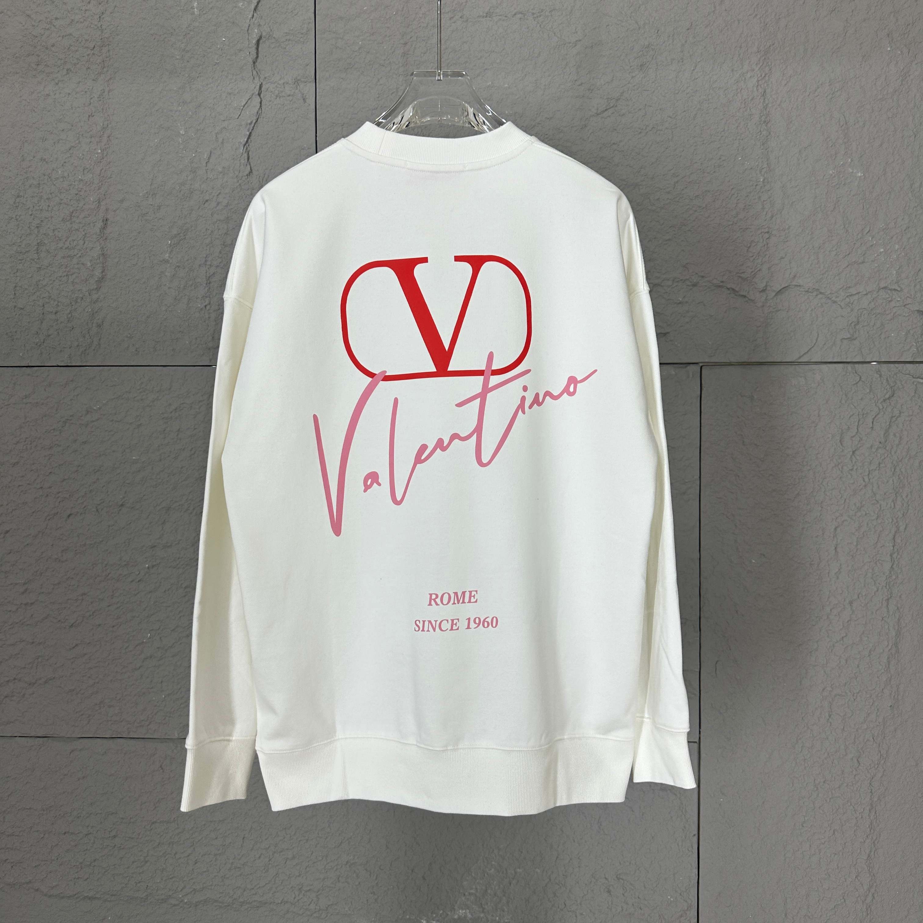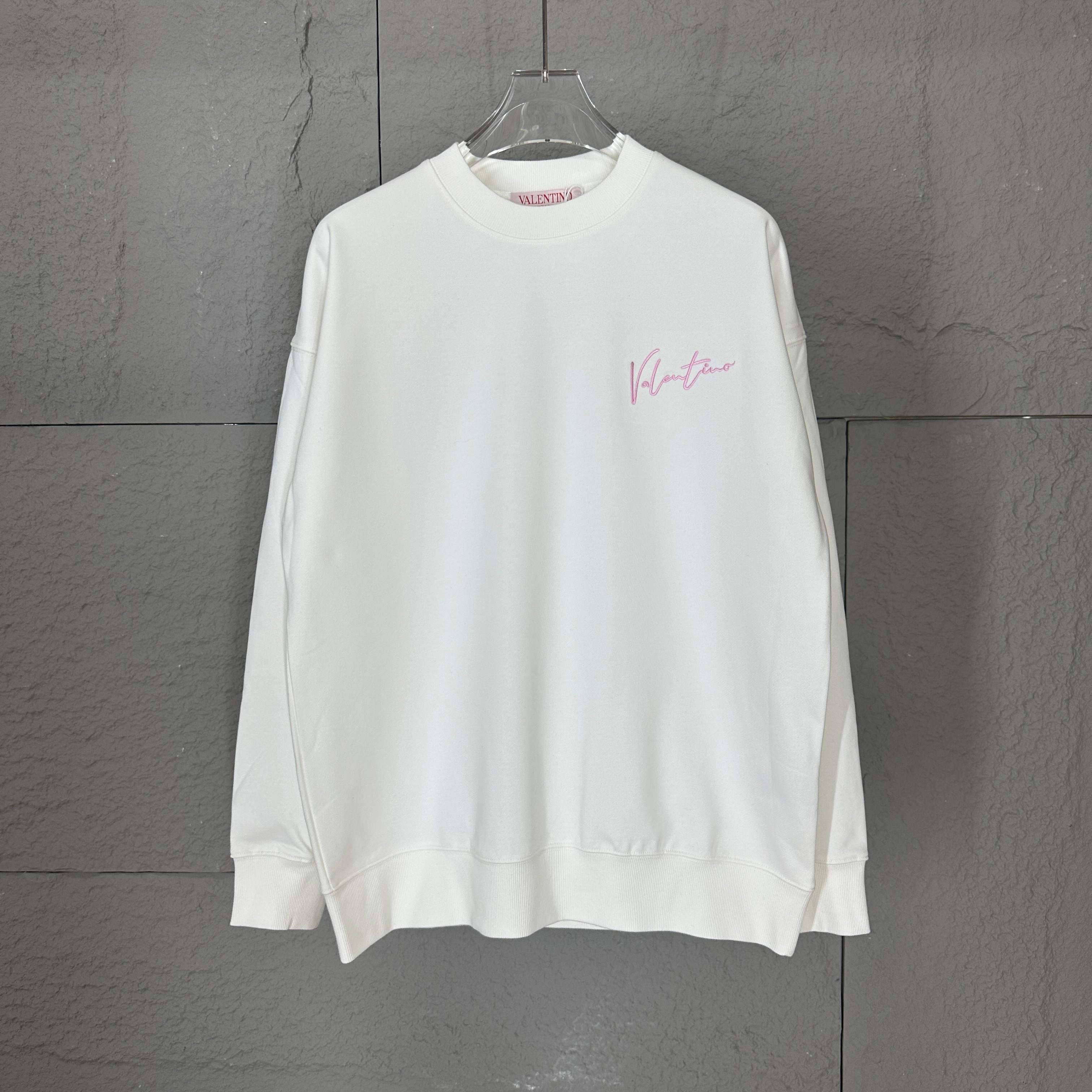 Valentino 2025 Spring/Summer New Arrival Classic Pink Embroidered Letter Pattern Print Custom Terry Fabric Long-Sleeved Hoodie Unisex