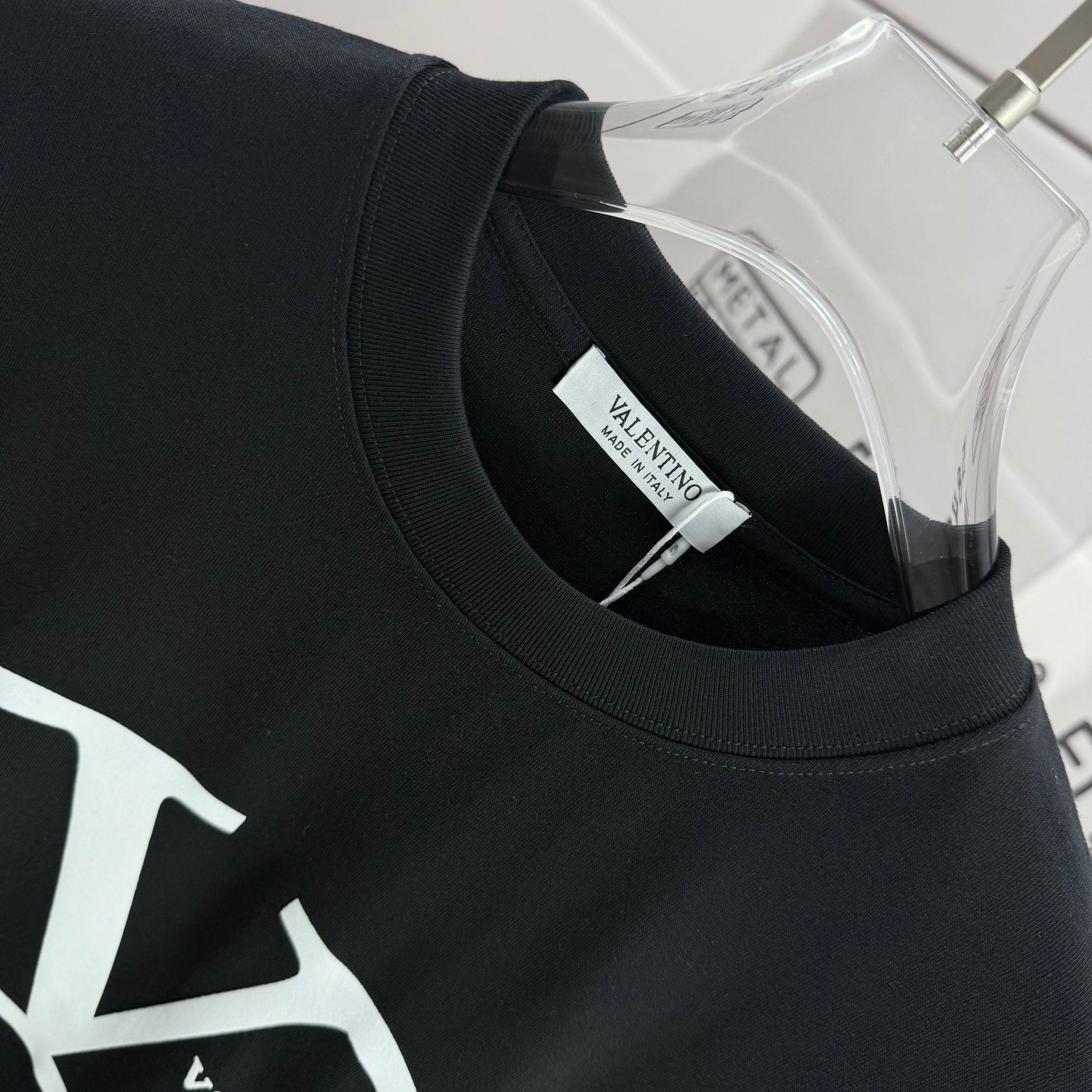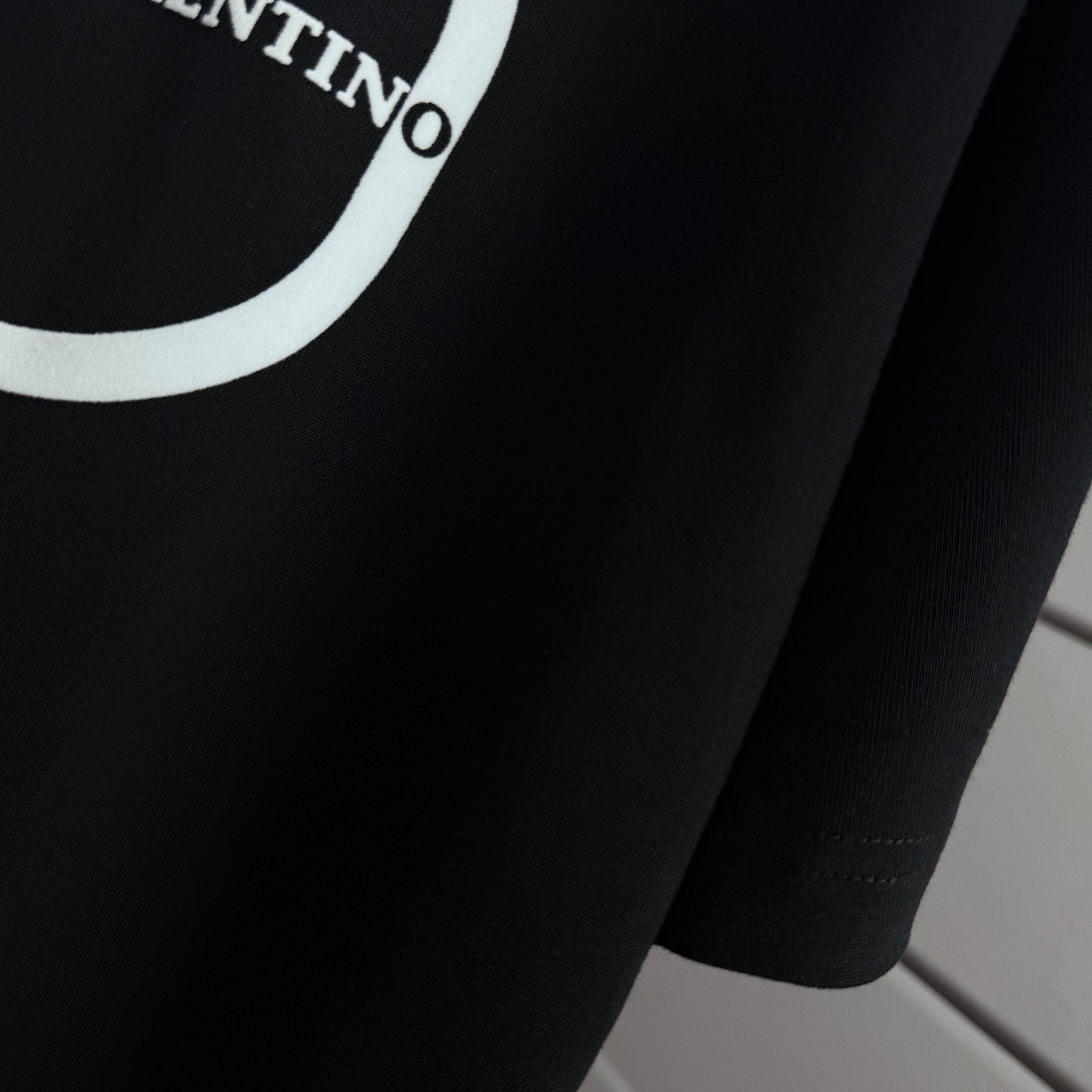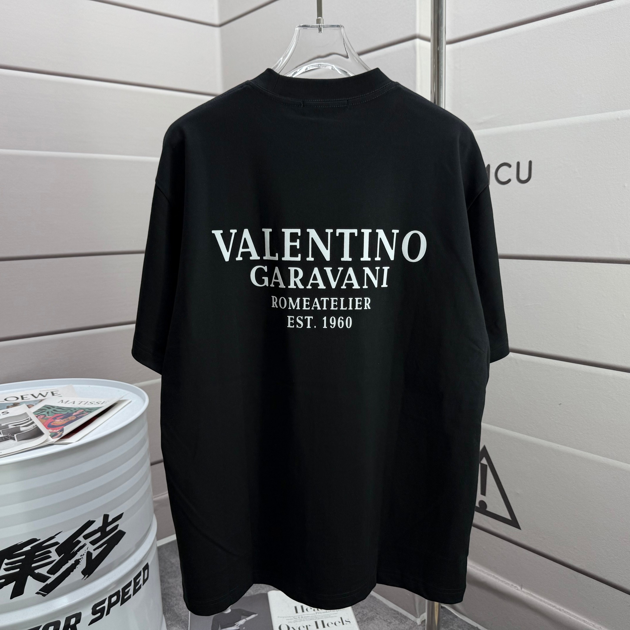 Valentino 2025 Spring/Summer New Arrival Classic Flocking Craft Custom Double Yarn Plain Weave Pure Cotton Fabric Short-Sleeve T-Shirt Unisex