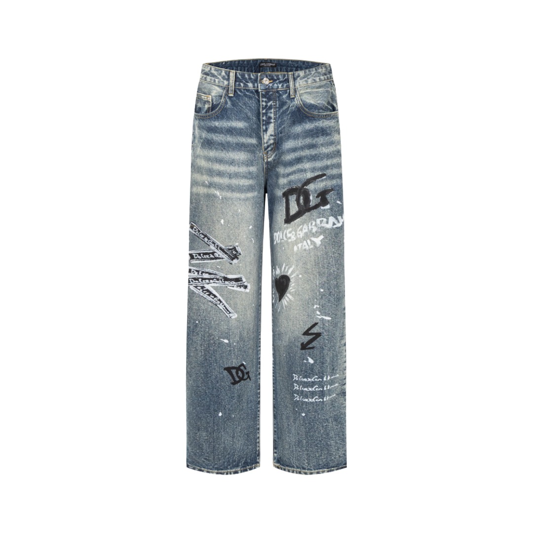 DG exclusive pattern development Graffiti craftsmanship Custom series Heavy-duty wash colors Pure handmade manual painting Craft customization Hardware 1:1 restoration Loose fit Must-have style for trendsetters High quality Exclusive supply