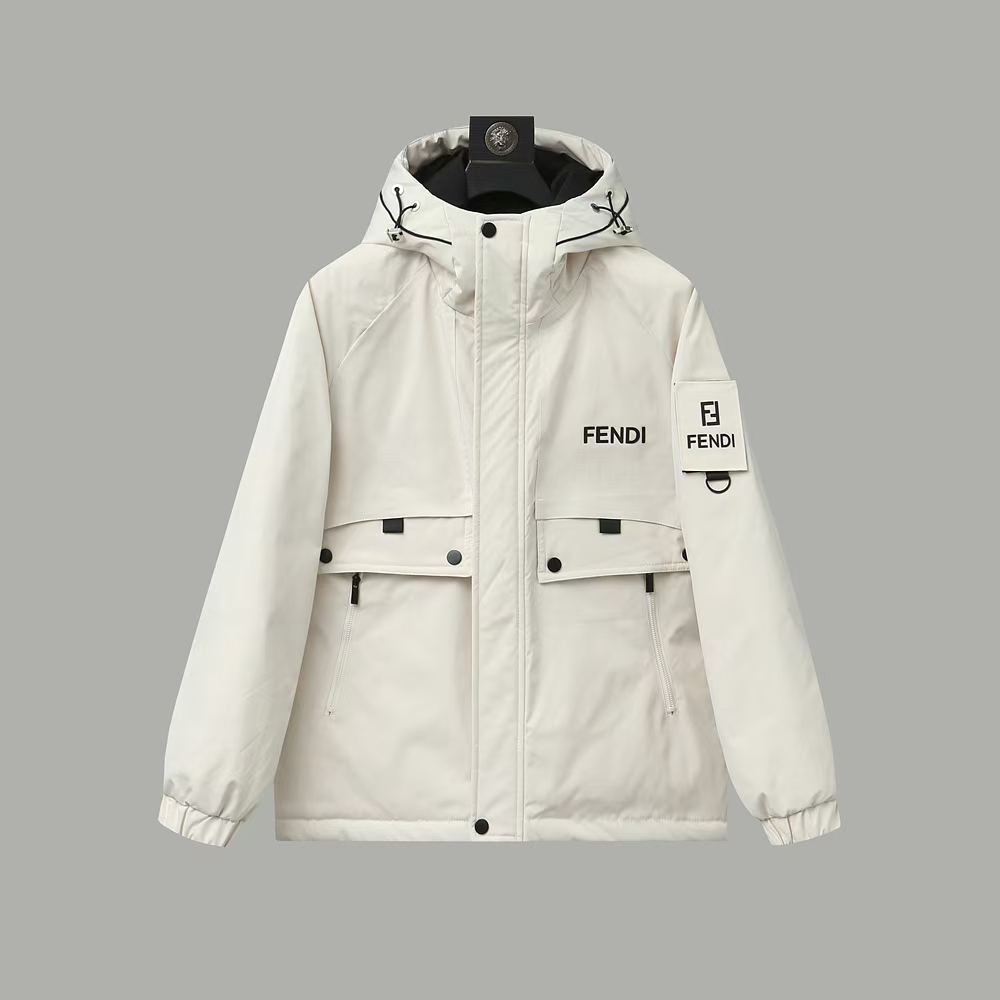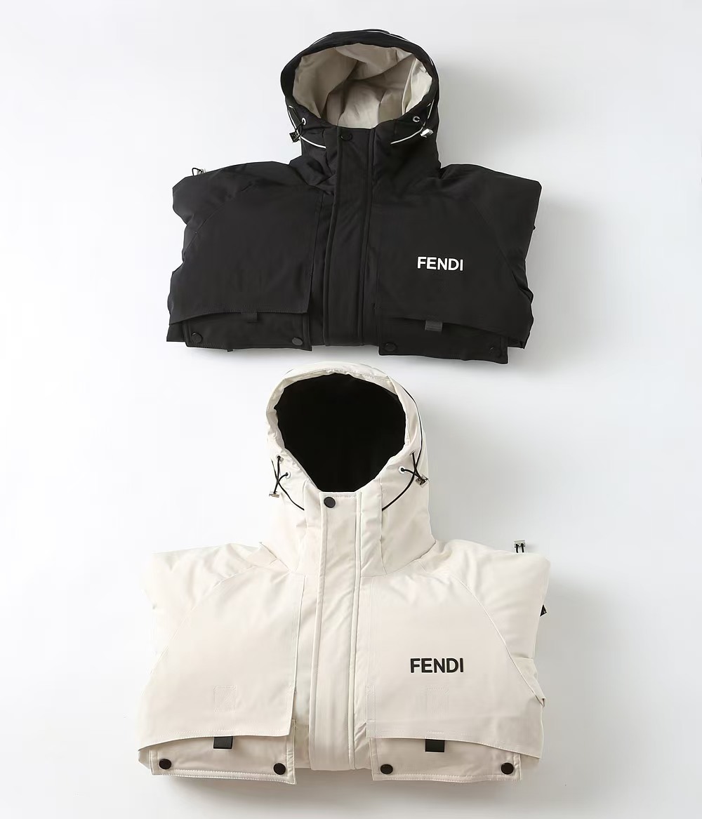 Fendi "Official Website Same Style Letter Patch Pocket" Hooded Down Jacket