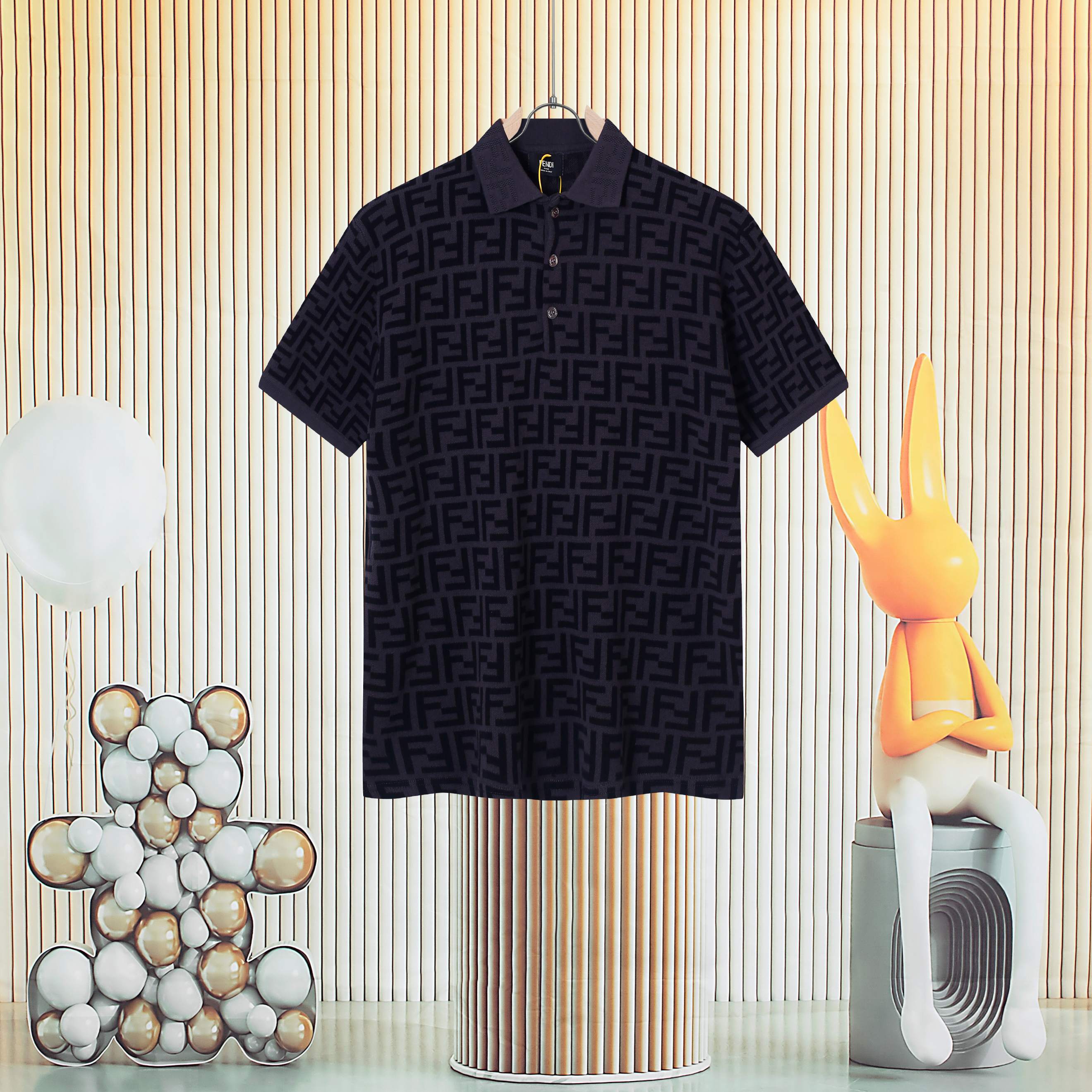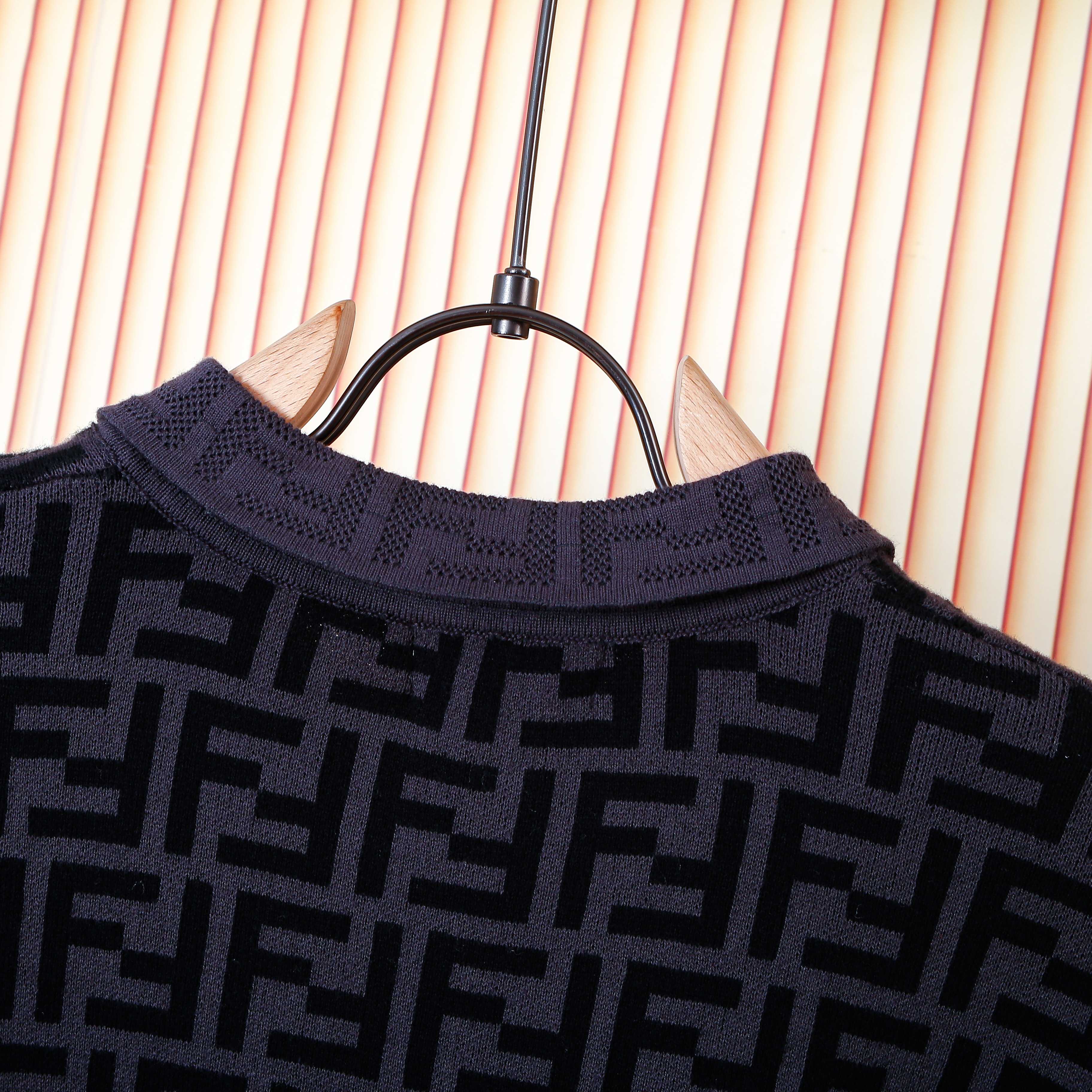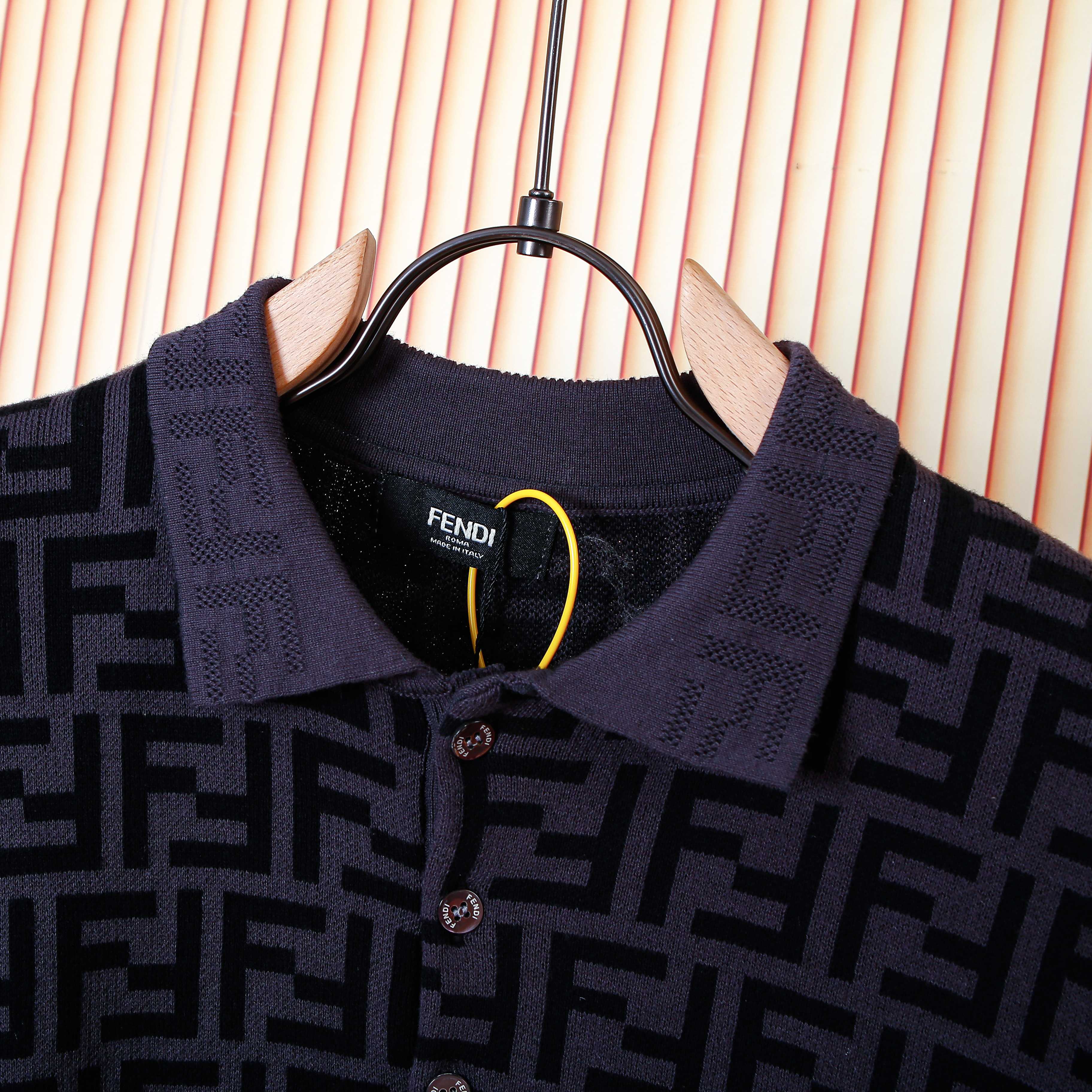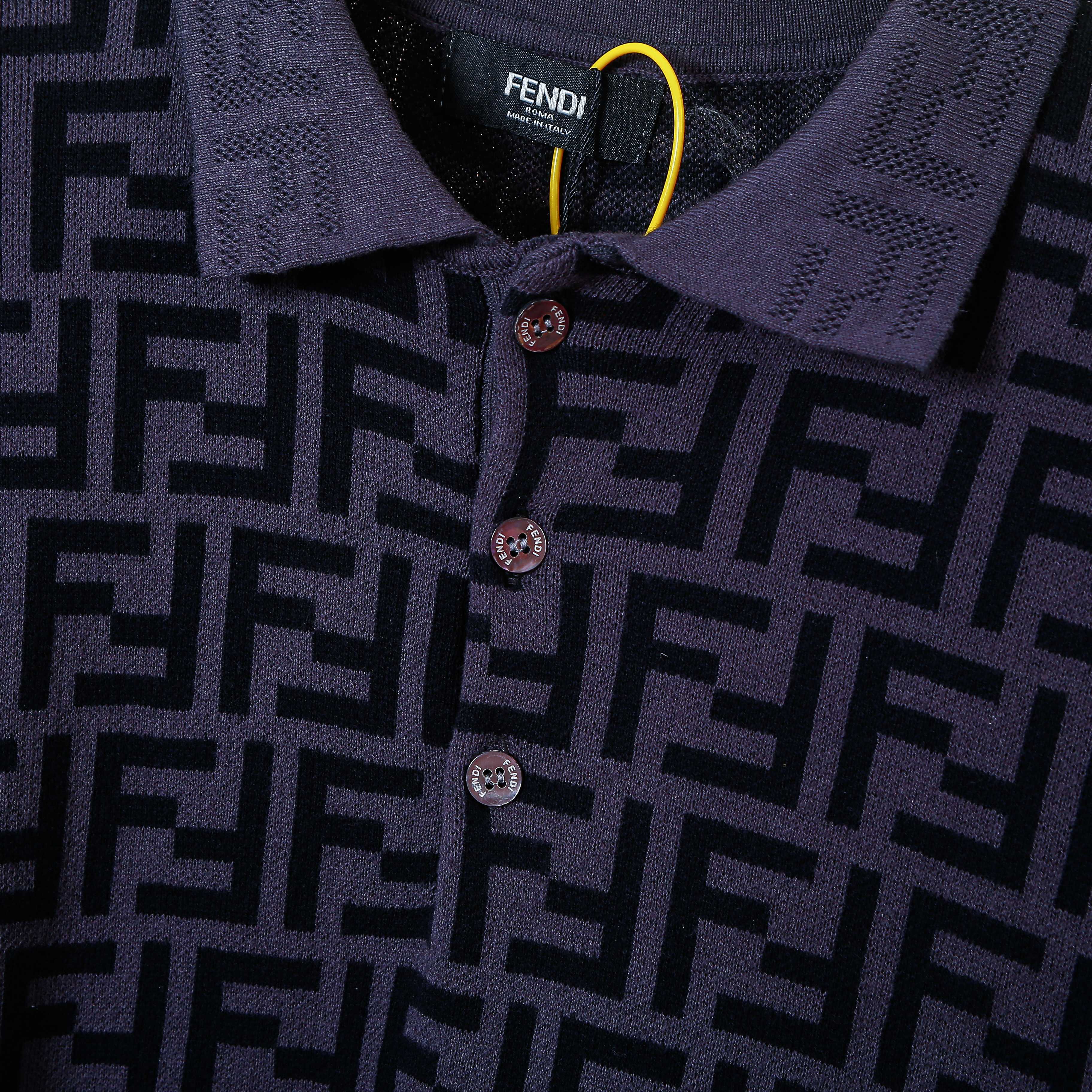 FENDI Classic LOGO Embroidered Jacquard Knitted Polo Shirt