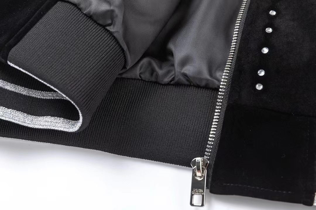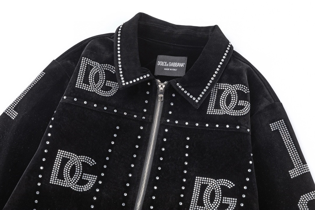 Ordered the original version for mold opening, finally shipped after a month, absolutely love it. Wearing it looks super handsome. A certain Douyin blogger mentioned that this year's new D&G release will become a future trend. Just casually browse street photos and you'll notice celebrities treating it as a collector-grade jacket, a must-have unisex lightweight luxury commuter item. Developed the highest version available online, took 1 month to customize with extremely high costs. German imported flat-knitting machine custom-woven wool jacquard ribbing, using imported lambskin top-grain leather, with unbeatable crinkle texture and feel. Hand-cut, finely crafted, the leather panel placement requires great technical skill—the overall look of the garment depends on this detail. Top-tier workmanship, details stand up to scrutiny. Custom full set of accessories, letters are clear and perfectly replicated without difference. High-end, luxurious, full of class! The entire garment is exclusively custom-made with heavy craftsmanship, combining towel patch embroidery and craft embroidery perfectly, precise stitching! Absolutely heavy craftsmanship quality!