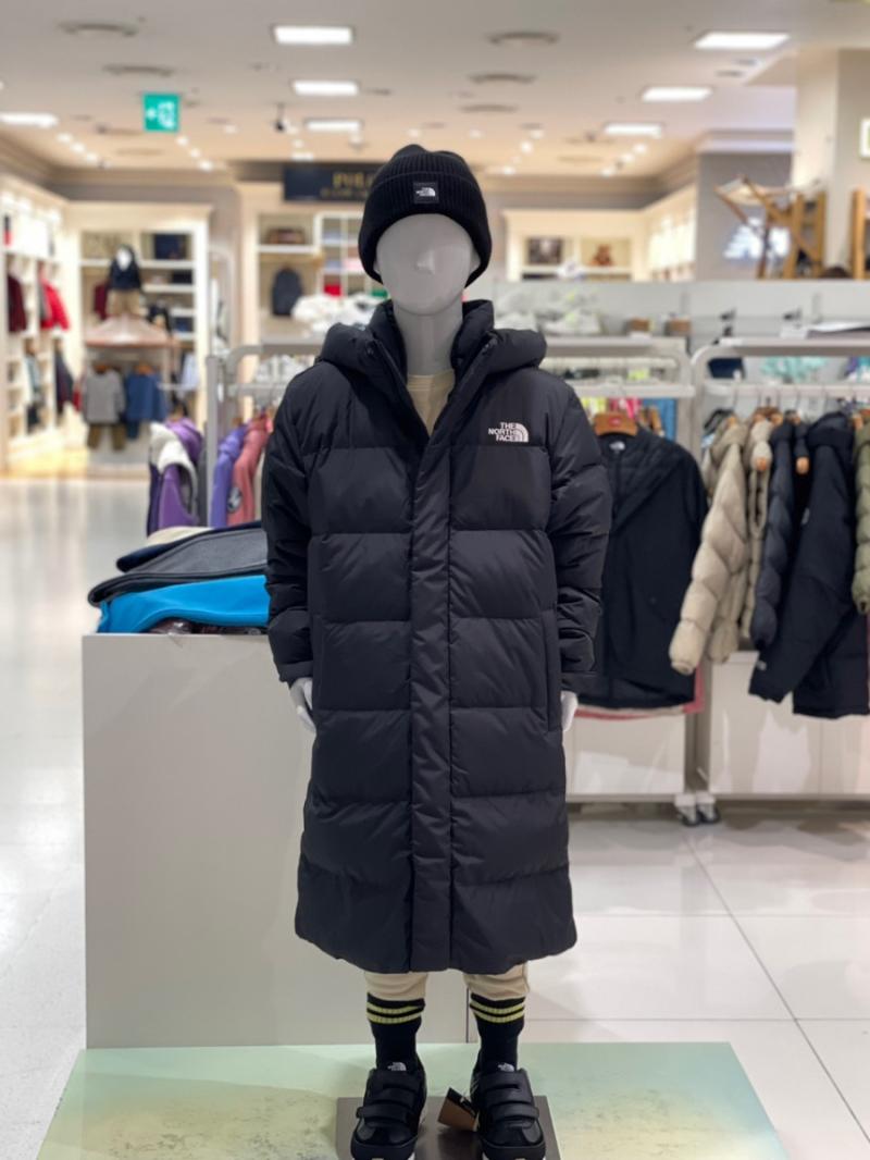 Guangzhou high-version North Face kids long down jacket with embroidered logo.