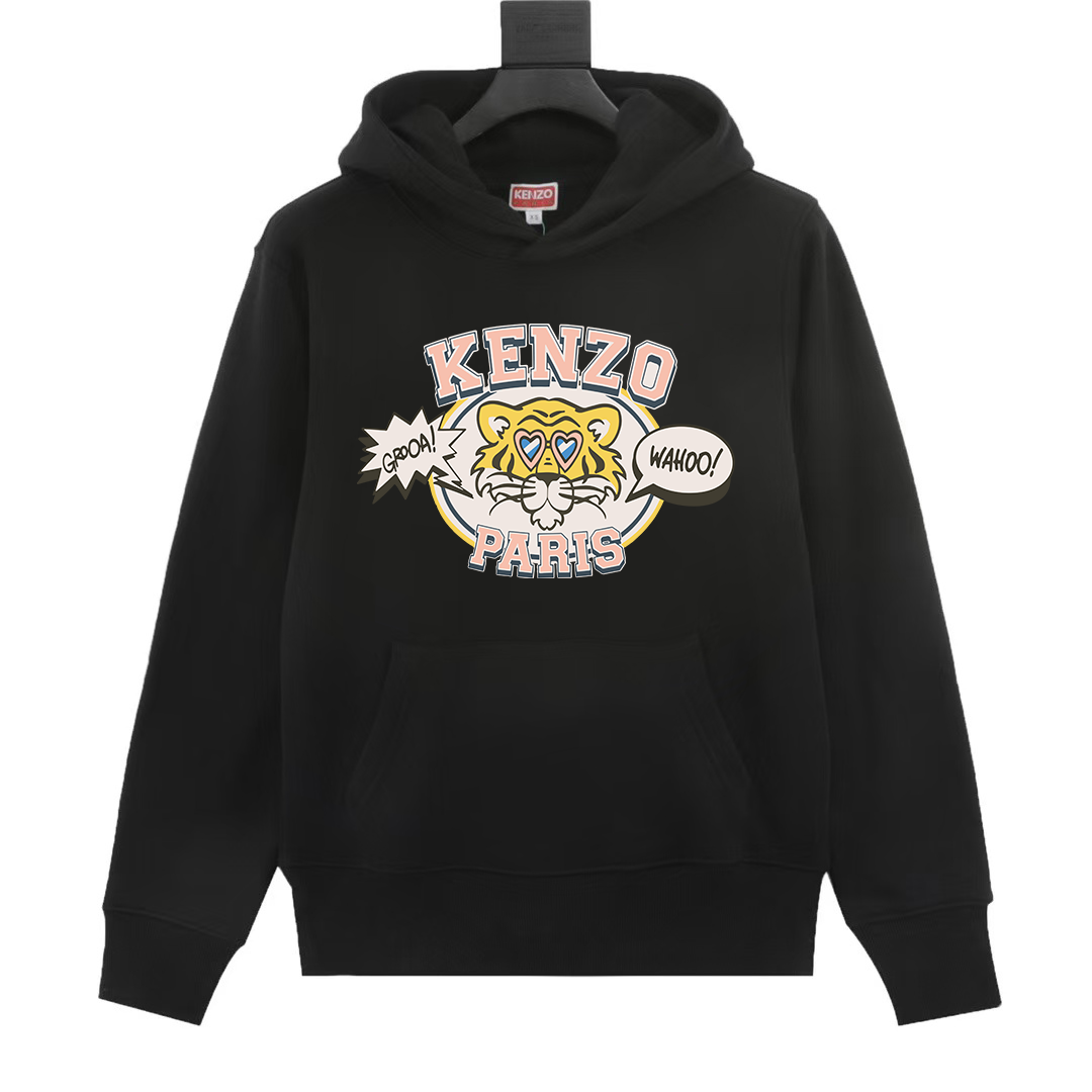 KENZO new print hoodie, 420g terry. Colors: Black, Gray. Sizes: XS-L.
