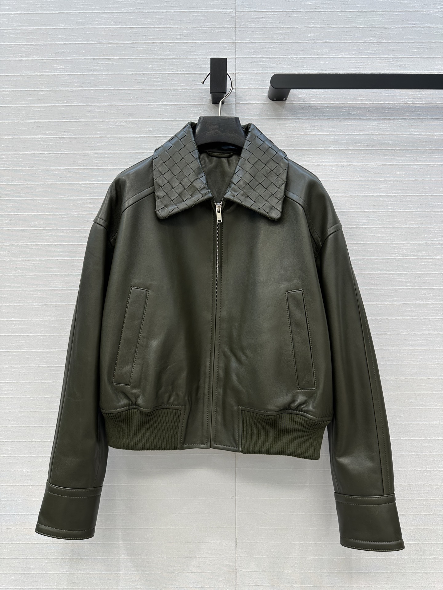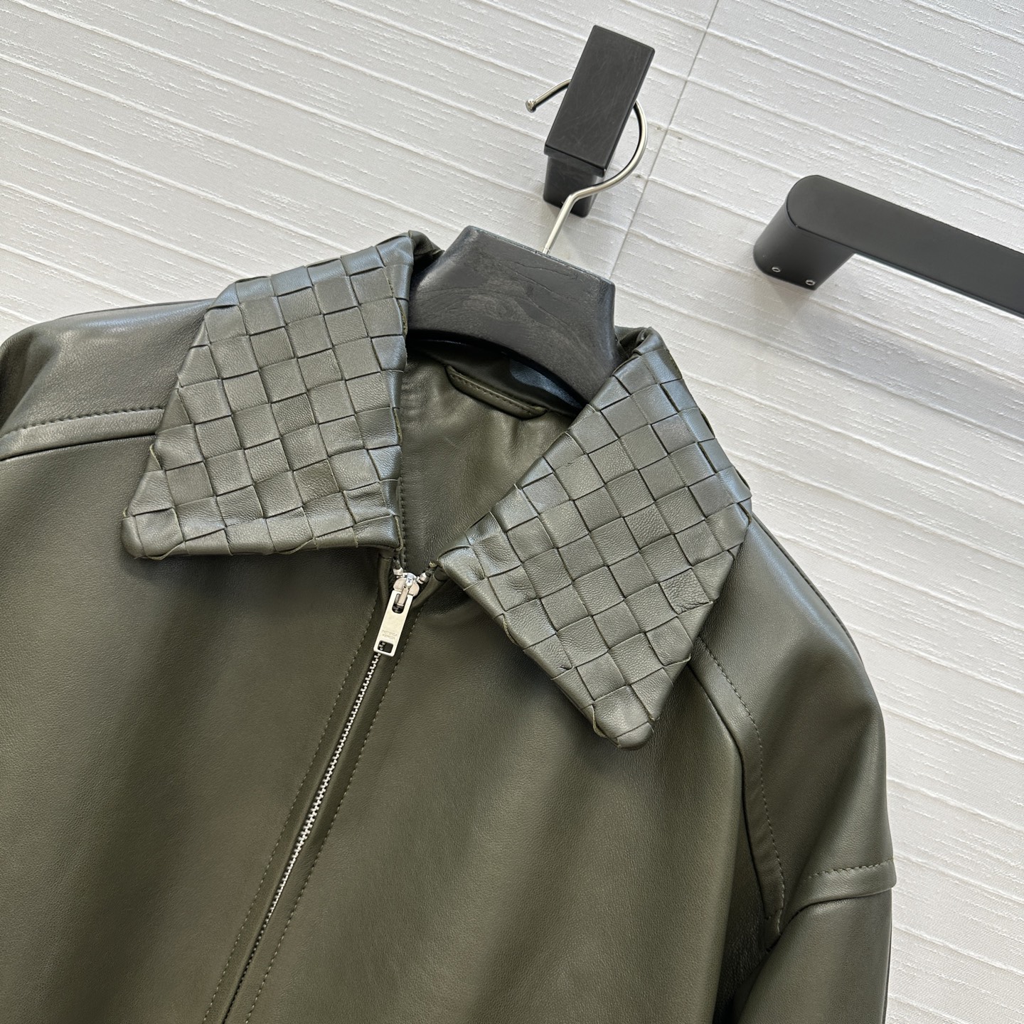 Exclusive First Release: High-End Original Quality, BV25 New Retro Modern Fashion Must-Have Leather Jacket! Woven Lapel Motorcycle Style Jacket Outerwear! Imported 100% Lamb Leather Craftsmanship, Textured, Oily, Soft, and Fine! Unisex Retro American Academic Style Classic Design, Super Loved! Custom Plaid Lining Patchwork Design, Both Edgy and Casual Lazy Style, Two Colors S-L Size. Size 36, Dropped Shoulders, Bust 110, Length 53.