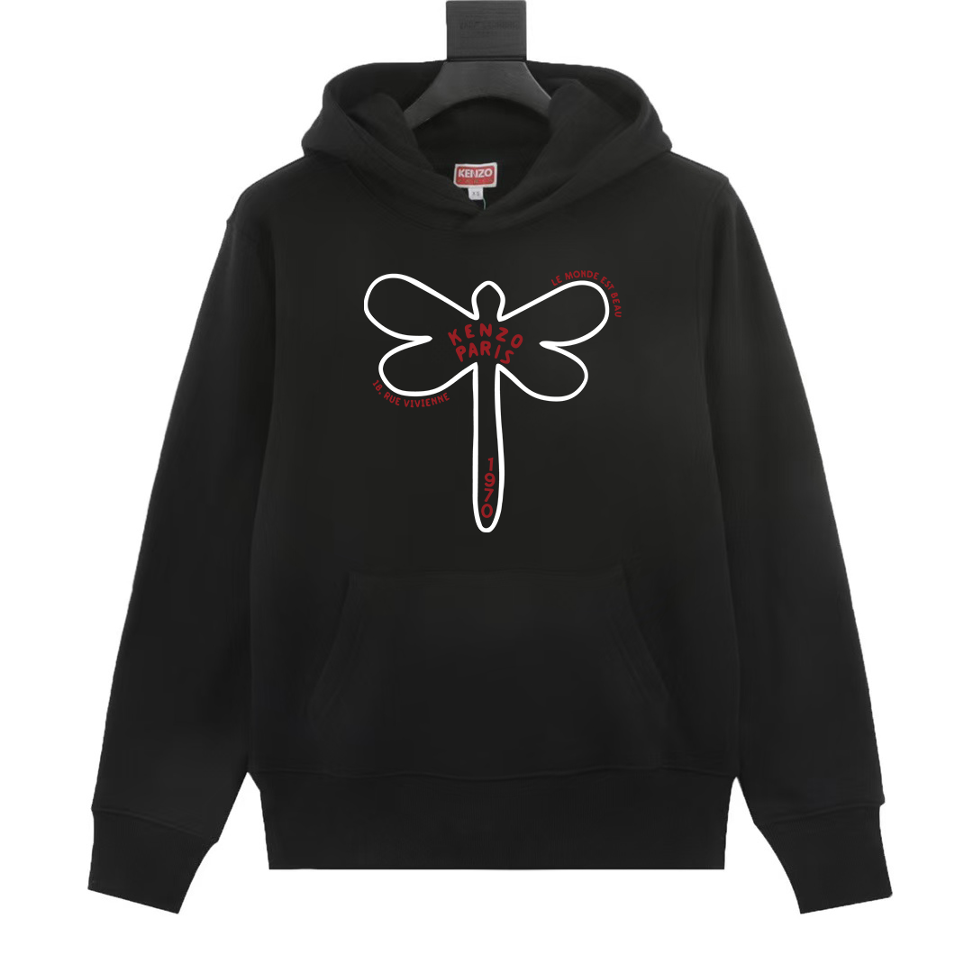 KENZO new print hoodie, 420g terry. Colors: Black, Gray. Sizes: XS-L.
