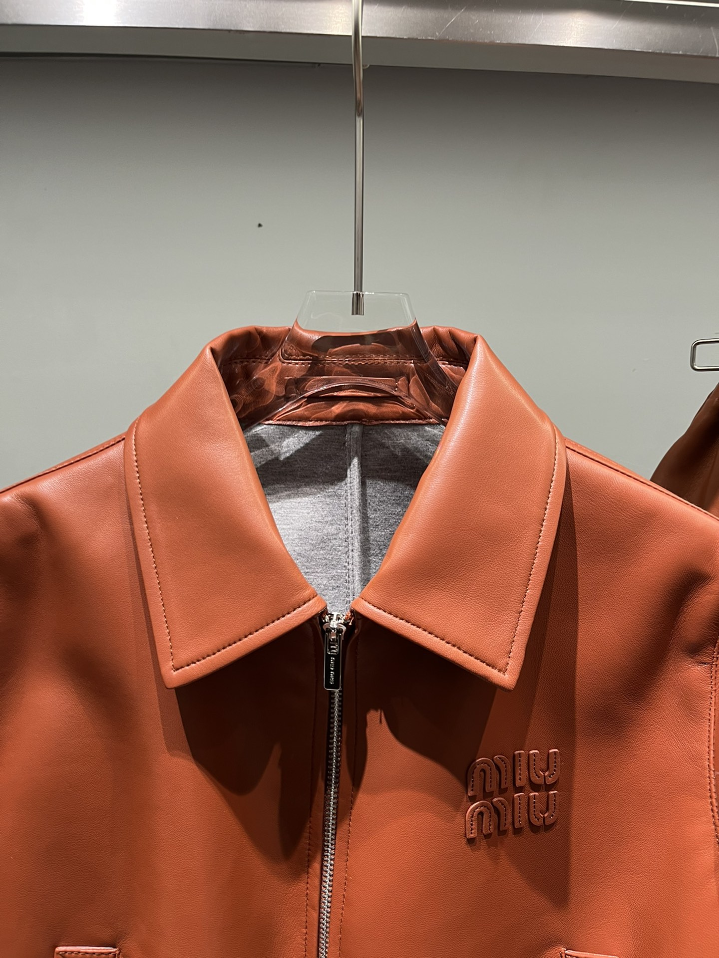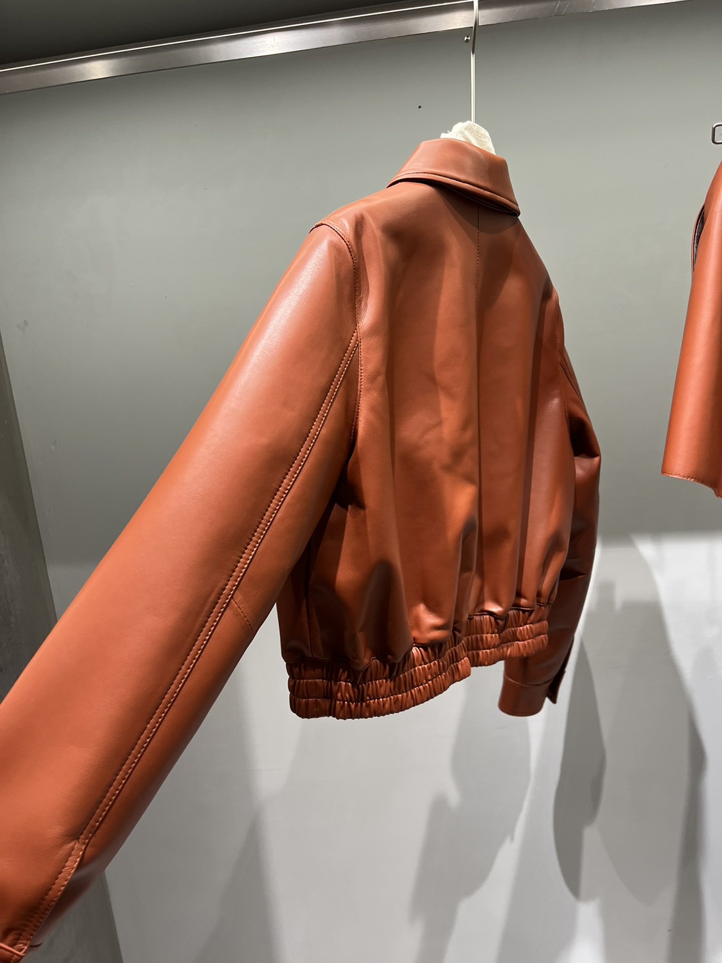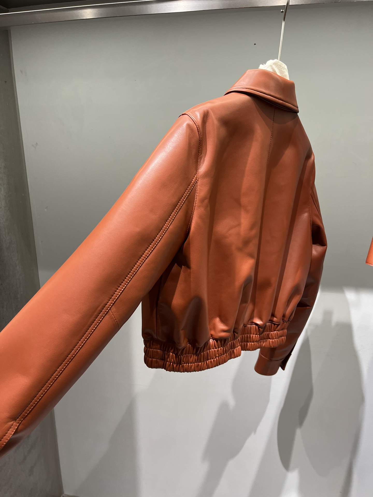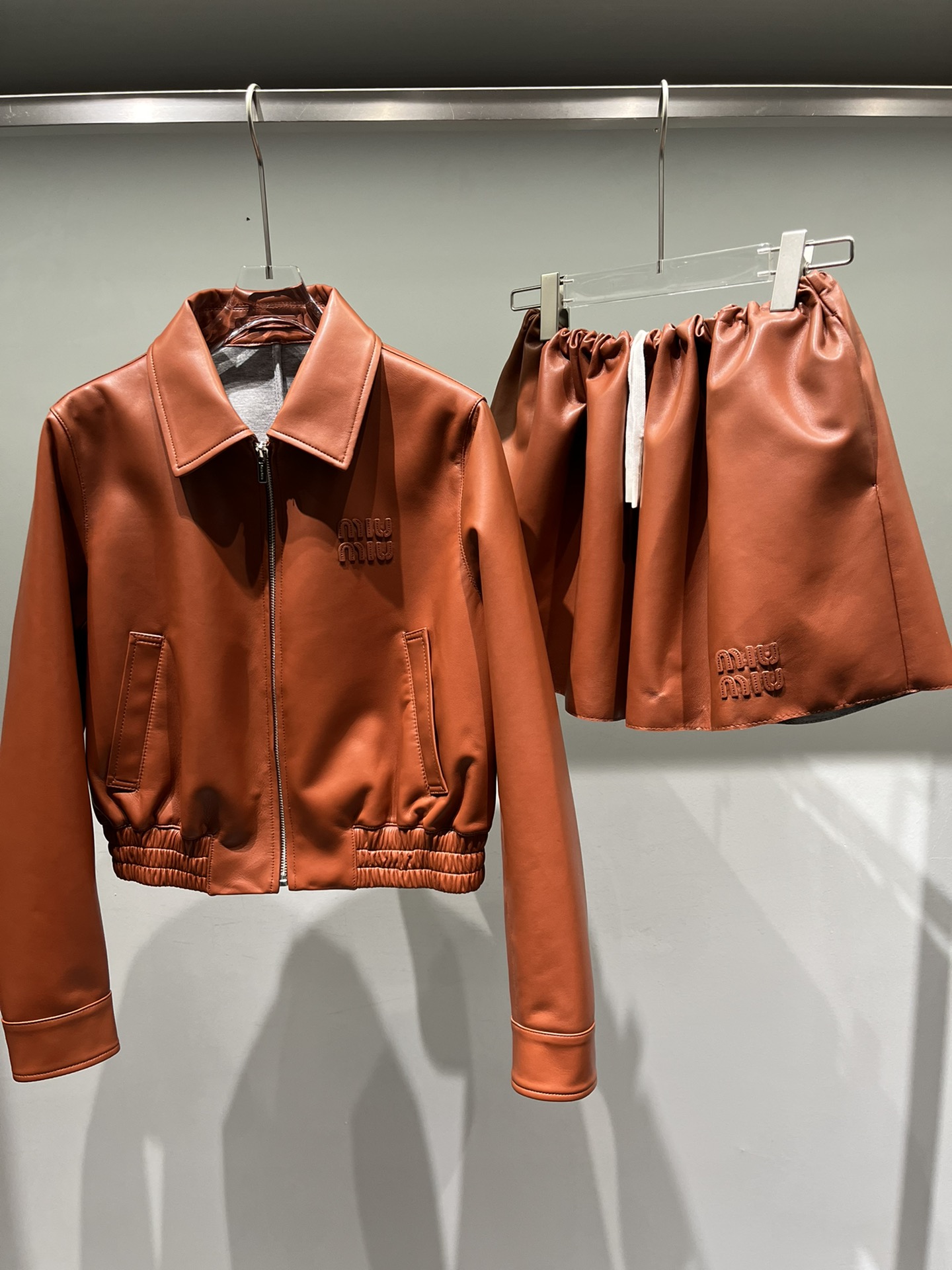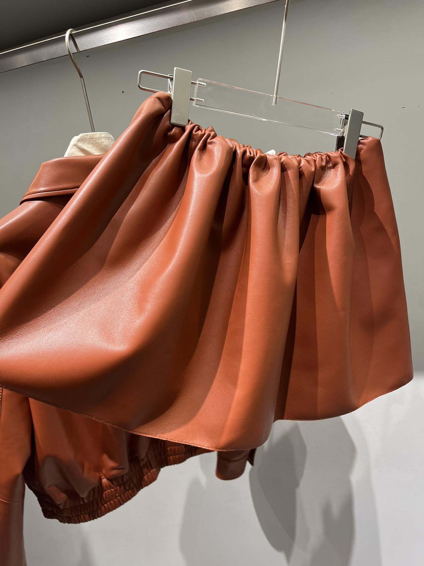 Coat, skirt. Composite craftsmanship, the leather material is very textured.