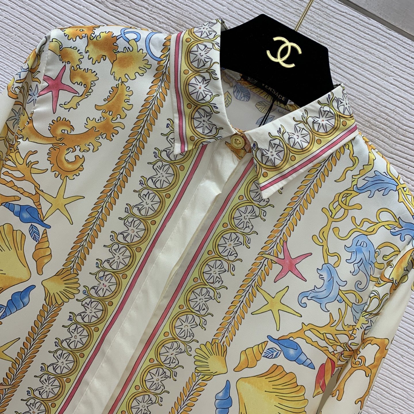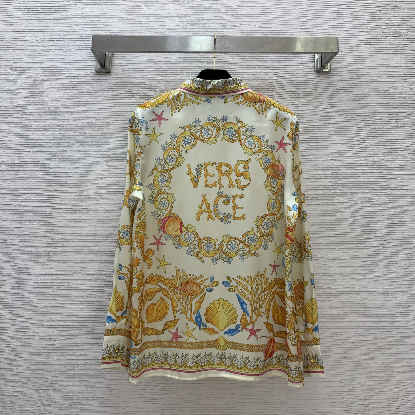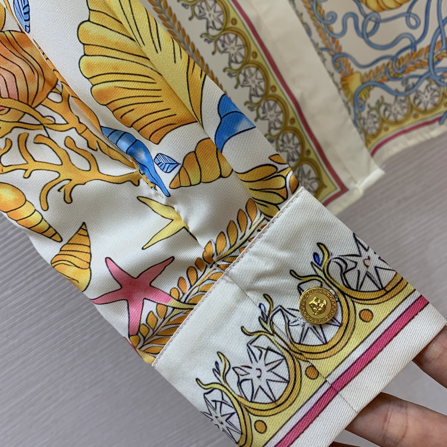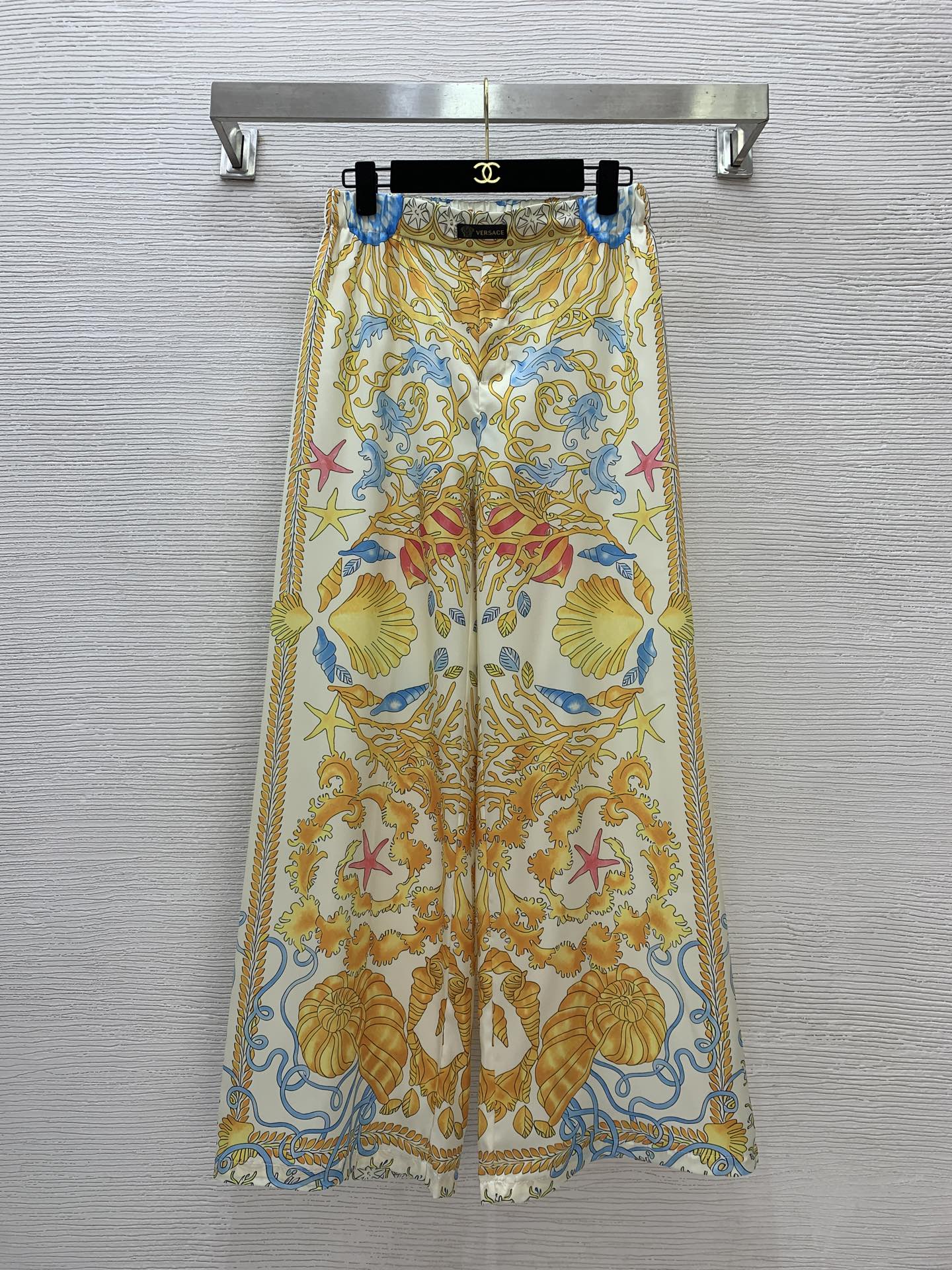 Style Number G25071042 Versac* New Starfish Conch Shell Print European and American Fashion Two-Piece Set! Classic Medusa Gold Button Loose Long Sleeve Shirt ➕ Black Small Fabric Label Decoration Back Elastic Waist Loose Fashion Wide-Leg Pants Long Pants! S M L XL (Size M: Shoulder Width 37, Bust 98, Sleeve Length 61, Length 69)