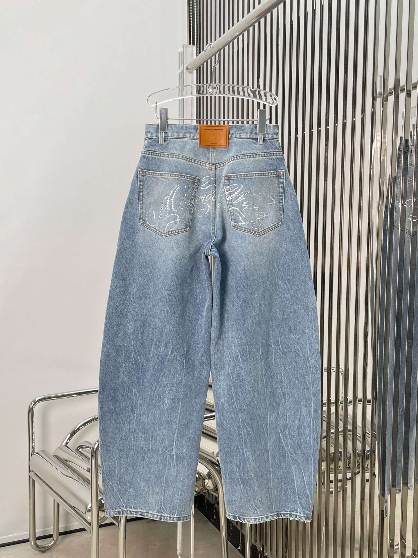 Real shot image! Latest AW 25NEW rhinestone hotfix rhinestone wide-leg washed jeans. Sizes: SML.