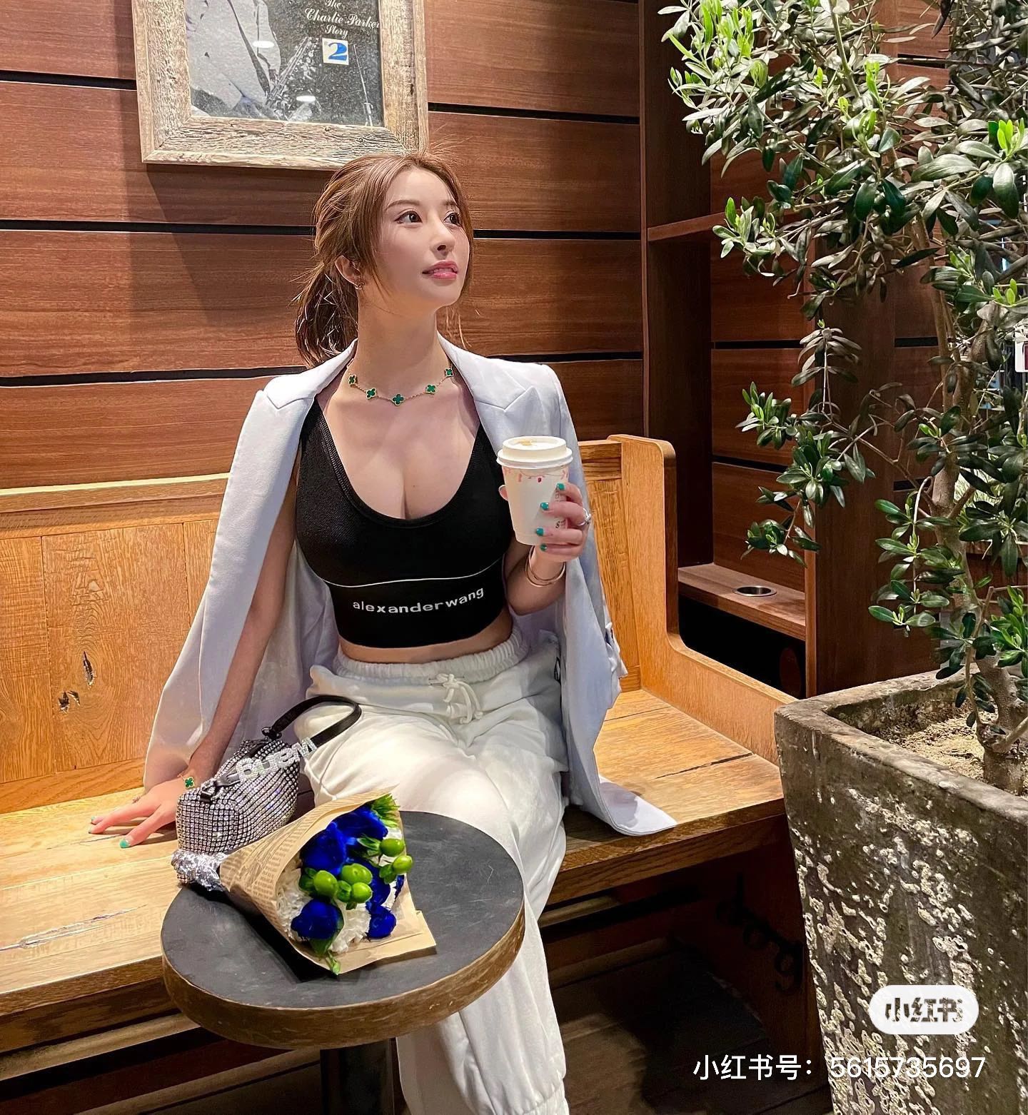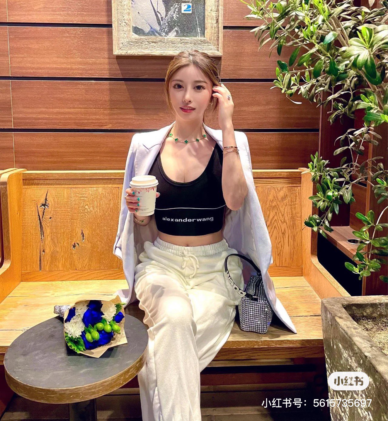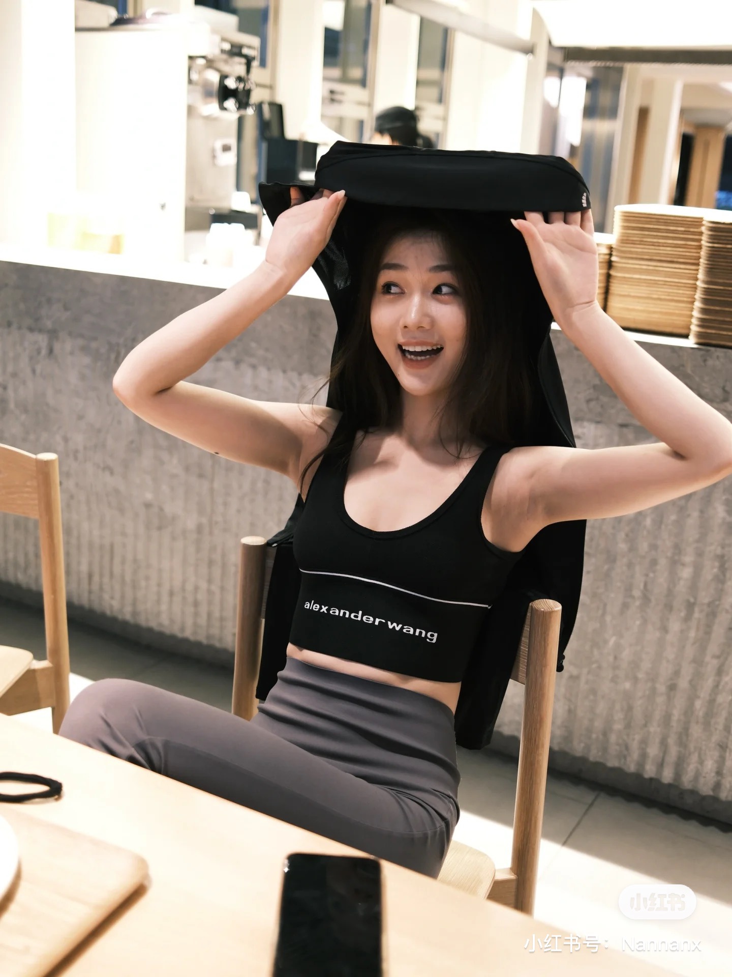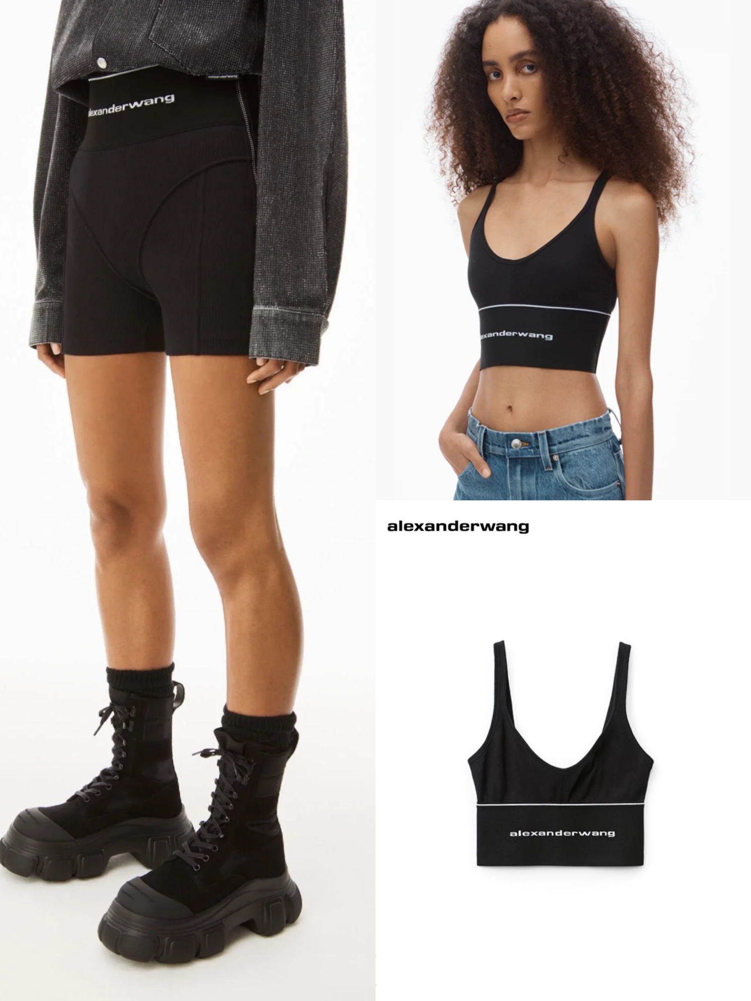 Item No. D25030179 Alexander Wan* King's new fitness and yoga set! Letter logo woven tape spliced U-neck versatile vest top (with chest pad) + wide waistband butt-lifting slimming tight fitness yoga shorts! Black, S M L XL (Size L: Bust 70 high elasticity, hem circumference 70, top length 33; waist 70-80 elastic, pants length 47)