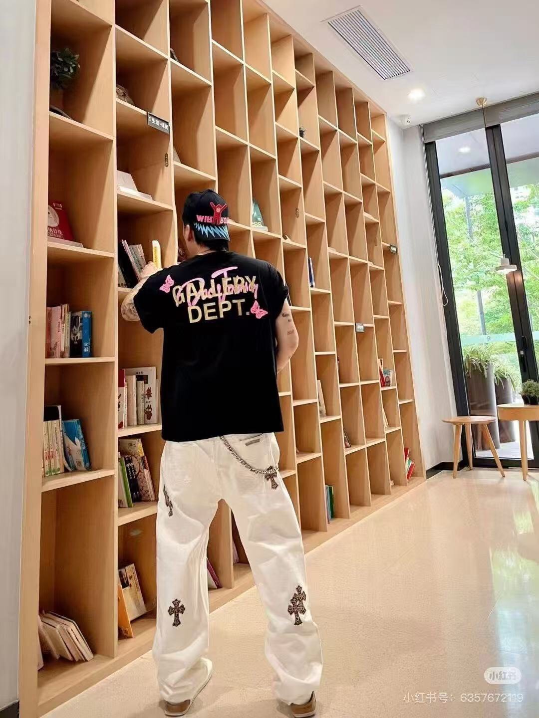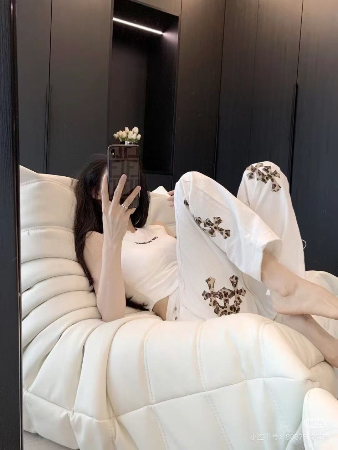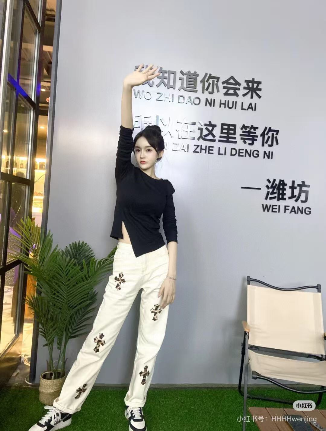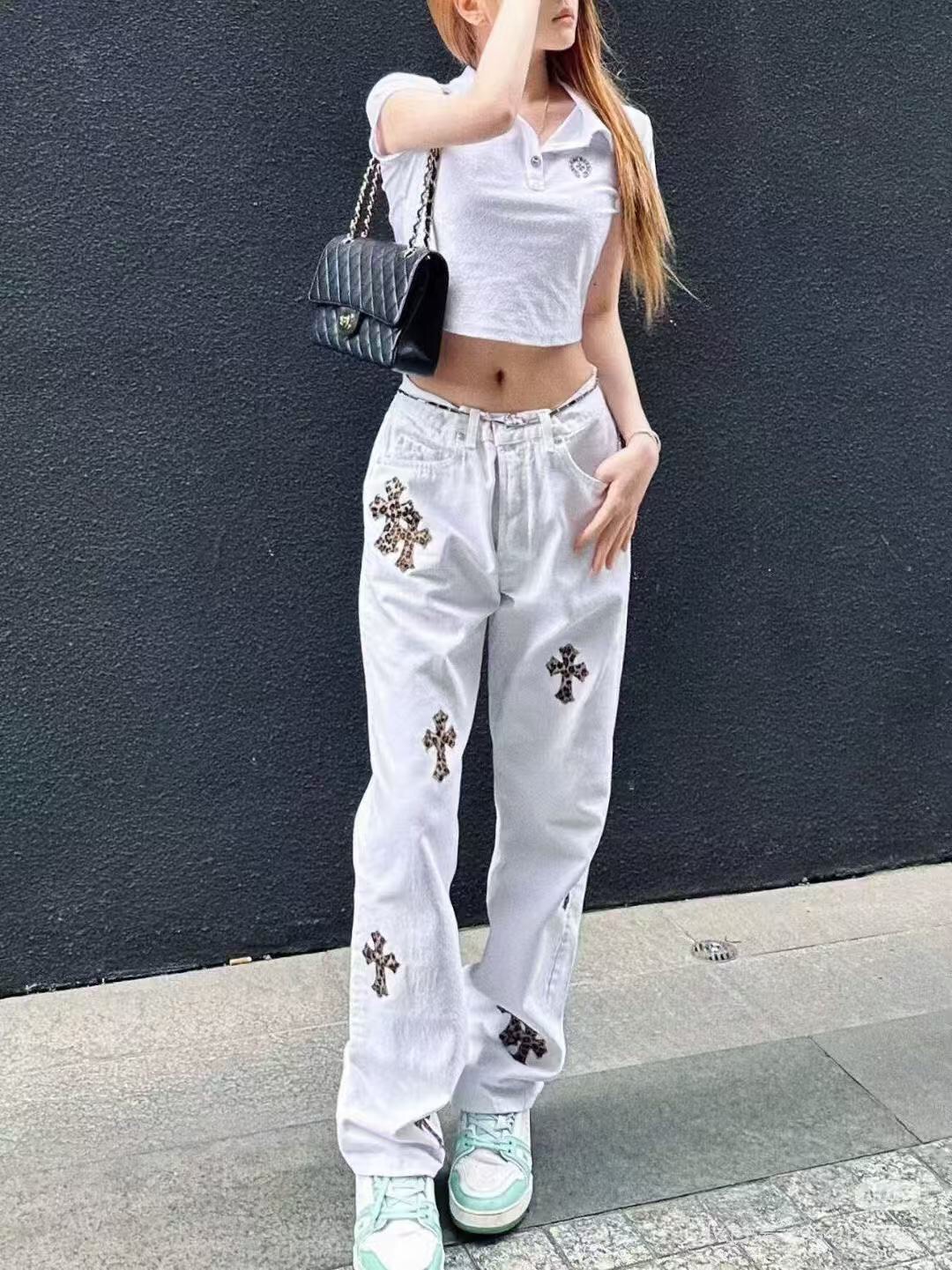 Style No. 20255714 Chrome Hearts* New Leopard Print Cross Embroidered Patch High-Waist Slim-Fit Denim Pants, White, S-XL, [Size M: Waist 70, Length 106; Weight: 0.620kg]
